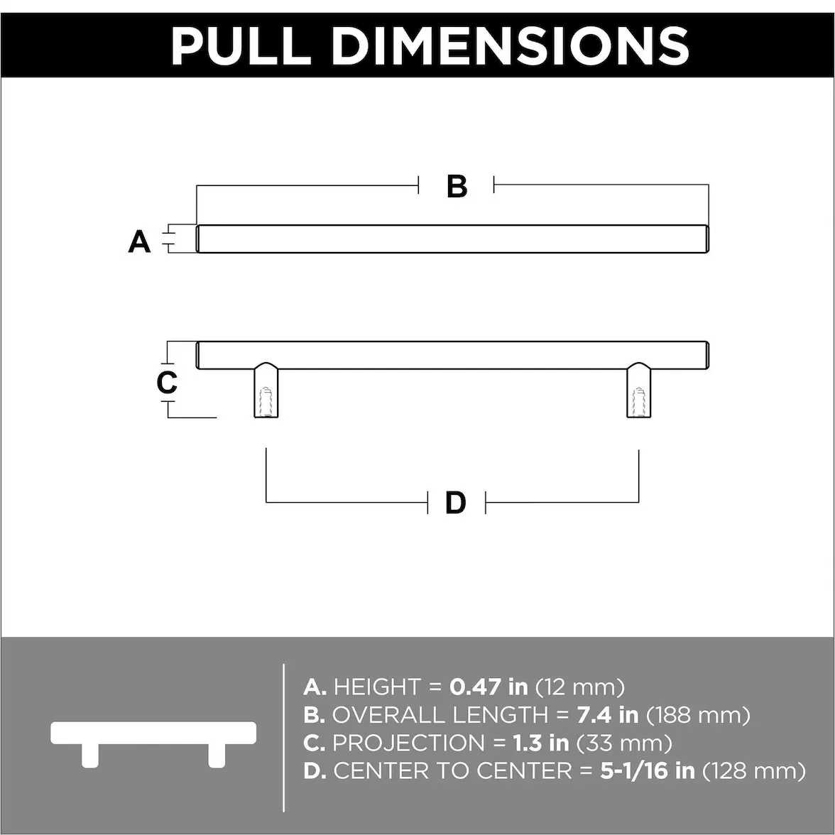 GlideRite Center Solid Cabinet Bar Pulls