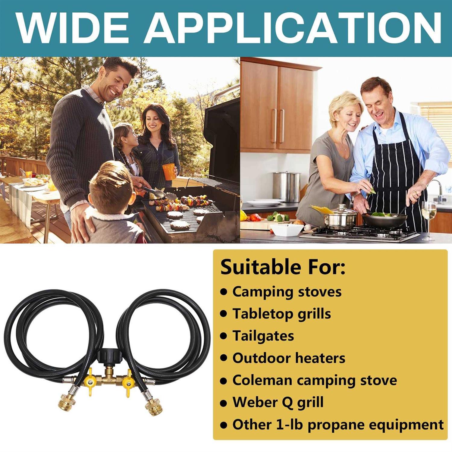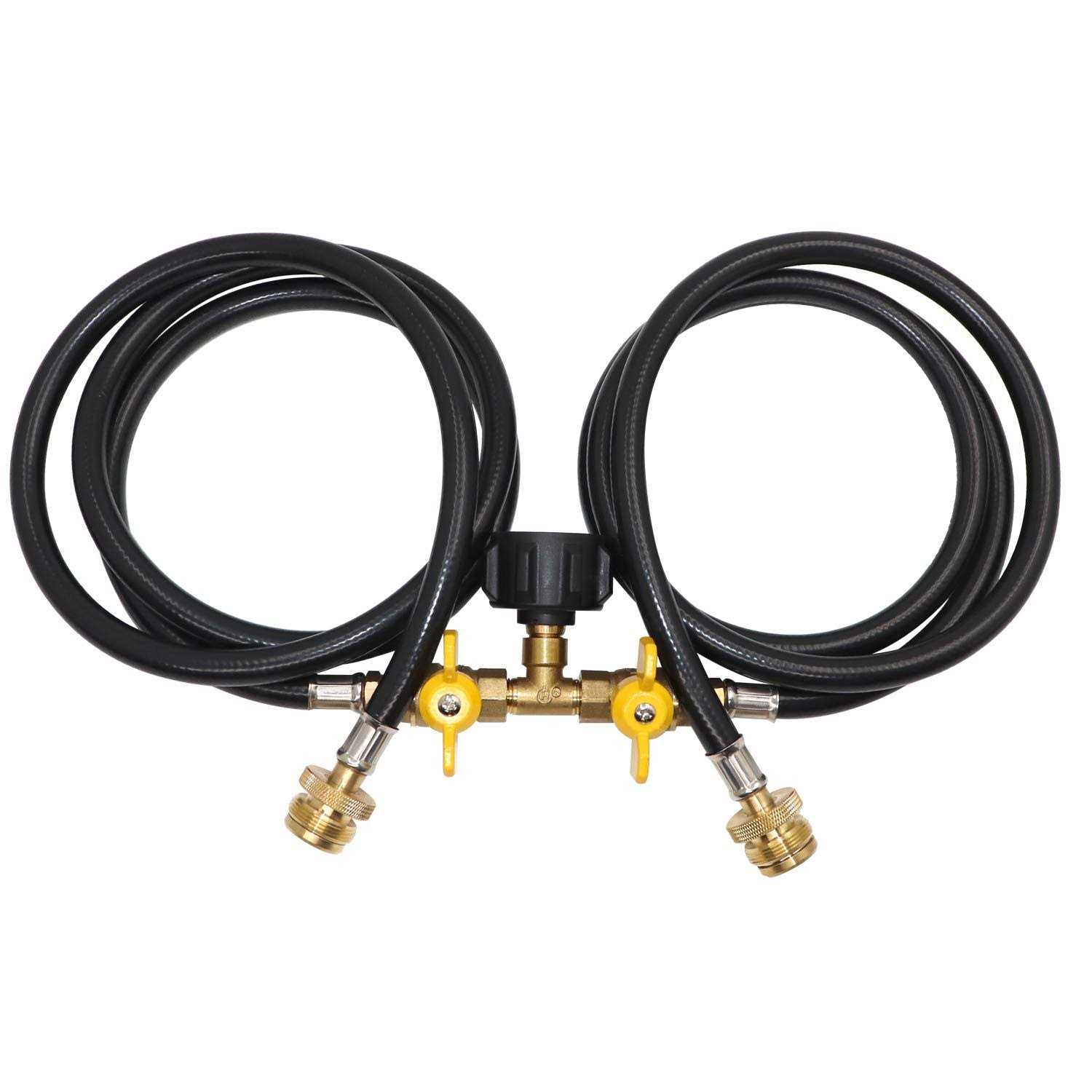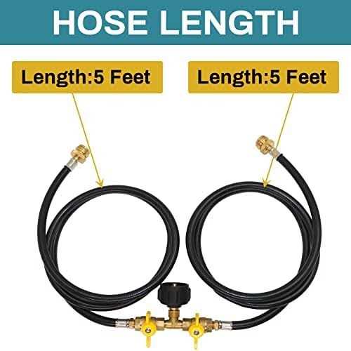 5ft Propane 2 Way Splitter Adapter Hose 1 lb to 20 lb Converter with Shut Off Valve