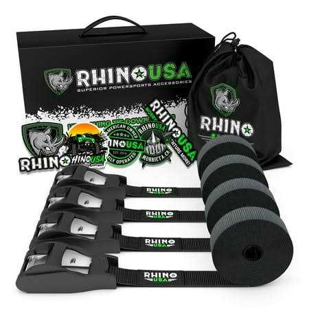 Rhino USA 1 inch x 12′ Lashing Tie-Down Straps, Black