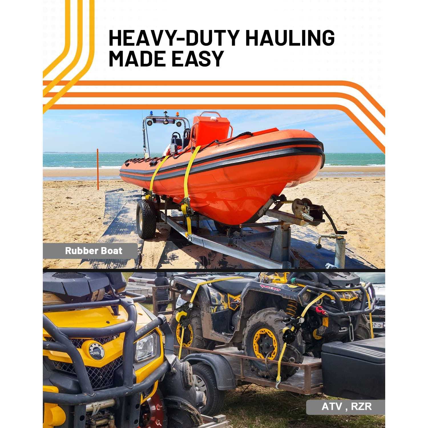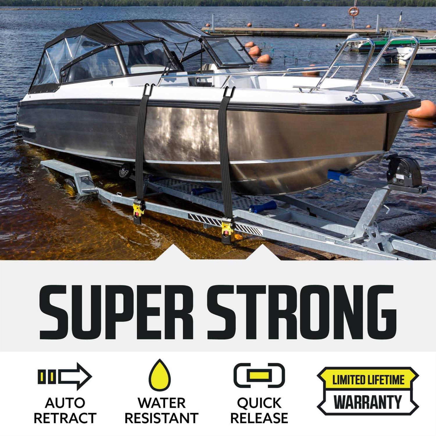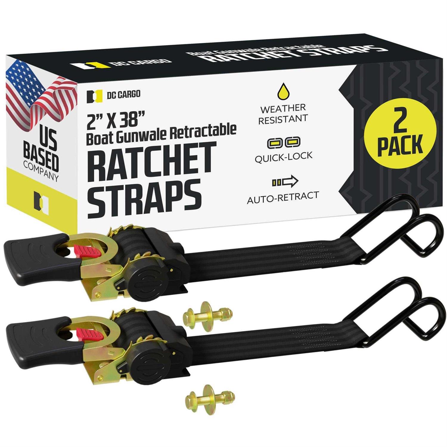 Strapinno Retractable Ratchet Tie-Down Strap Heavy-Duty Strap with Double J Hooks