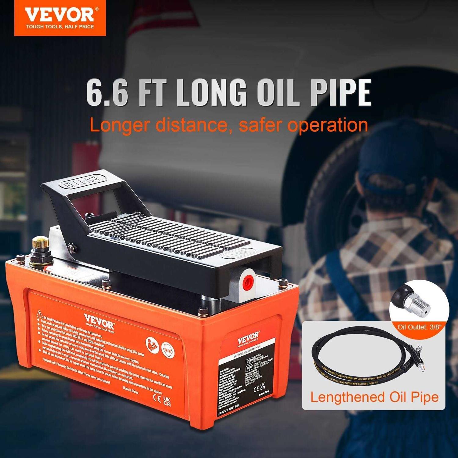 VEVOR Air Hydraulic Pump 10,000 PSI 1/2 Gal Reservoir NPT 3/8 Oil Outlet