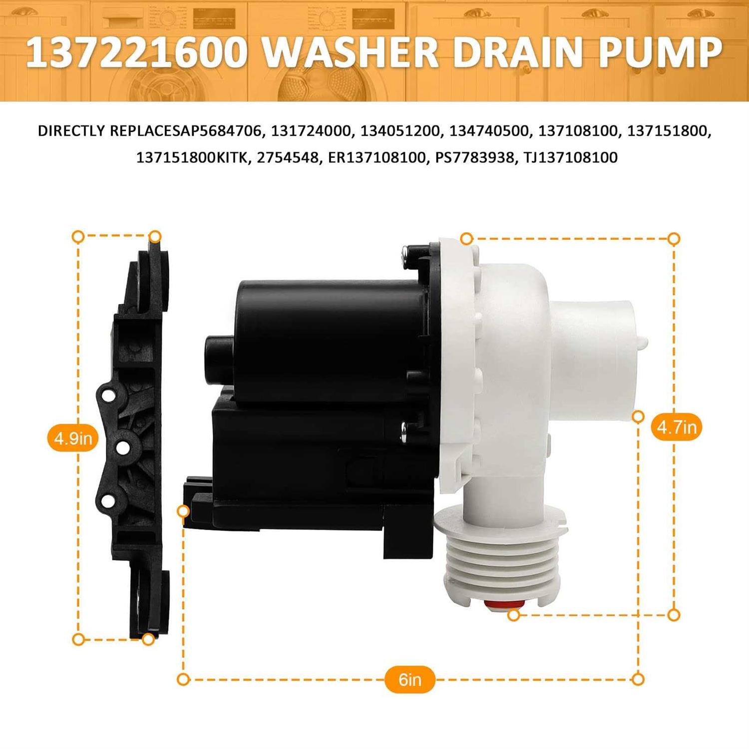137221600 Washer Drain Pump By AMI PARTS Replaces AP5684706