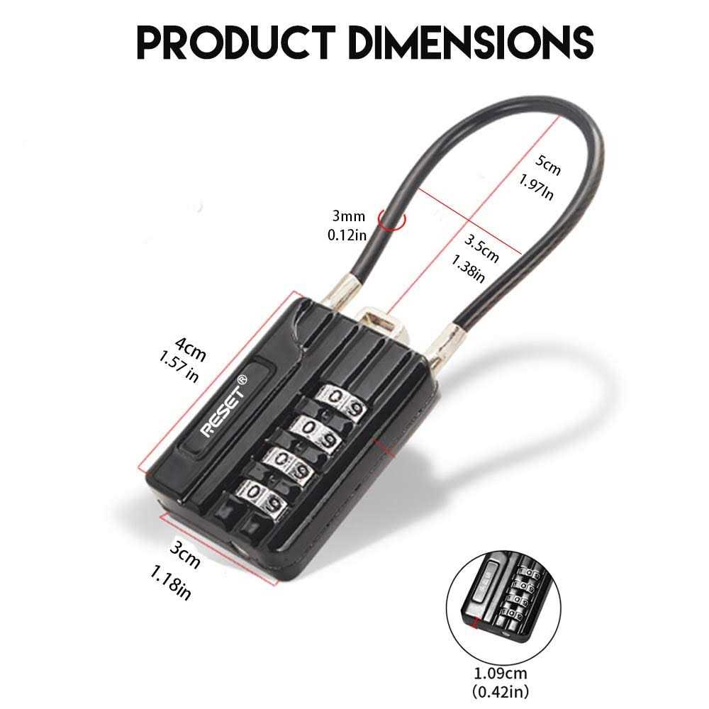 RESET-200 4 Digit Combination Padlock Steel Cable,Cable Lock for Locker Luggage Suitcase Gun Case Toolbox Helmet