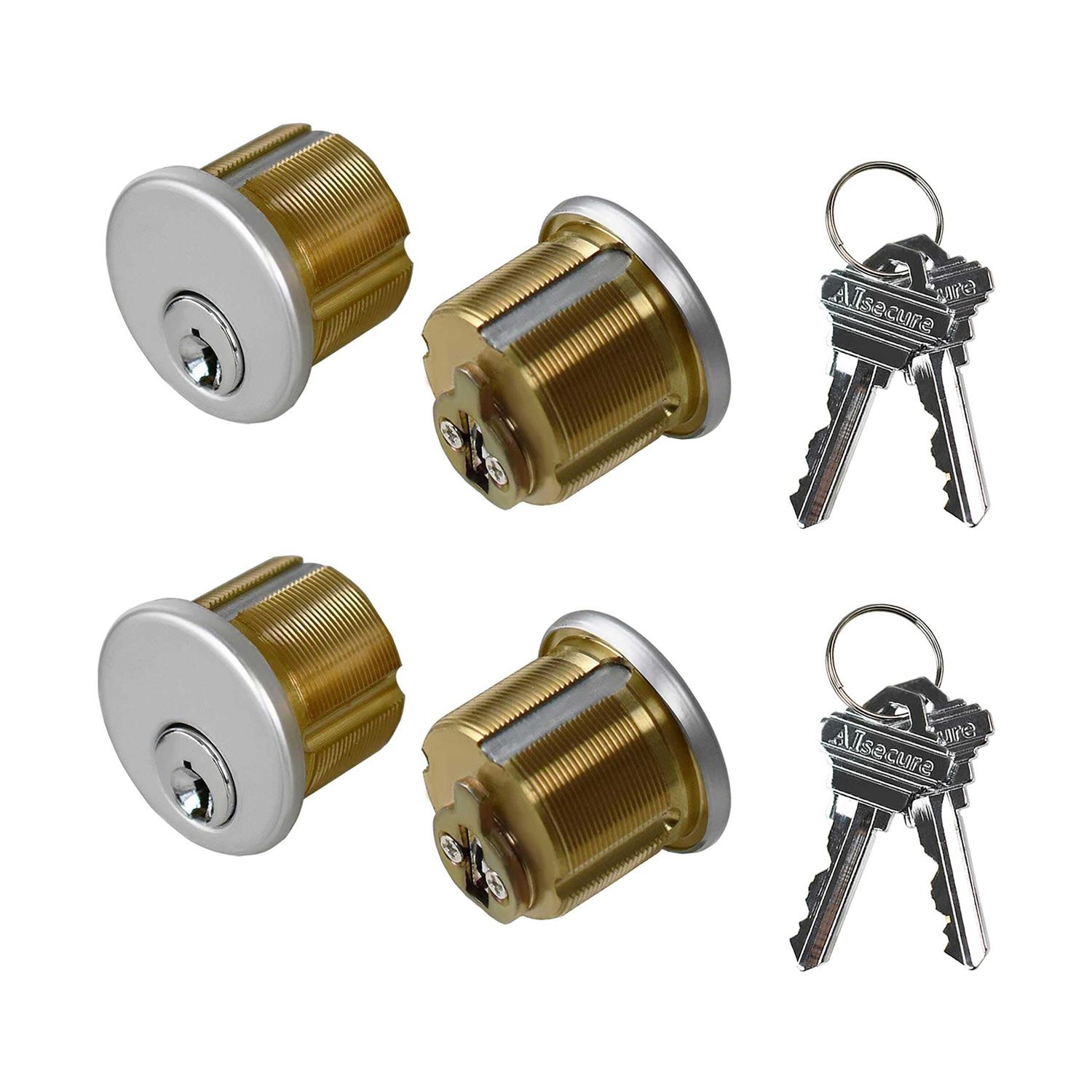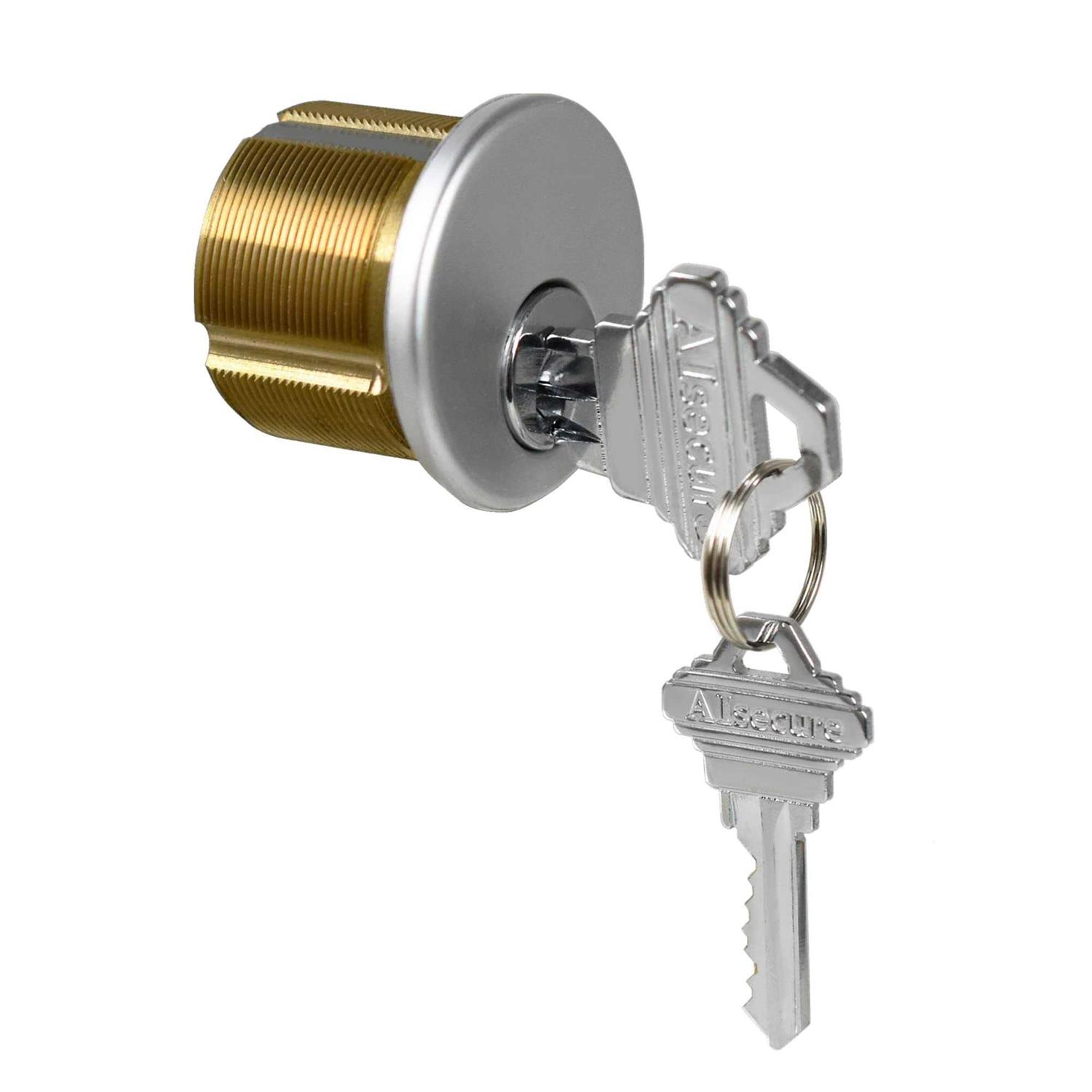 AIsecure Brass Mortise Cylinder with 2 Keys For SC Keyway Standard Commercial Door Lock Cylinder Keyed Alike For Storefront Doors Lock Replacements 2