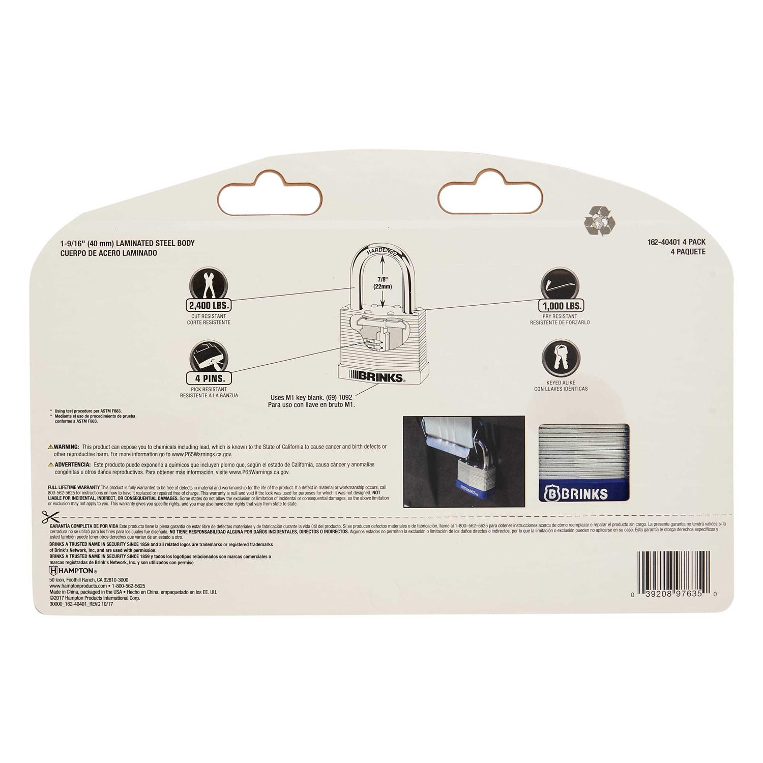 Brinks Laminated Steel Padlock Shackle