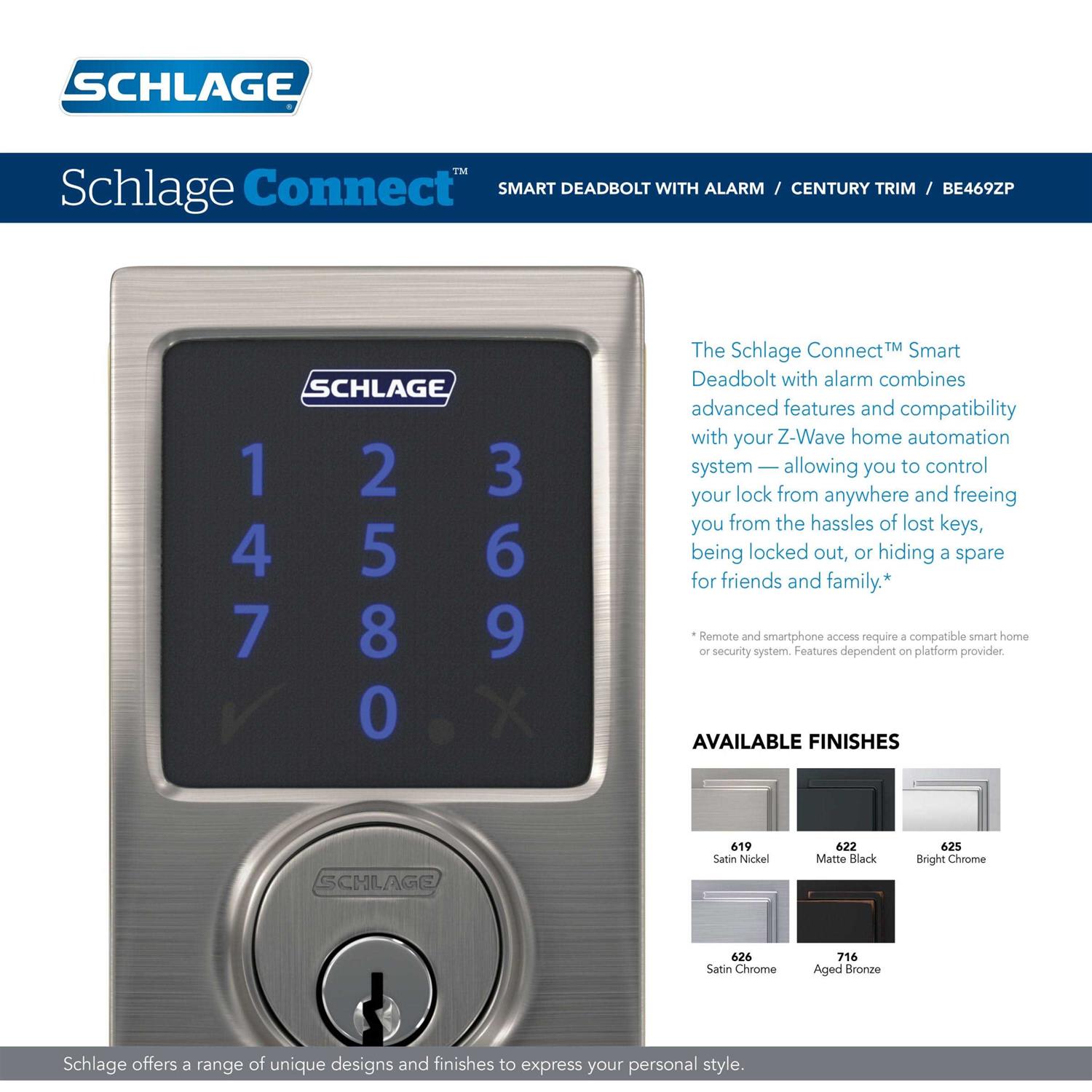 Schlage Connect Century Alarm Smart Deadbolt BE469ZPCEN