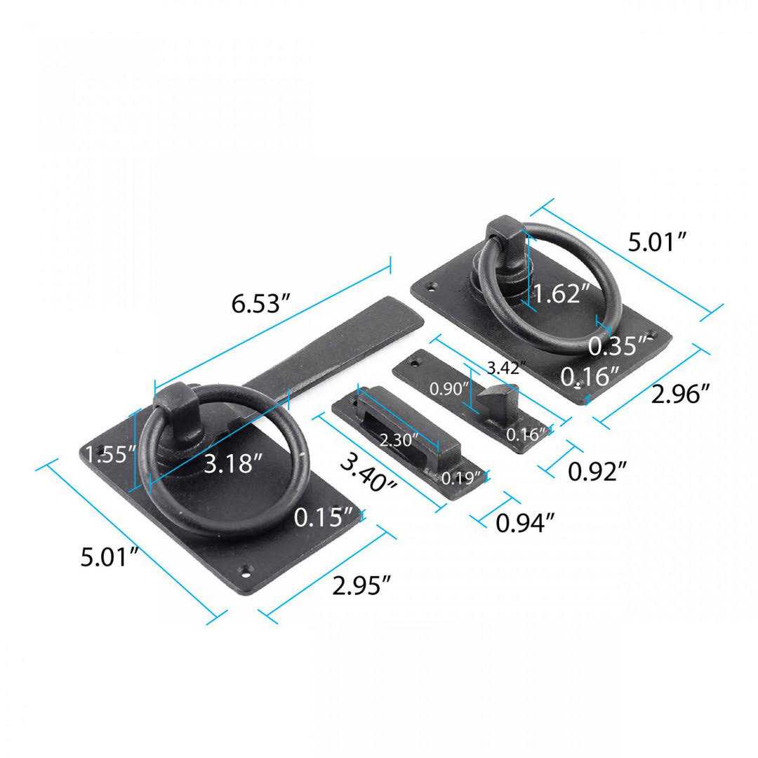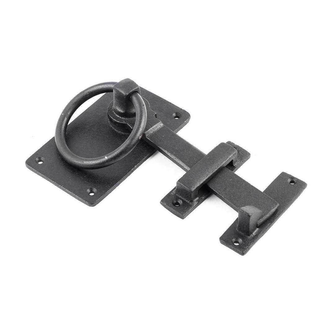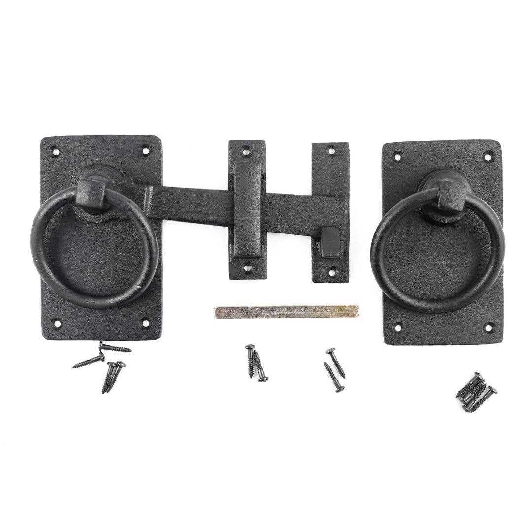 Black Wrought Iron Gate Ring Turn Latch Lock Set 6.5 W Renovators Supply