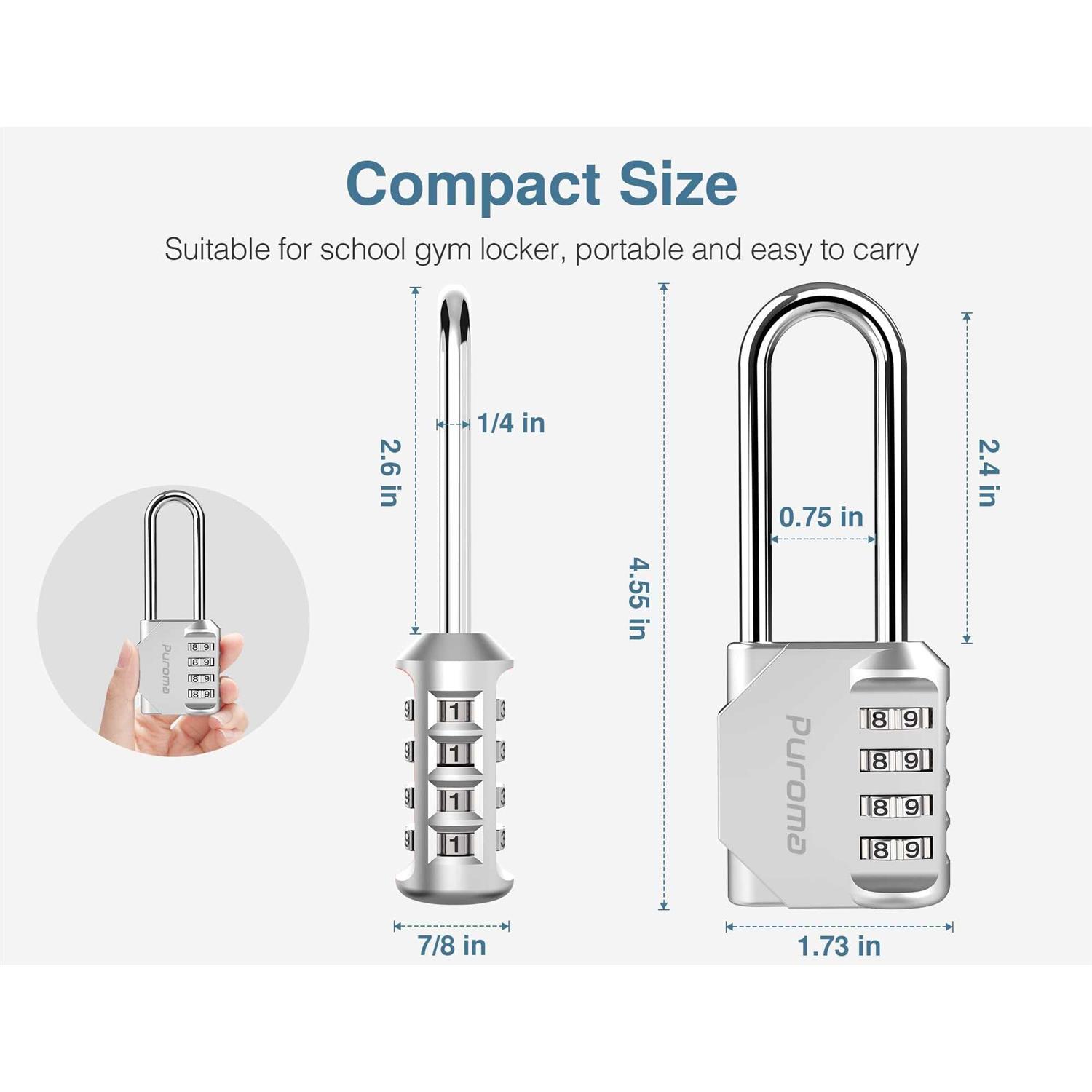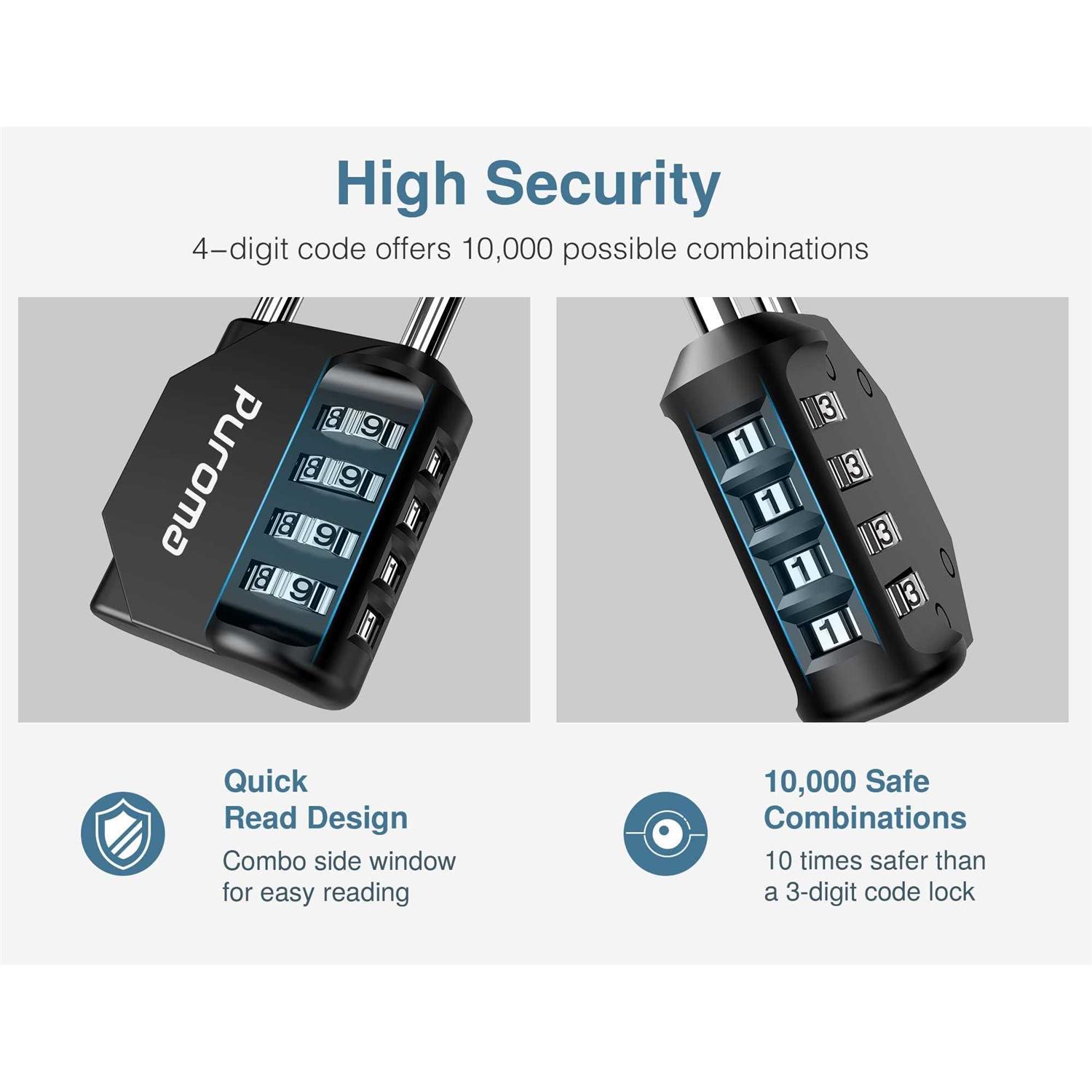 Puroma 2 Pack Combination Lock 4 Digit Locker Lock Outdoor Waterproof Padlock for School Gym Locker