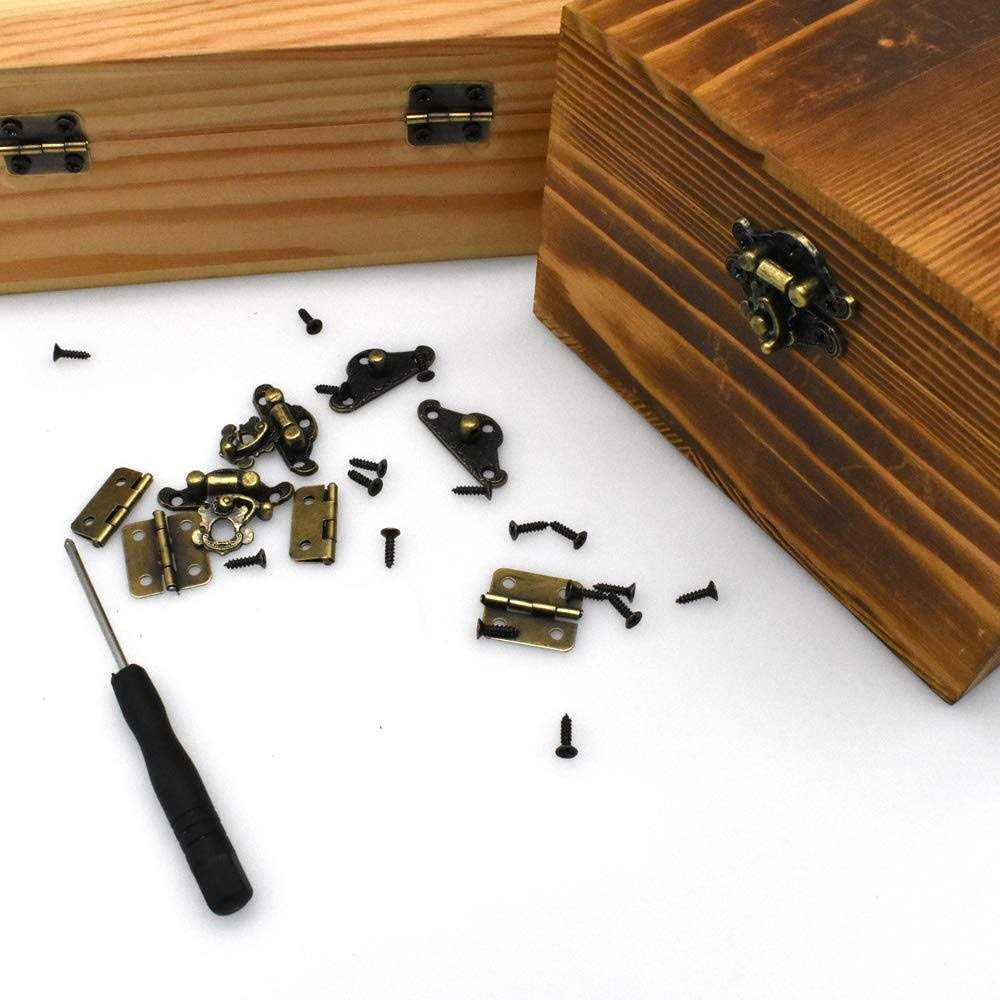 24Pcs Antique Small Box Hinges 12Pcs Antique Latch Hook Hasp Jewelry Box Hinges and Latches for DIY Jewelry Box