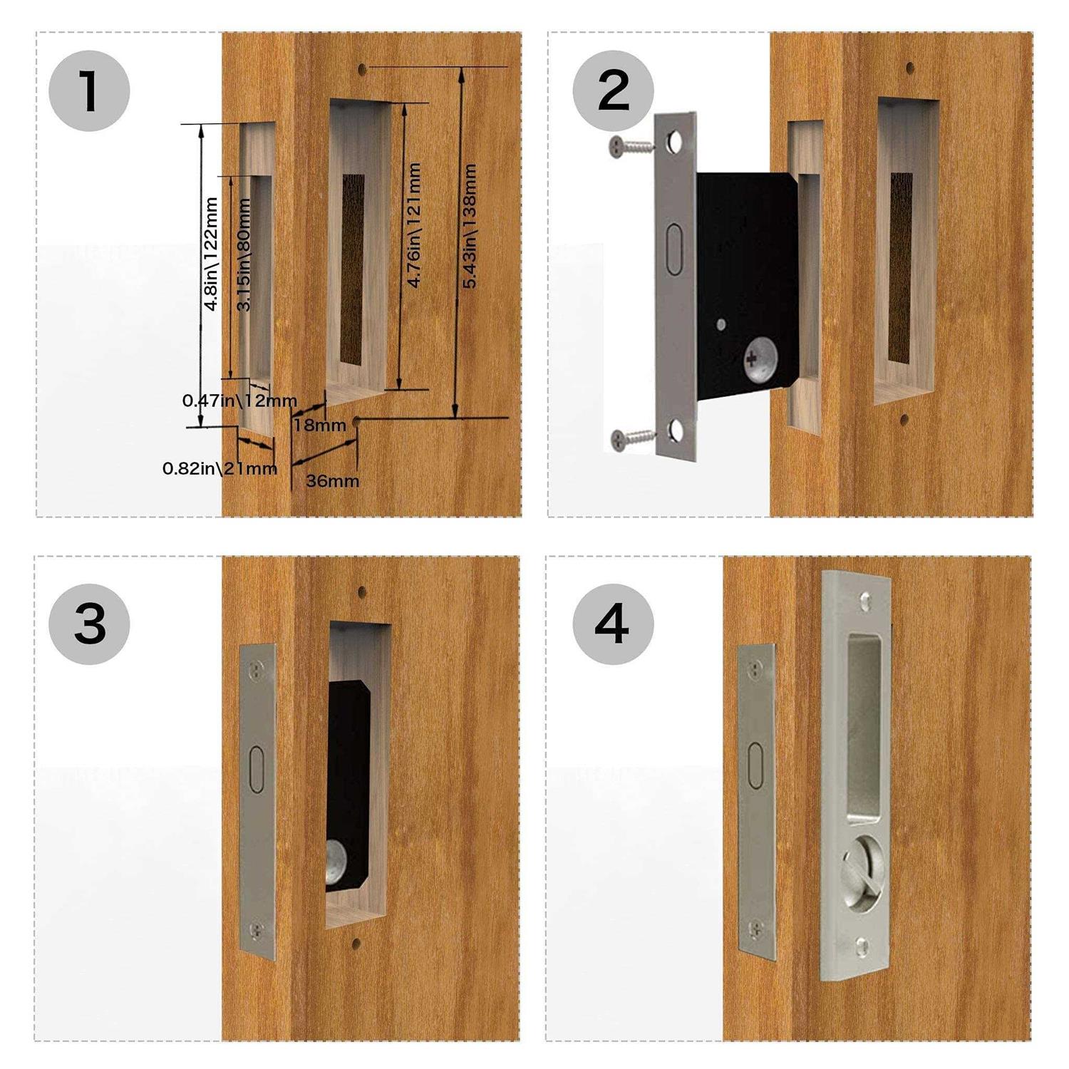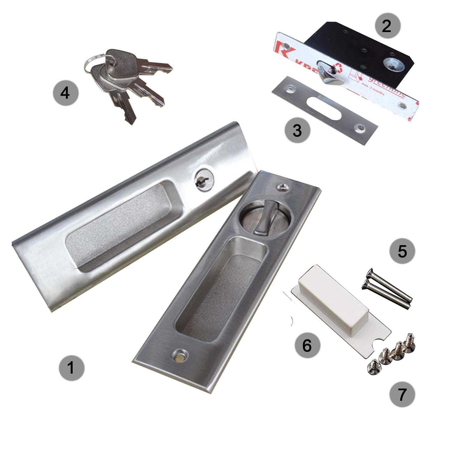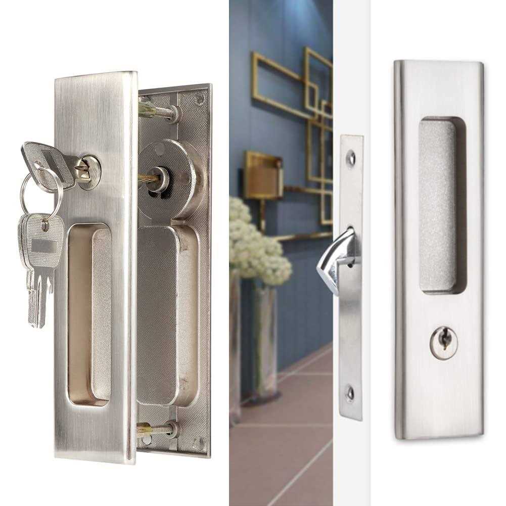 CCJH Sliding Door Lock Invisible Recessed Handle Latch with Keys for Pocket Door Barn Wood Door Interior Privacy Furniture Hardware