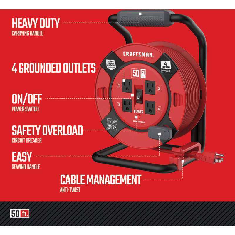 Craftsman Retractable Extension Cord Reel 50 Ft. 4 Outlets CMXCRPA1450