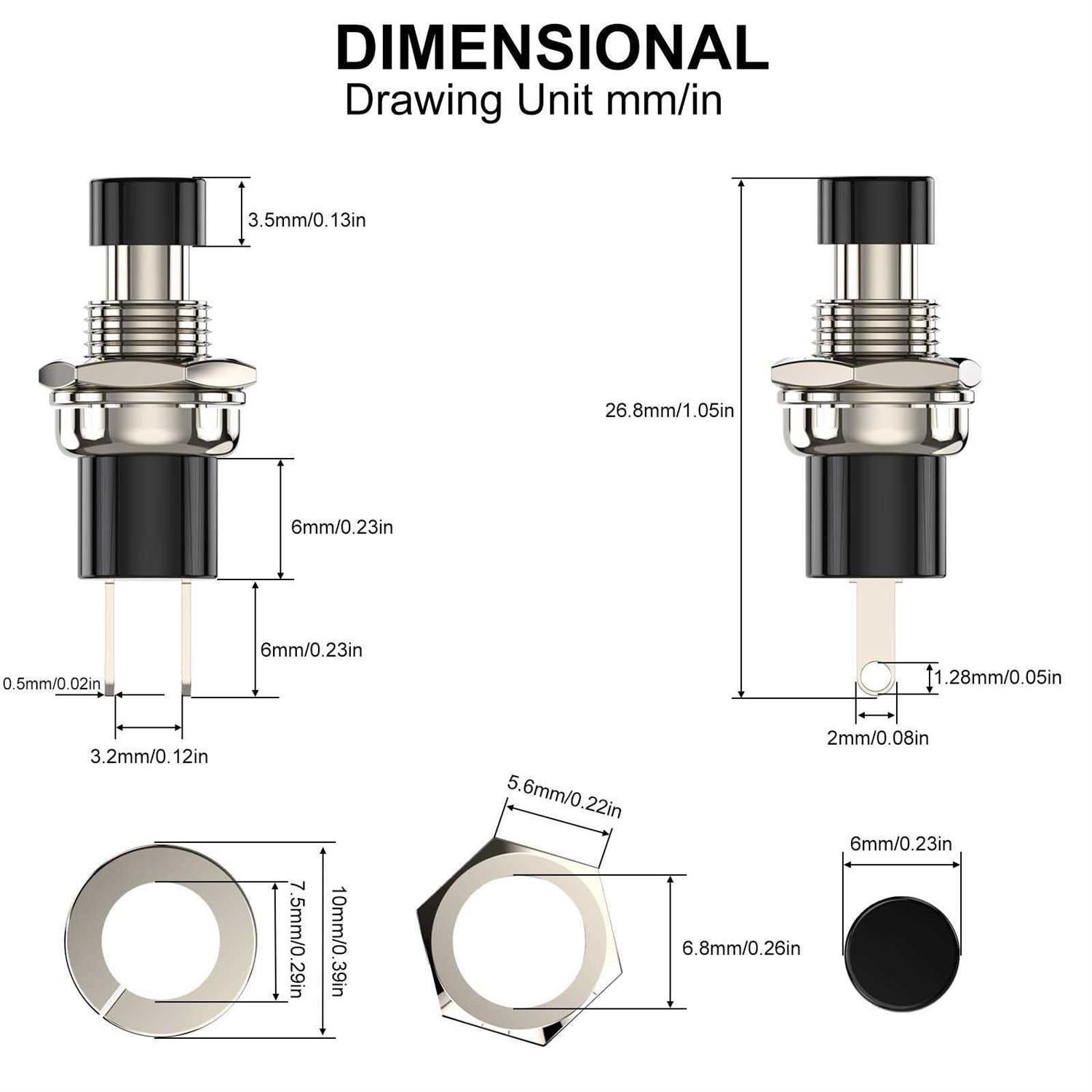 DIYhz Momentary Push Button Switch 1A 250VAC SPST Mini Pushbutton Switches Normally Open Red Cap