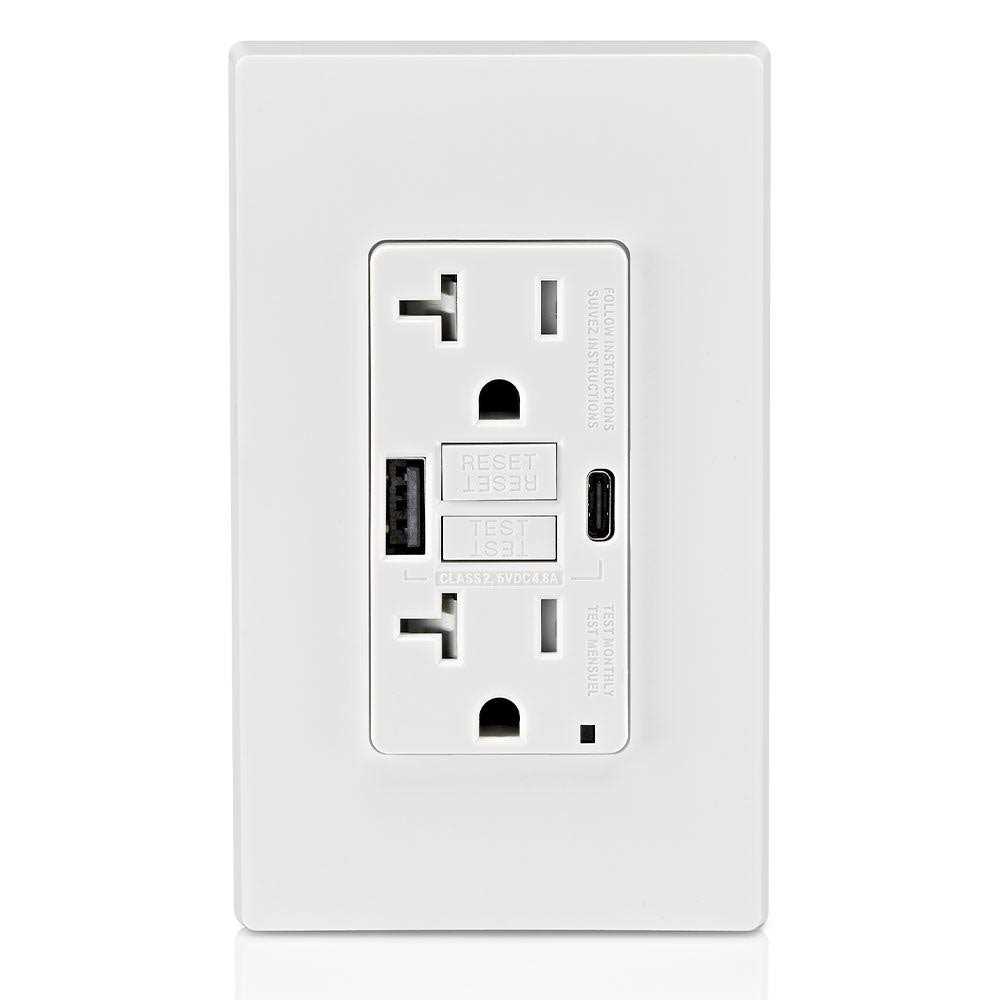 Leviton GUAC2-W 20A SmartlockPro Self-Test GFCI Combination 24W Type A/C USB In-Wall Charger Outlet