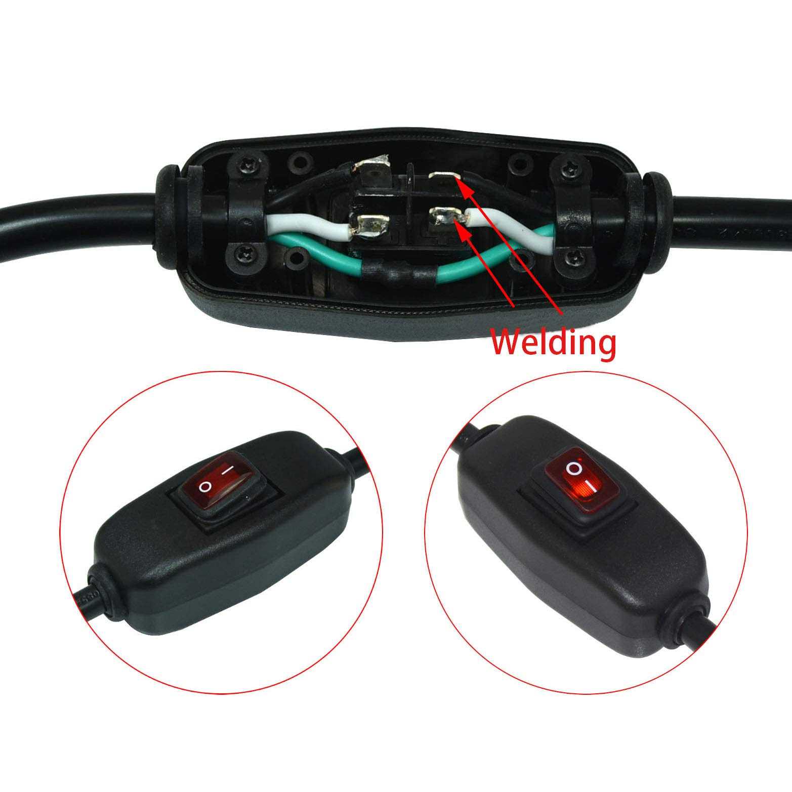 6ft 18 Gauge 3 Prong Heavy Duty Replacement Power Supply Cord Cable with Red Indicator Light Inline Switch
