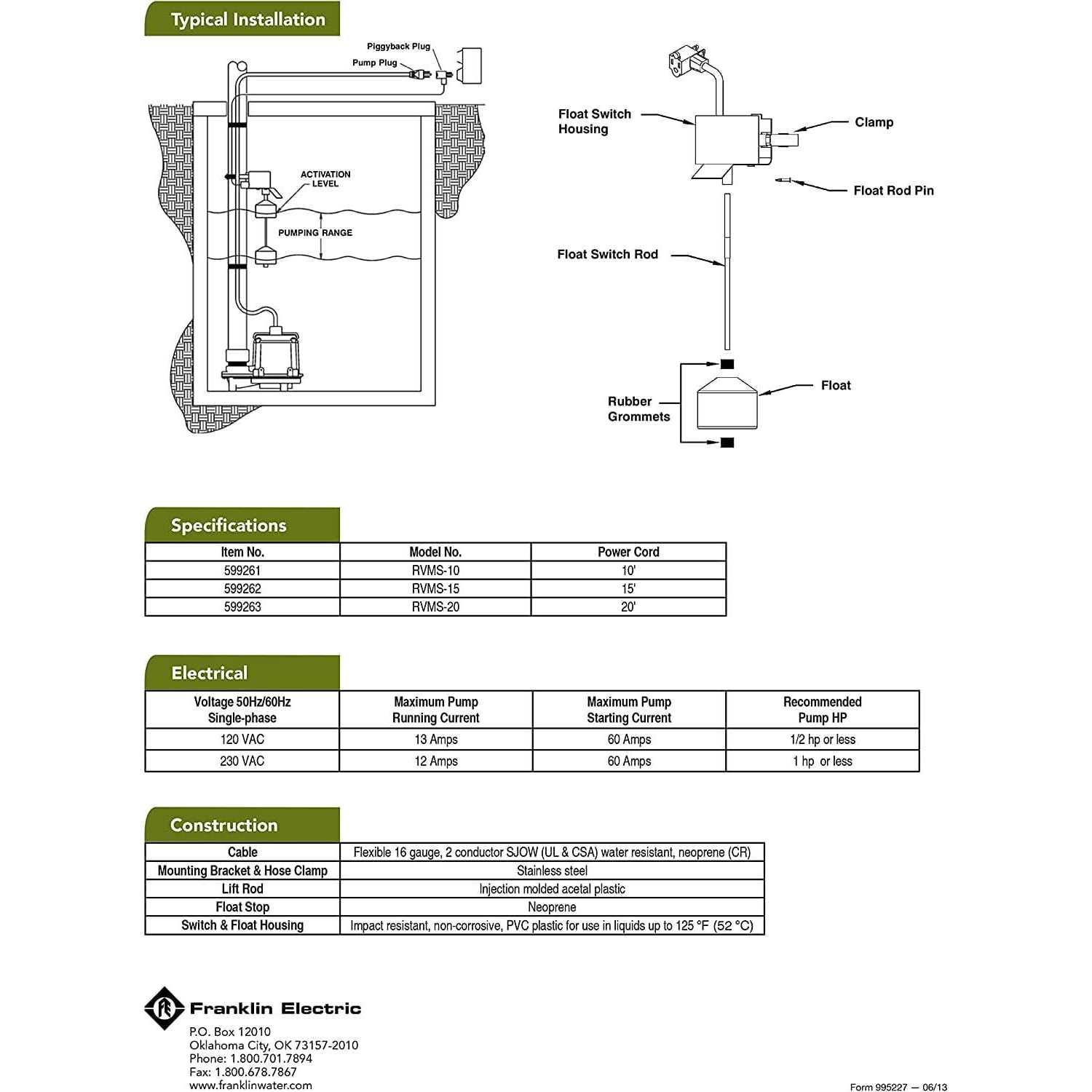 Little Giant RVMS-10 Piggyback Vertical Mechanical Float Switch 599261