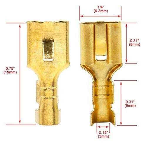 Baomain Female Spade Quick Splice Crimp Terminals 6.3mm Crimp Connector Non Insulated 100 Pcs
