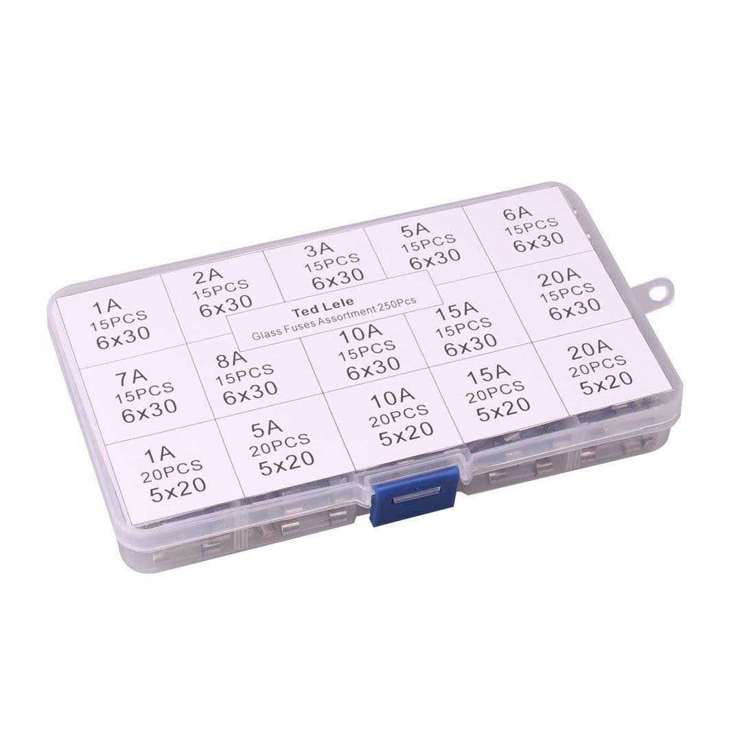 QBGTFAK 250pcs Quick Blow Glass Tube Fuse Assorted Kit 250V 1A 2A 3A 5A