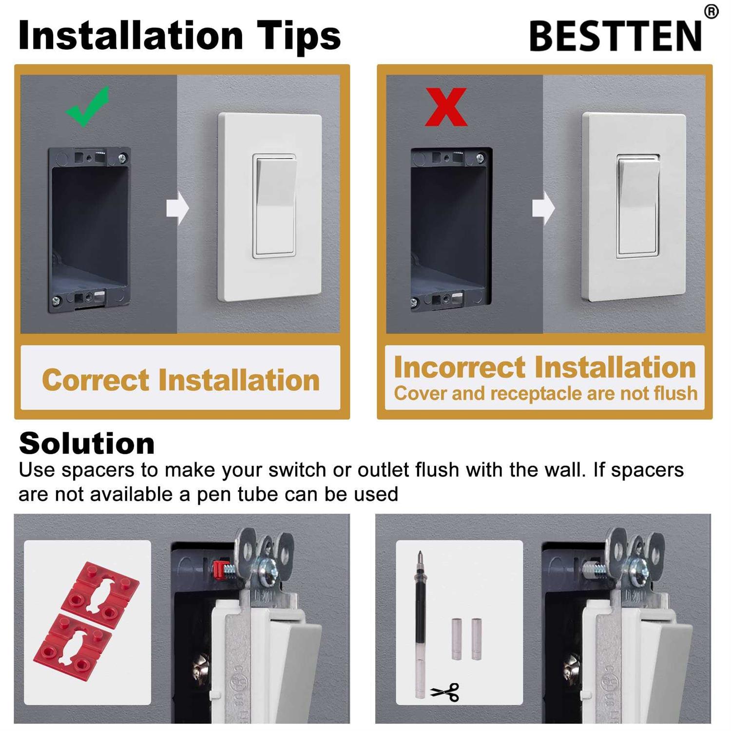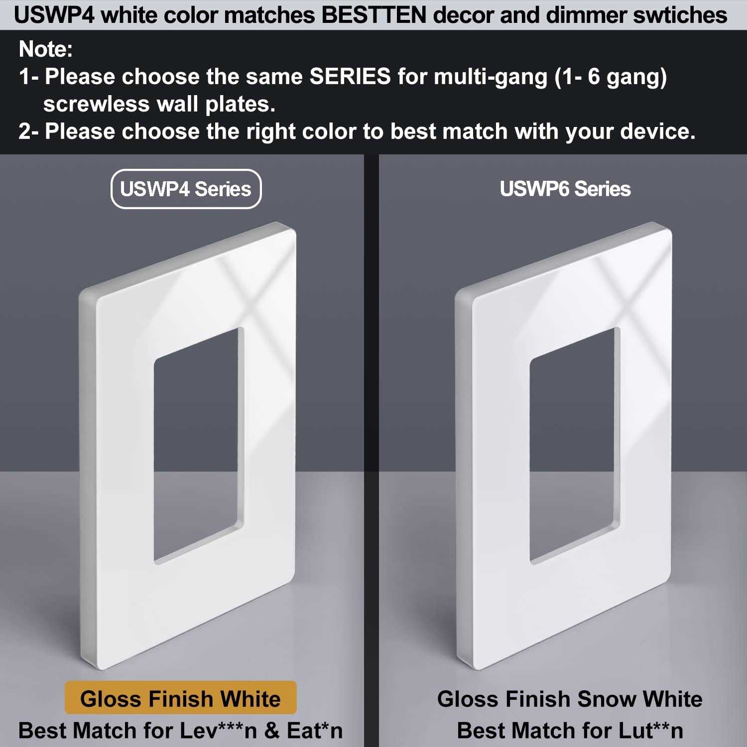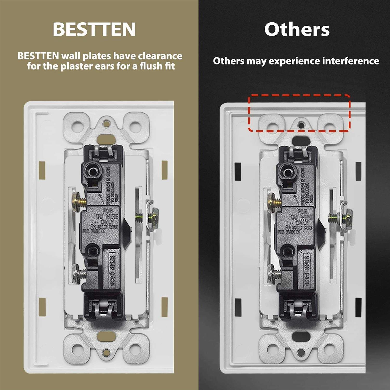 Bestten 1-Gang Screwless Wall Plate USWP4 White Series