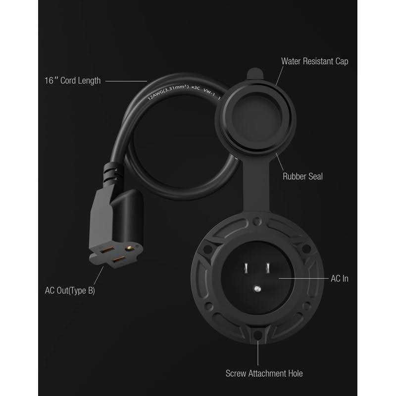 stio 15 Amp AC Port Plug, 125 Volt AC Power Inlet Socket with 16 Inch Extension Cord and Watertight Cap
