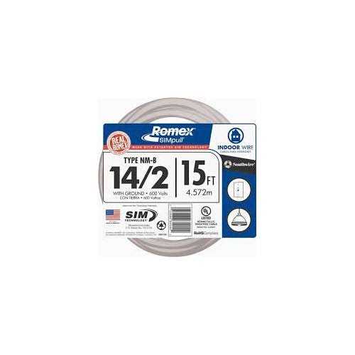 28827426 15′ 14/2 with Ground Romex Brand SIMpull Residential Indoor Electrical Wire Type NM-B, White