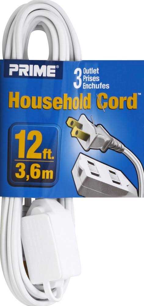 Prime Wire 12′ SPT-2 3-Outlet White Household Extension Cord
