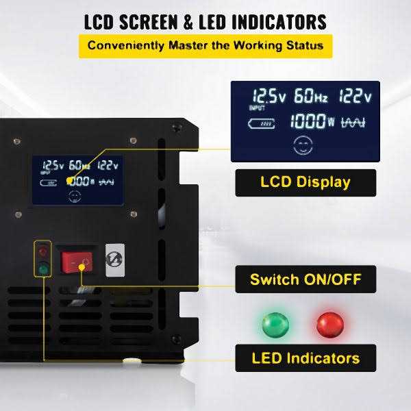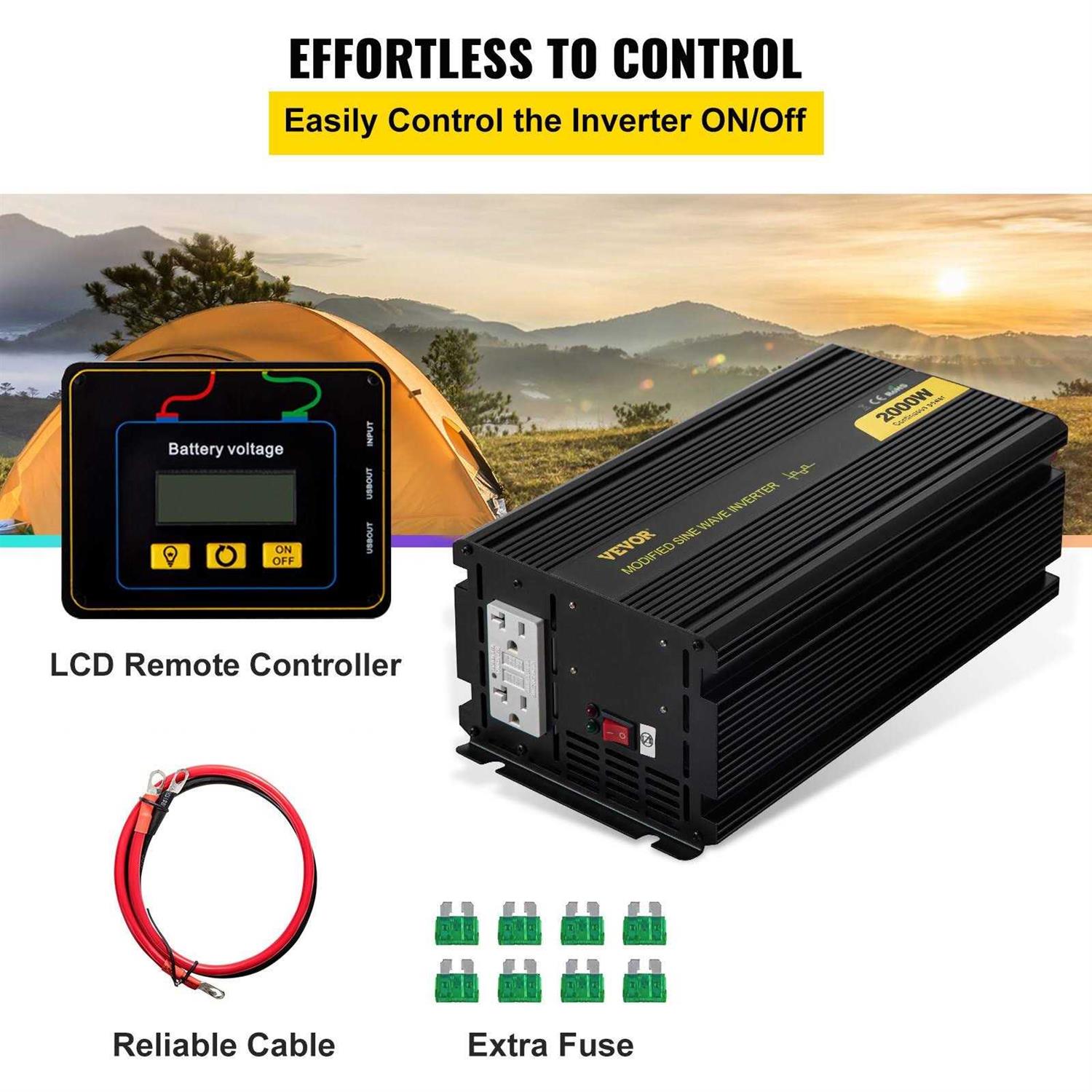 VEVOR Car Power Converter 2000-Watt Modified Sine Wave Inverter DC AC 120-Volt with LCD Display Remote Controller