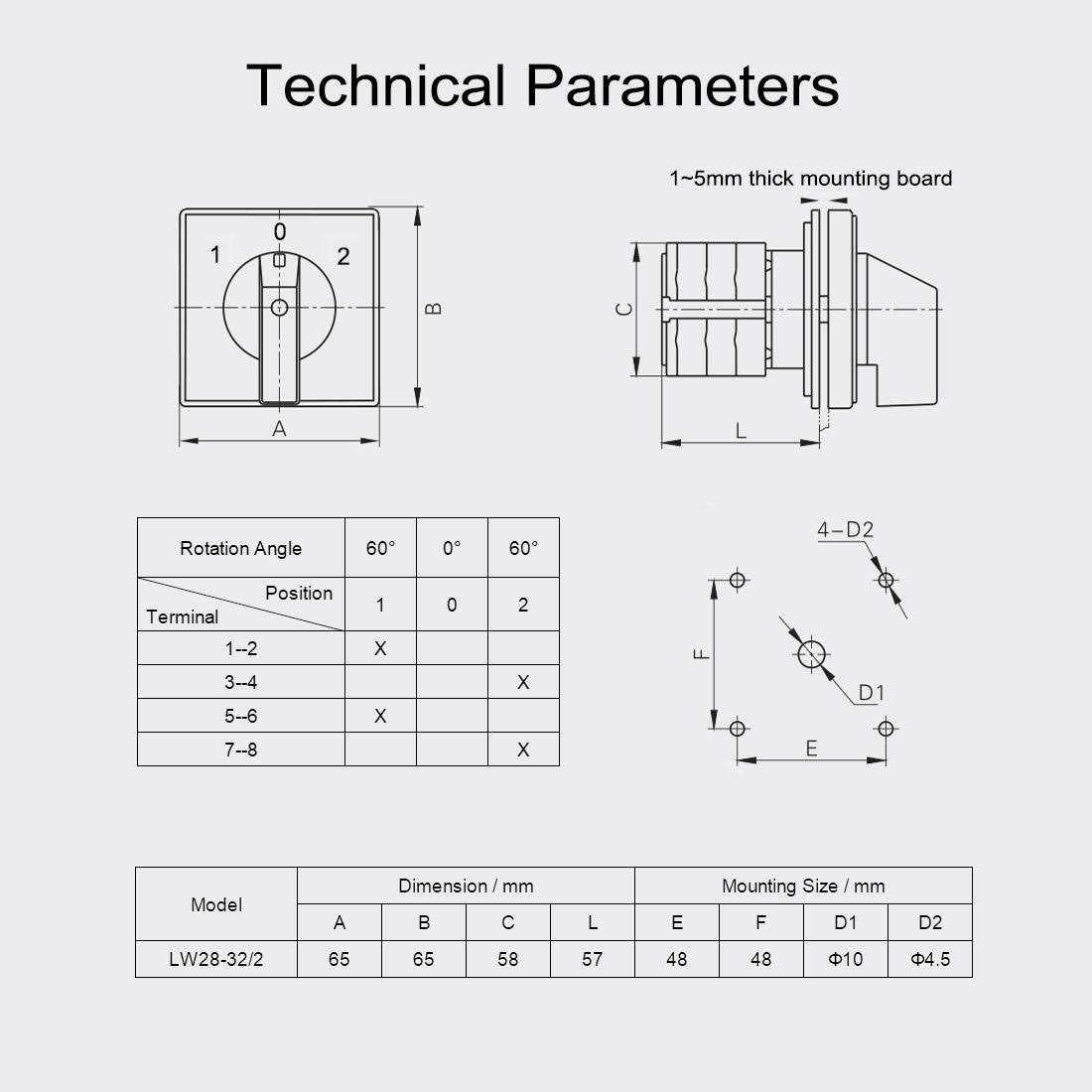 VictorsHome Changeover Switch LW28-32 3 Positions 8 Terminals Universal Rotary Cam Selector Latching Switches 690V 32A