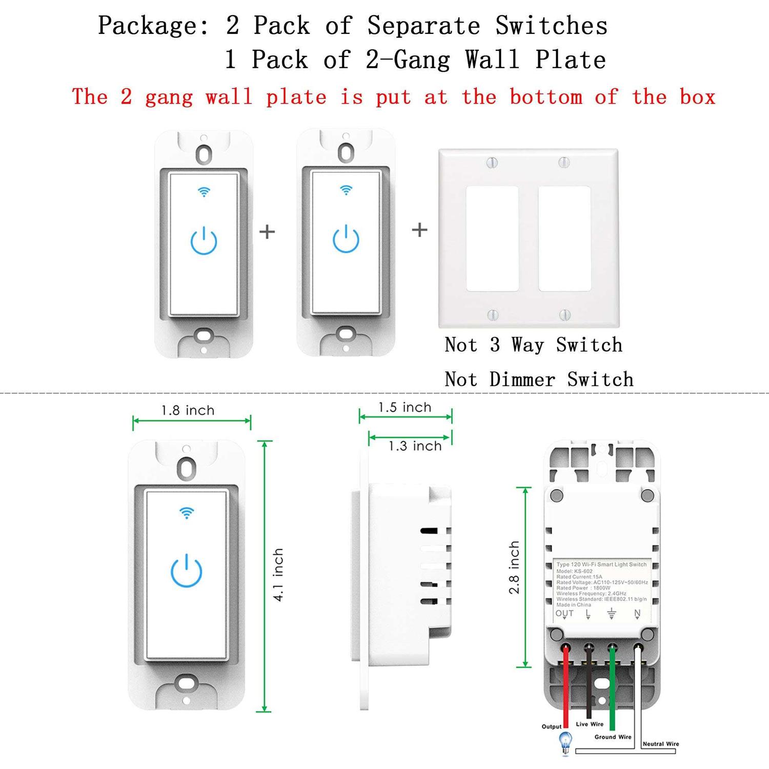 Lesim Smart Switch Wifi Wall Light Switch Compatible with Alexa Google Assistant