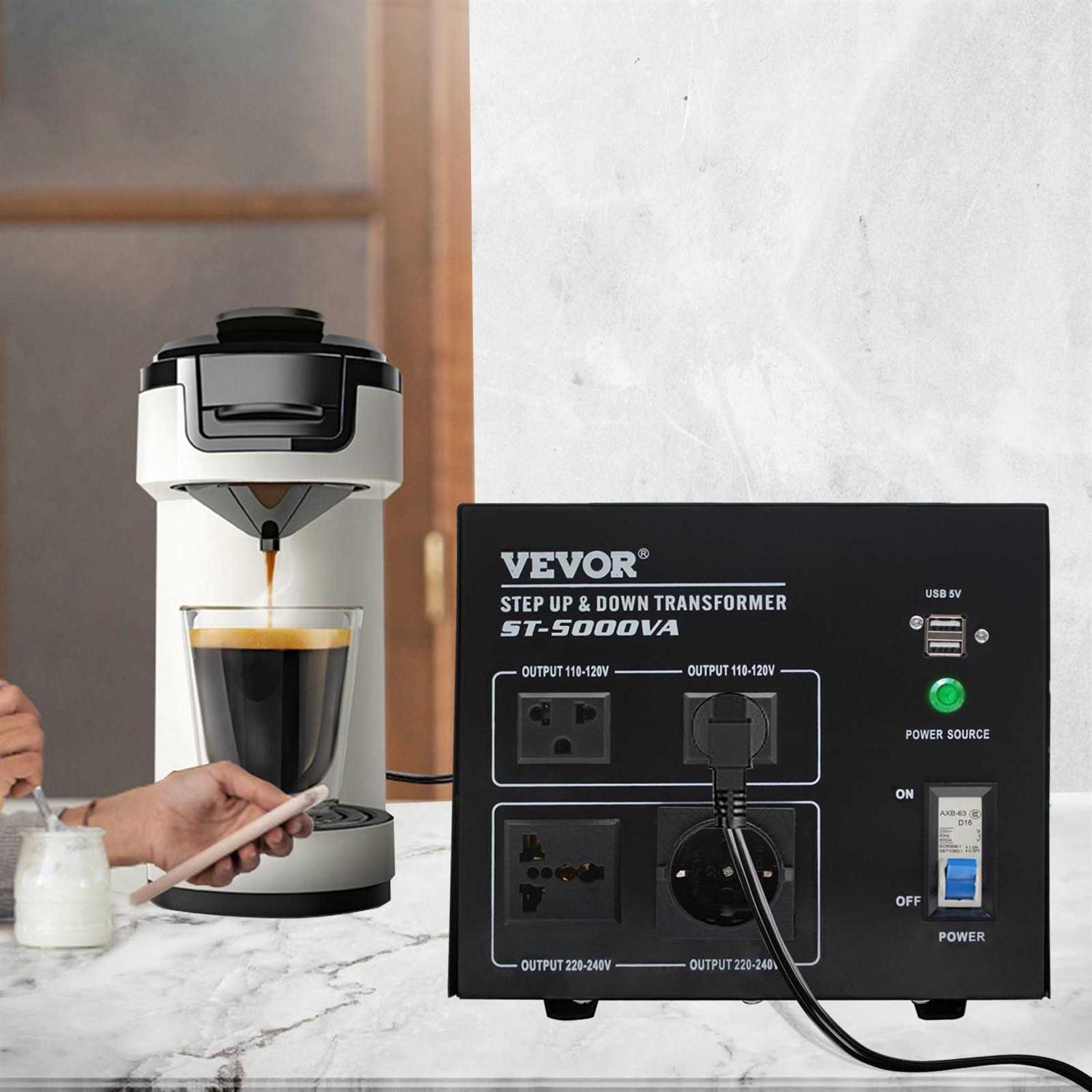VEVOR Voltage Converter Transformer,5000W Heavy Duty Step Up/Down Transformer Converter,2 US&1 UK&1 Universal Outlet SJBYQ5KVA222ULRDUV7