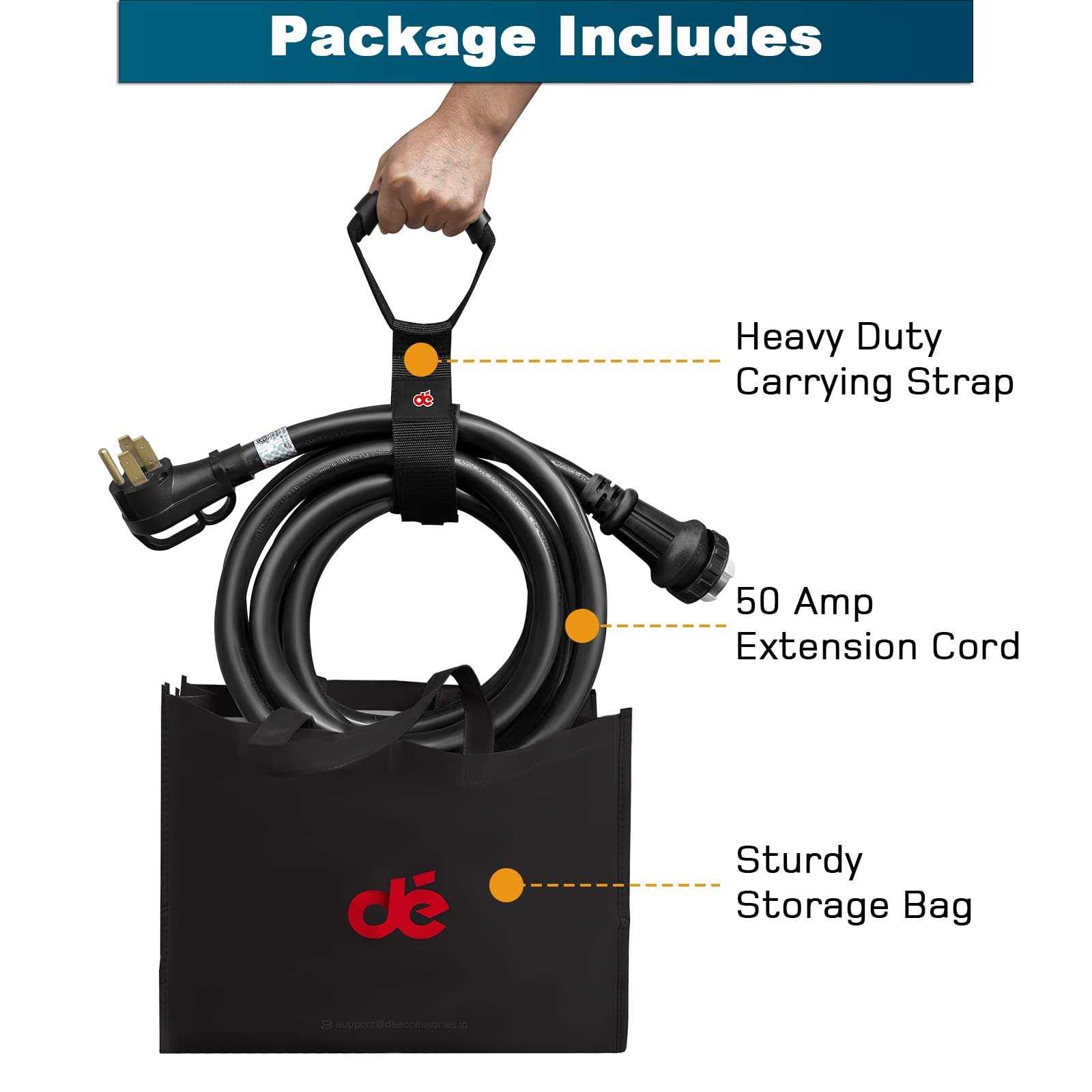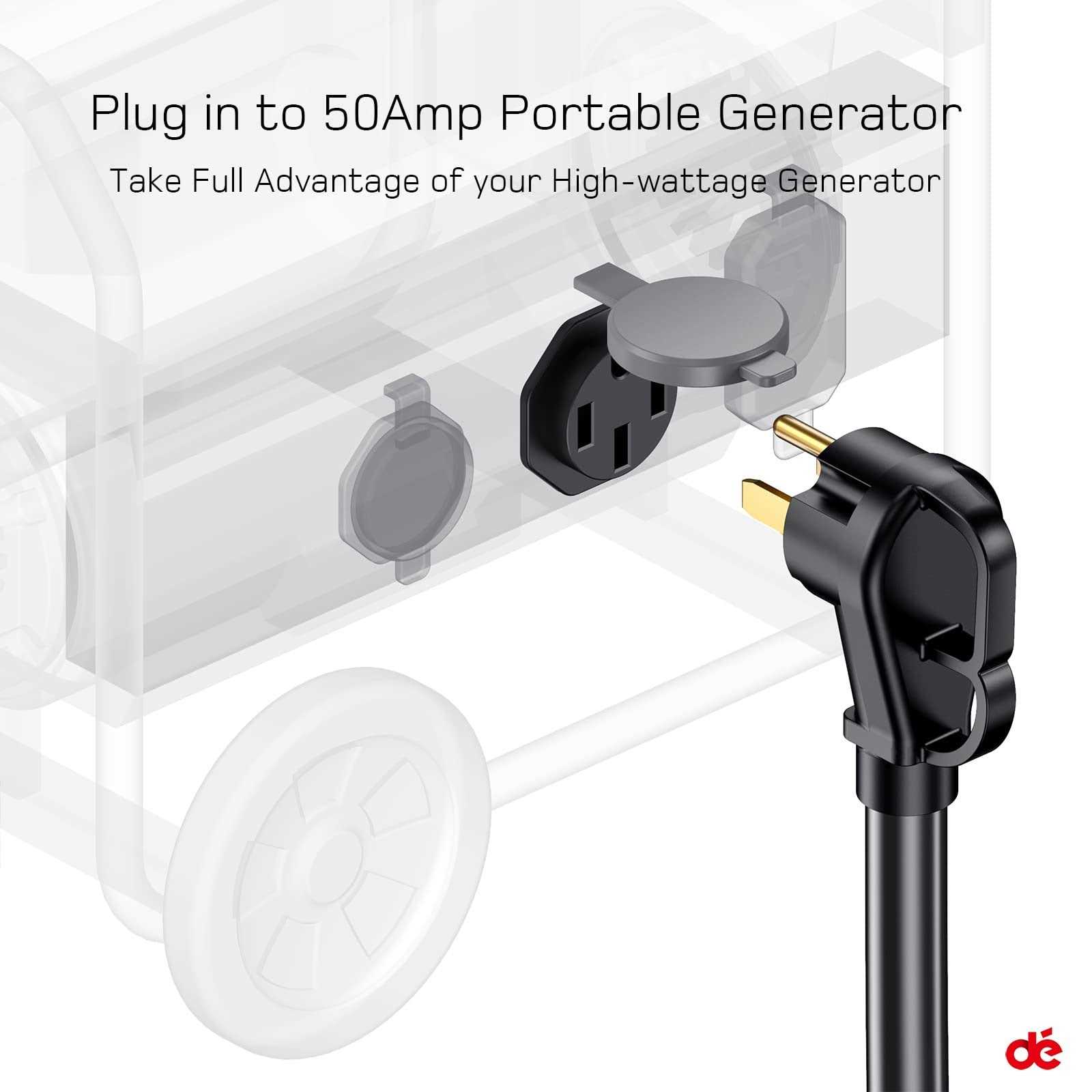 50 Amp Generator Cord 15ft Generator Extension Cord with Organizer NEMA 14-50P to SS2-50R 4 Prong 50A Power Cord for 50A Inlet Box