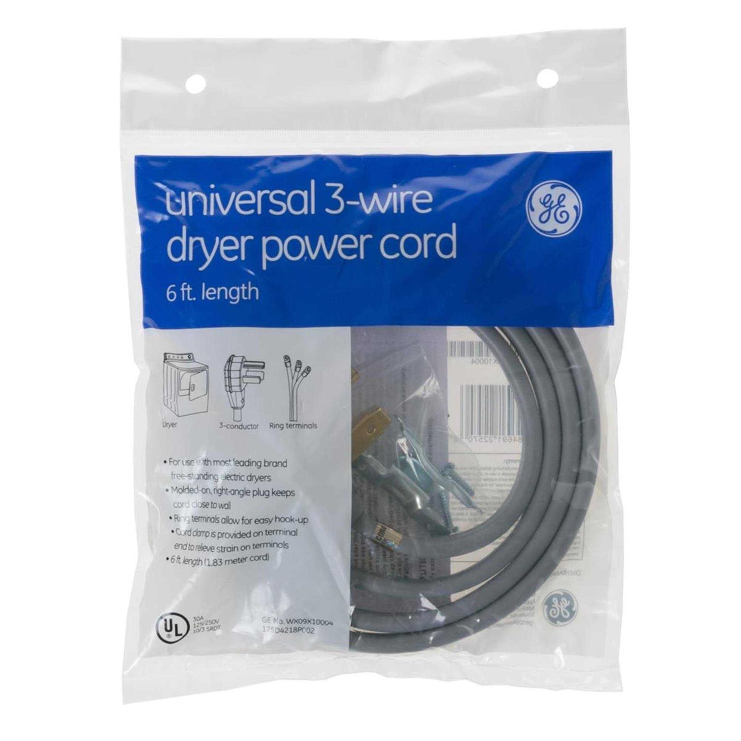 GE 6′ 30amp 3 Wire Dryer Cord