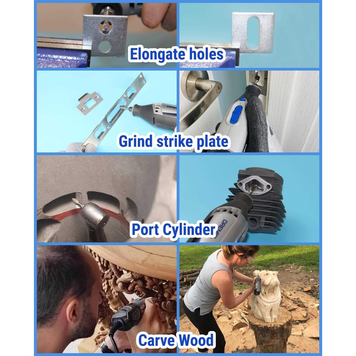 Sworker Carbide Burr Set Compatible with Dremel 1/8 Shank 20pcs Die Grinder Rotary Tool Rasp Bits Accessories Attachments Metal Wood Stone Plastic