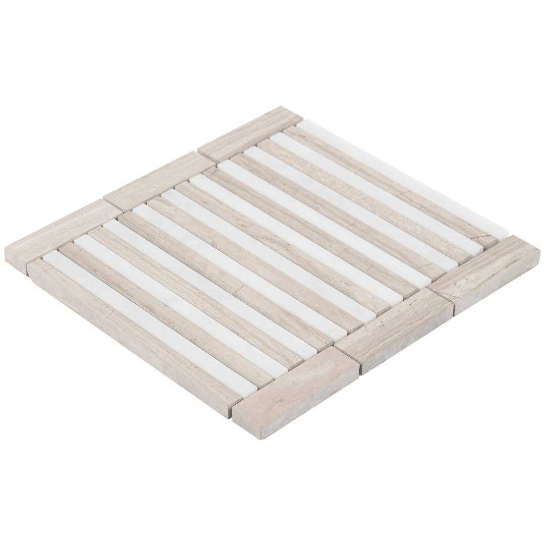 Florey Linear 7.87 in. x 8.31 in. Polished Marble Floor and Wall Mosaic Tile Ivy Hill Tile
