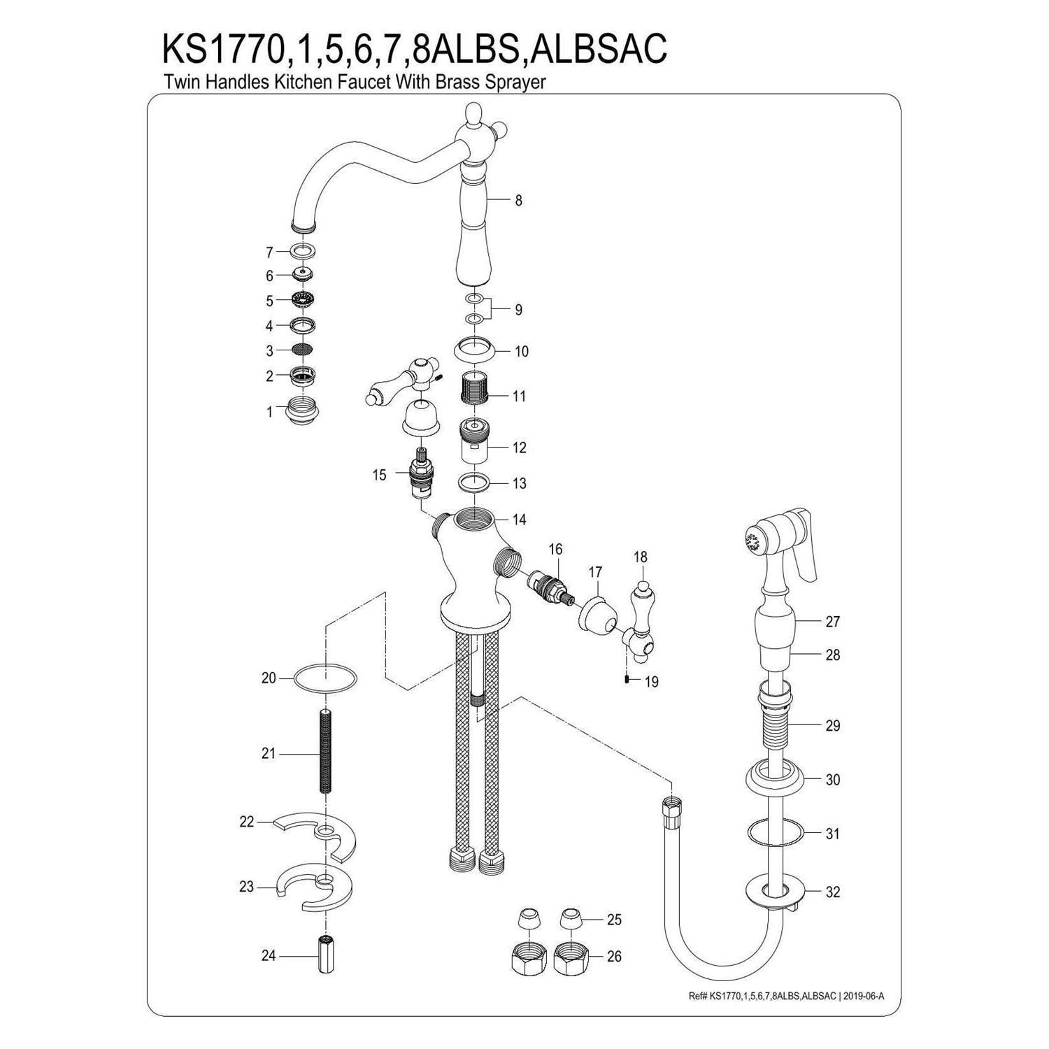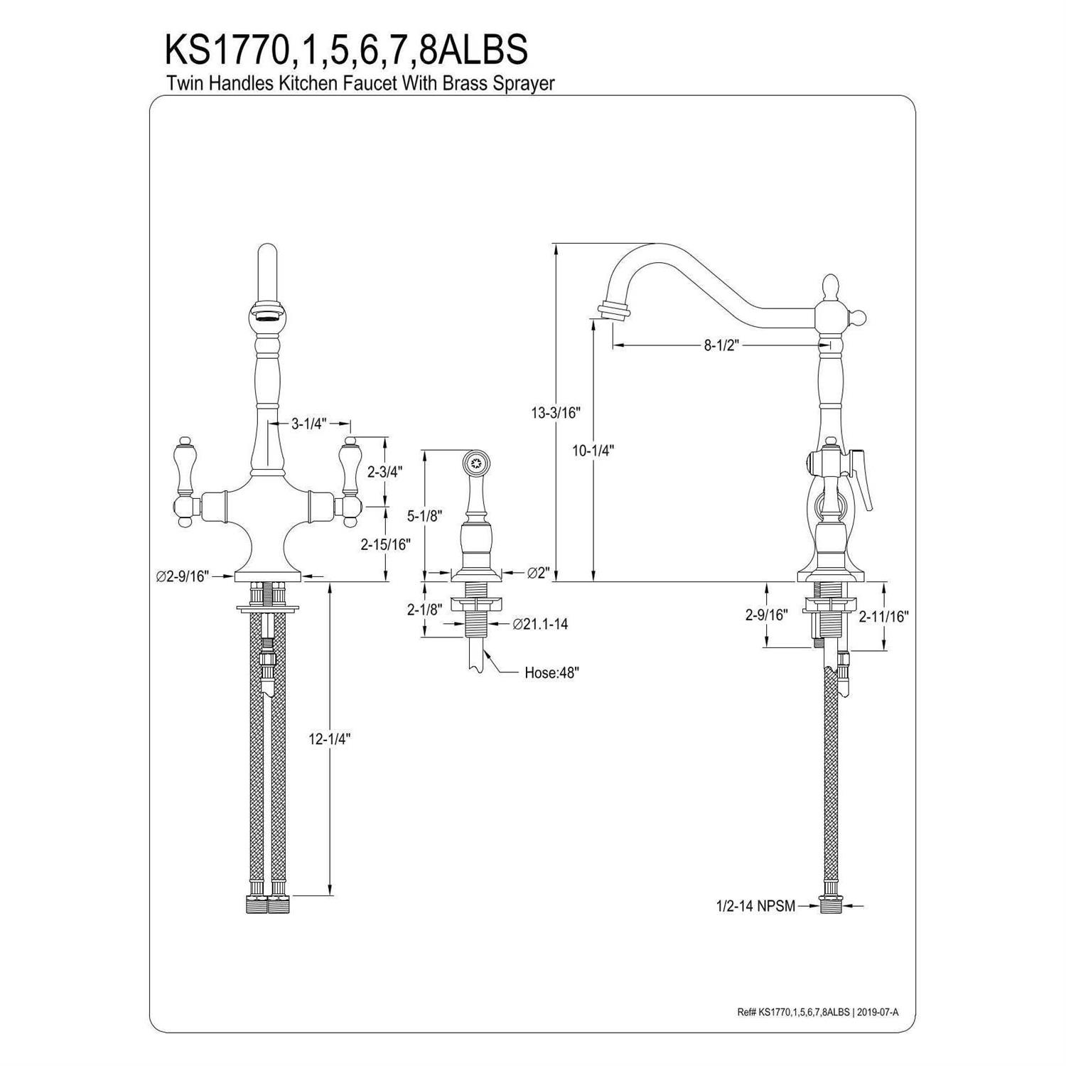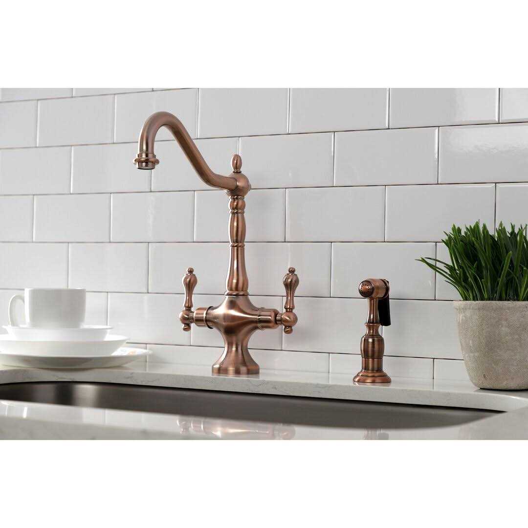 Kingston Brass KS177ALBSAC Heritage 2-Handle Kitchen Faucet with Brass Sprayer