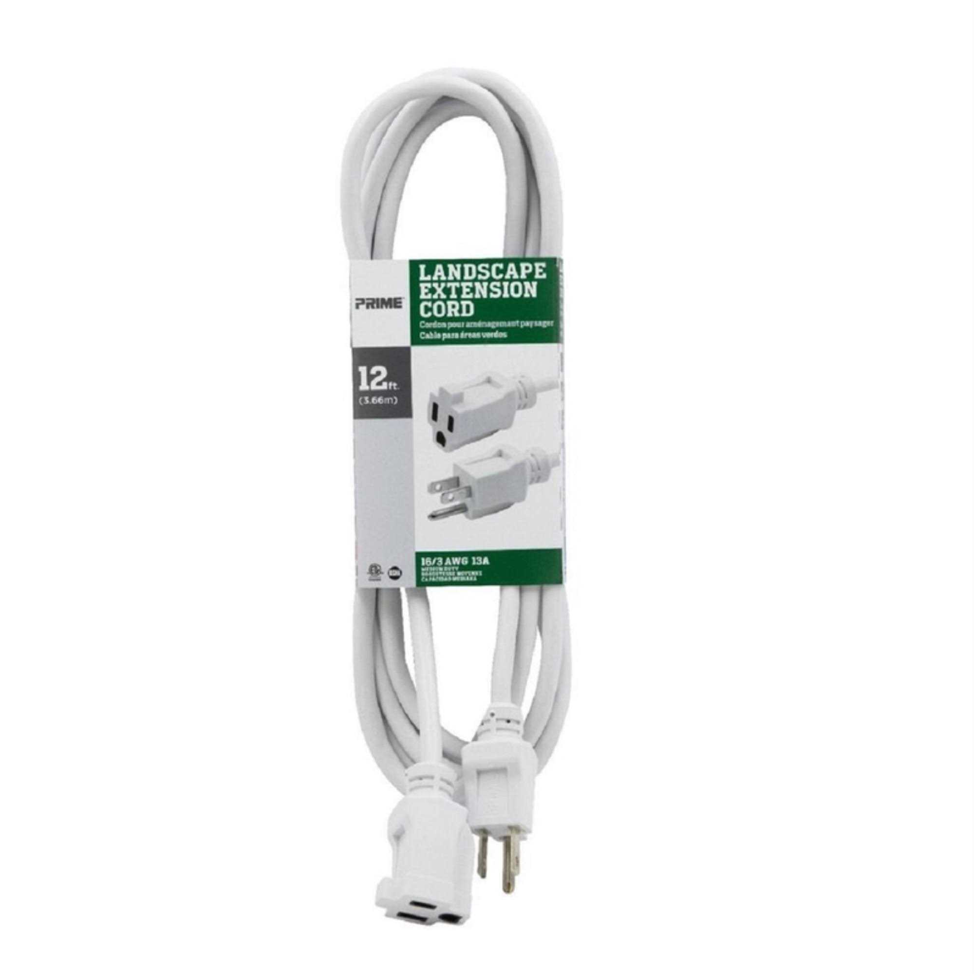 Prime Ec883612 12′ 16/3 SJTW White Landscape Extension Cord
