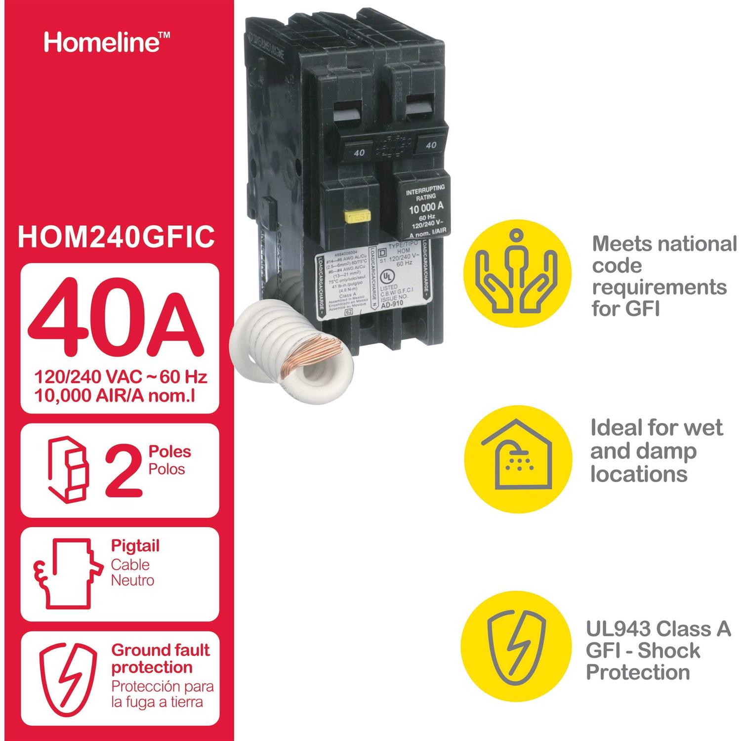 Square D Homeline 40 Amp 2-Pole GFCI Circuit Breaker HOM240GFIC