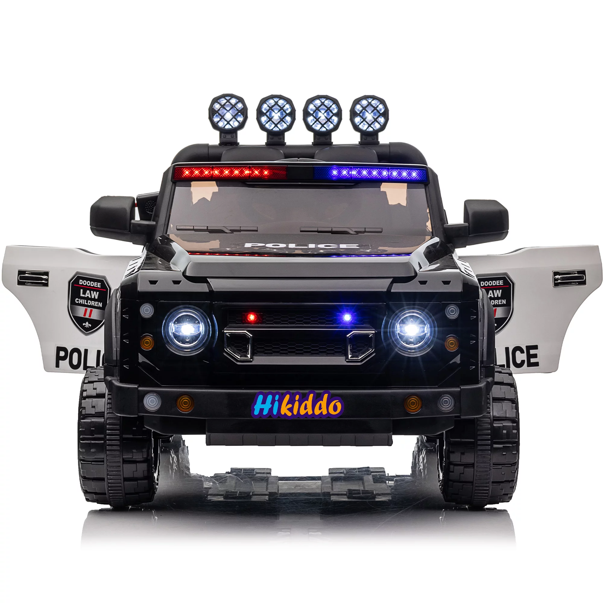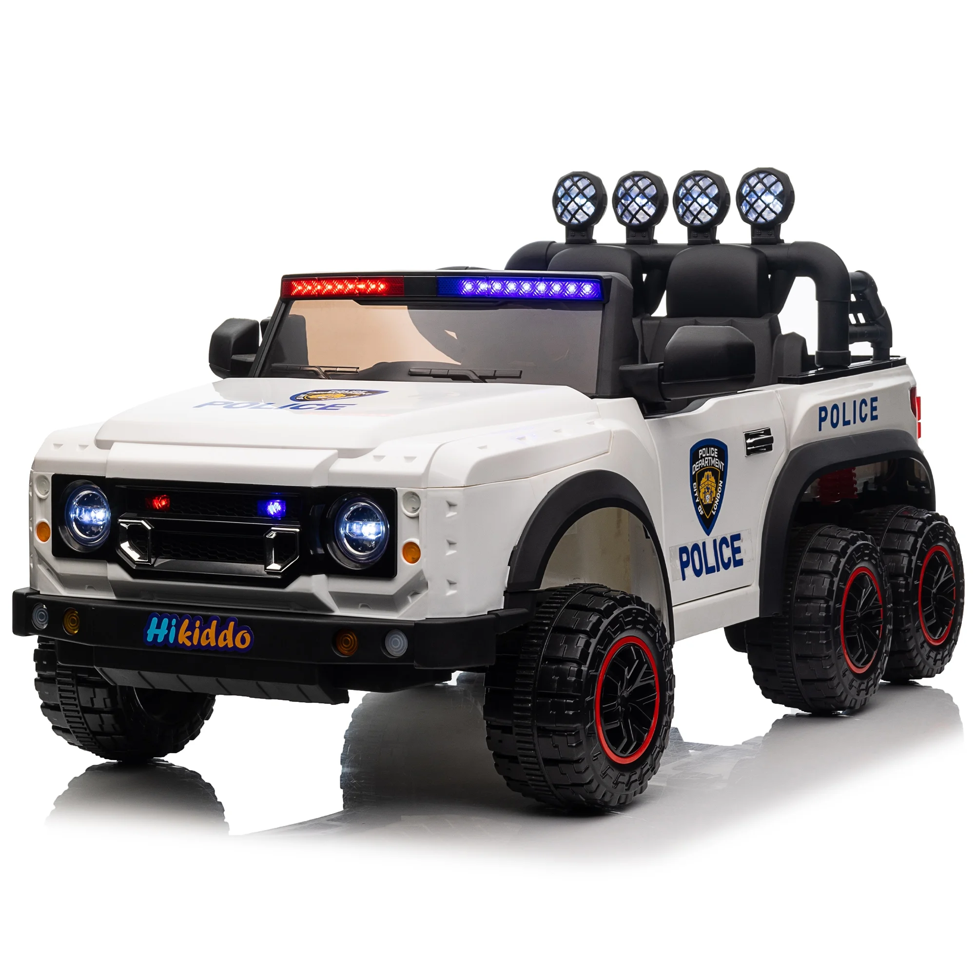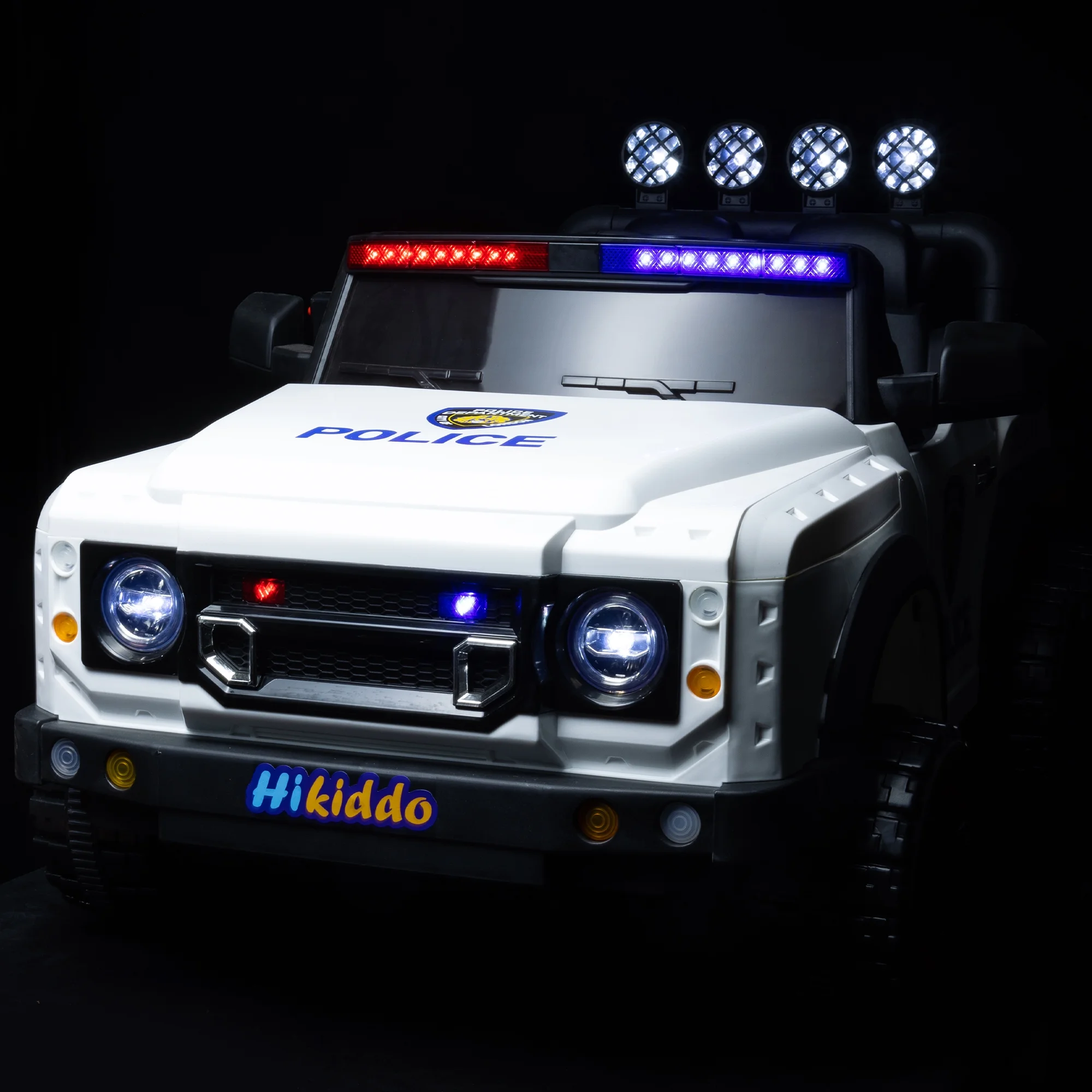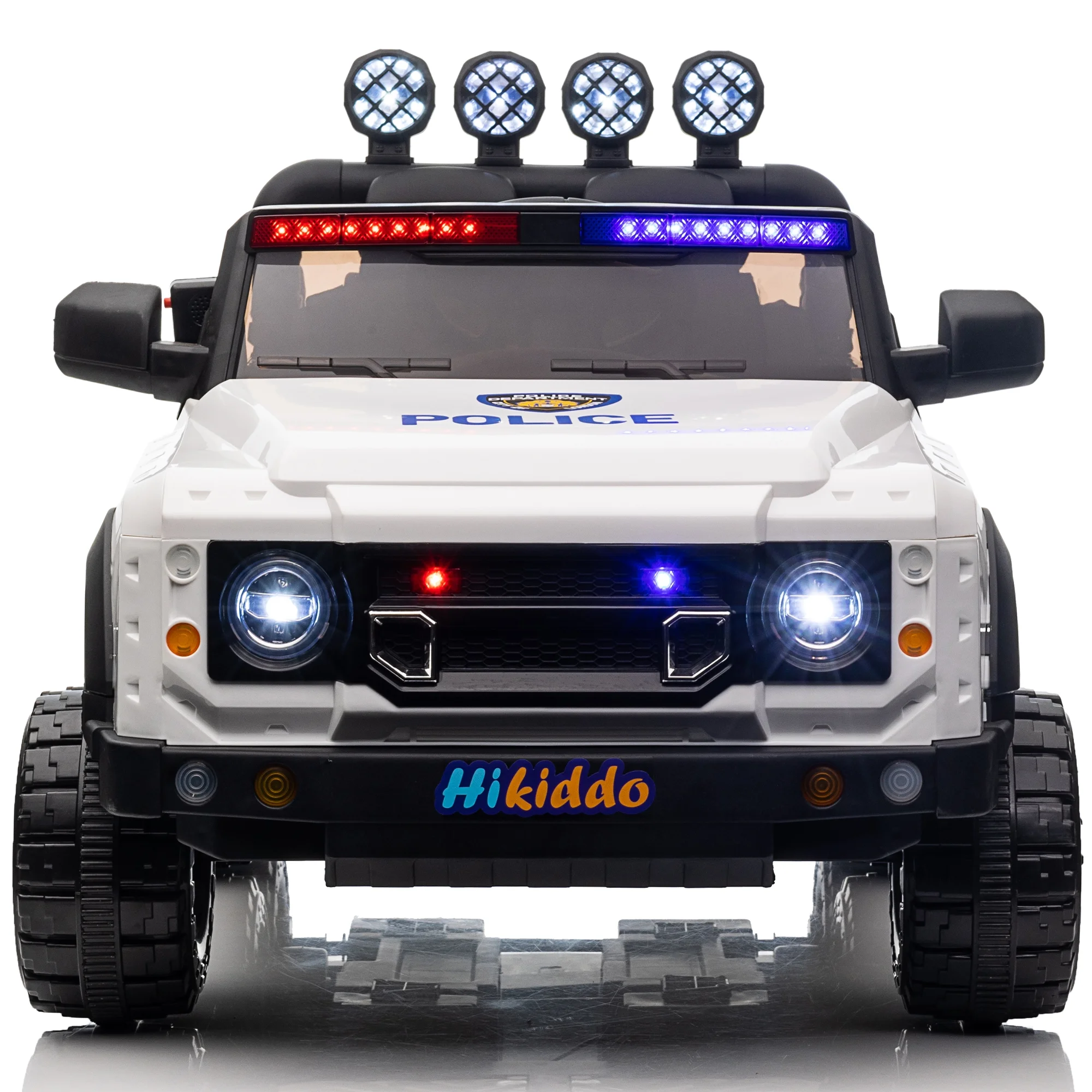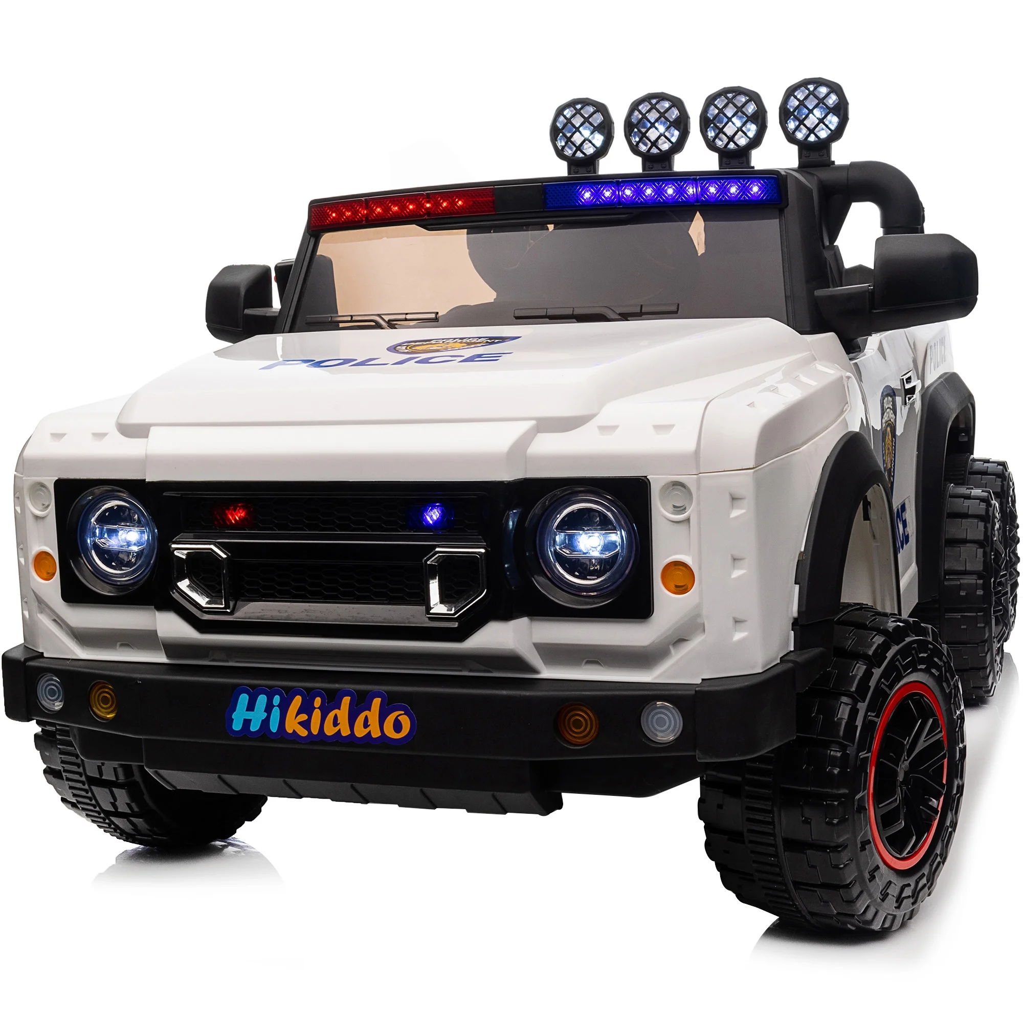Hikiddo 24V Kids Electric Police Car, 4WD 2 Seater Powered Ride on Toy Truck with Remote, Megaphone