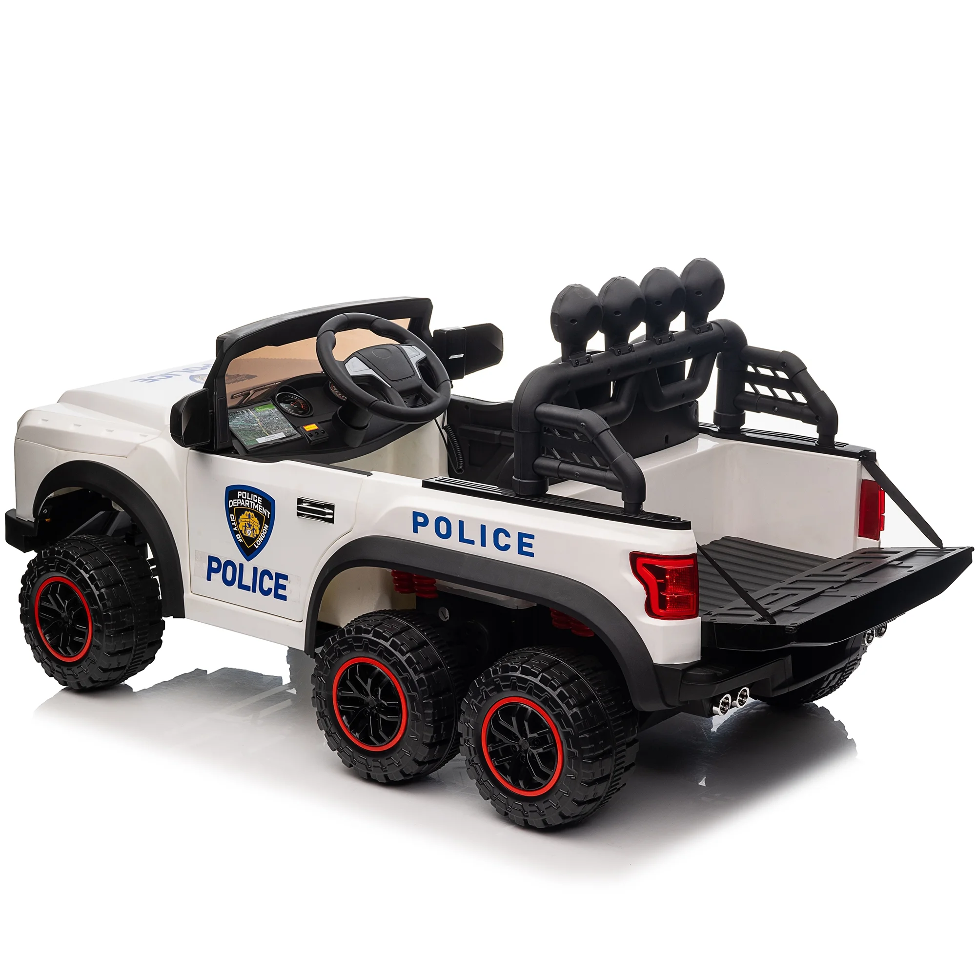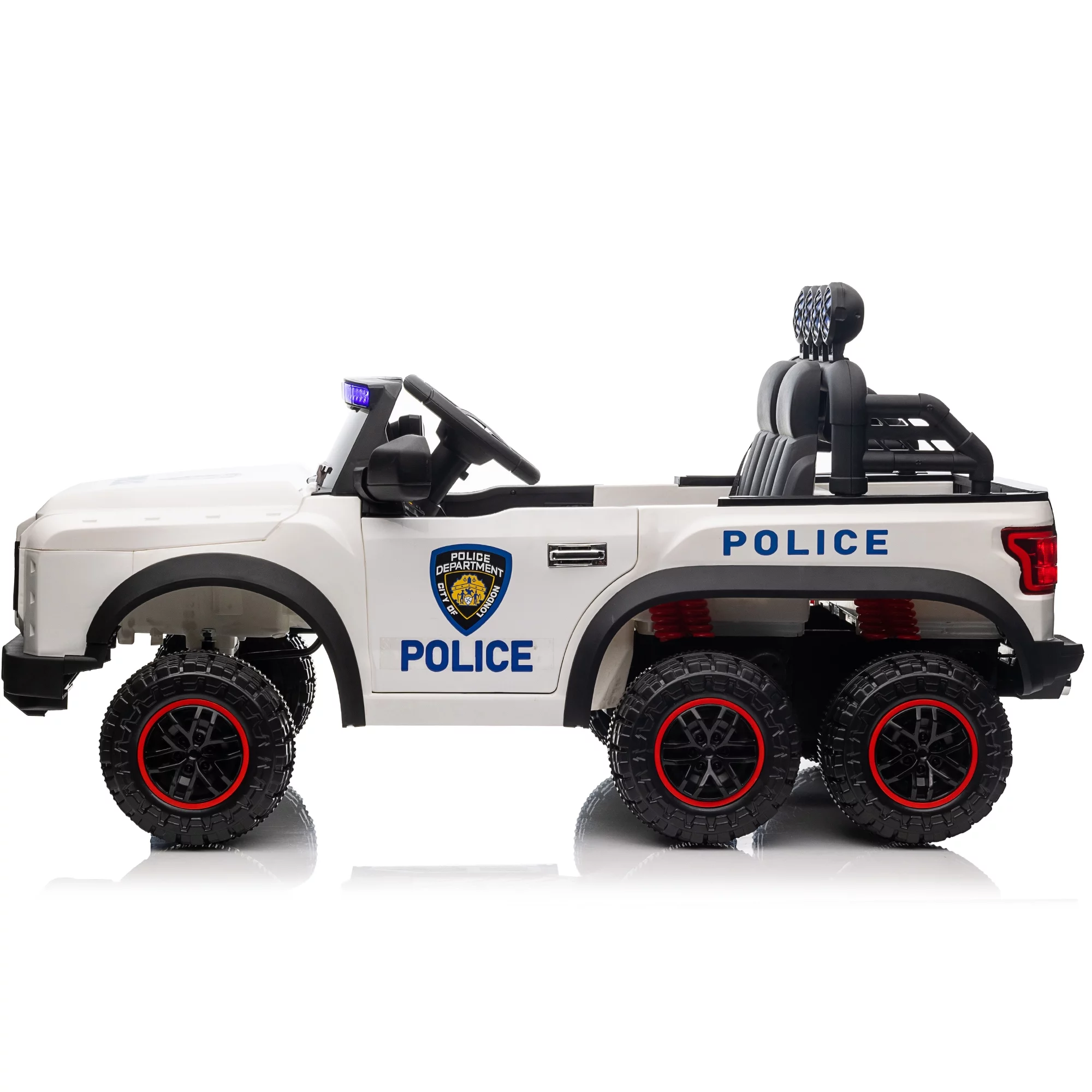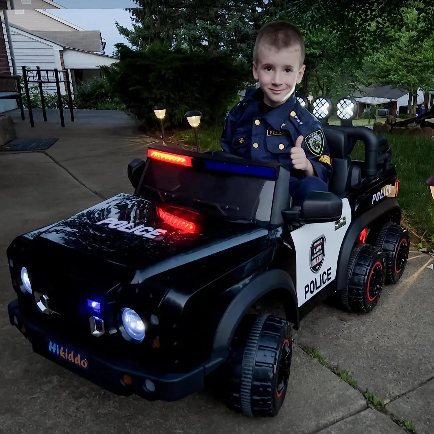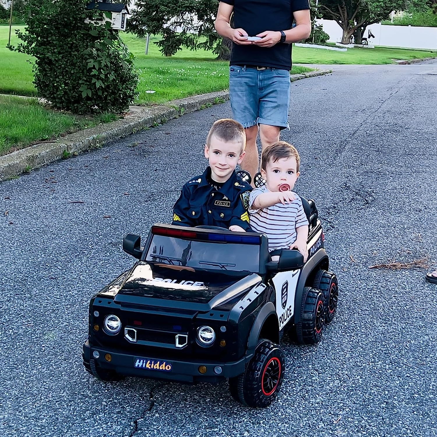 Hikiddo 24V Kids Electric Police Car, 4WD 2 Seater Powered Ride on Toy Truck with Remote, Megaphone