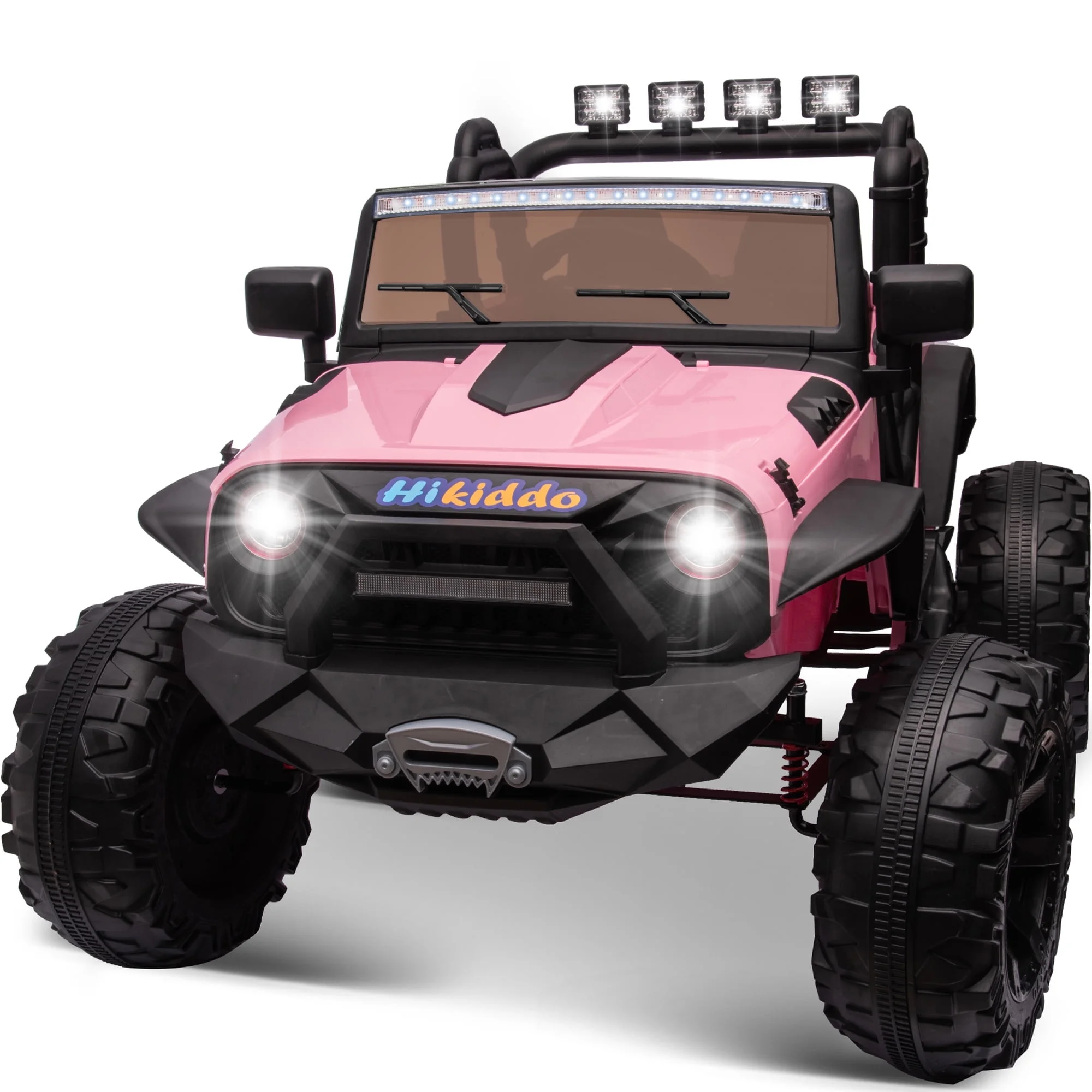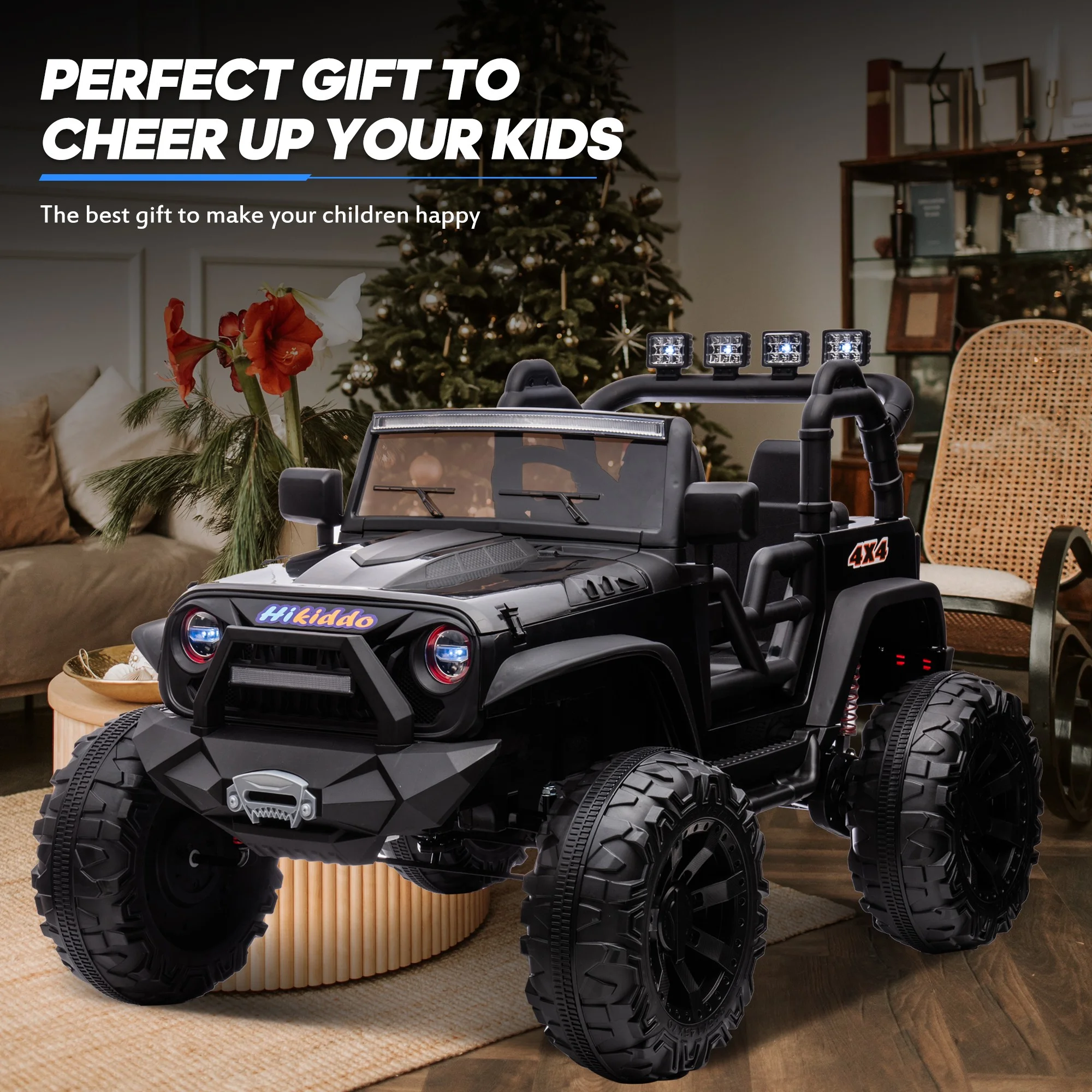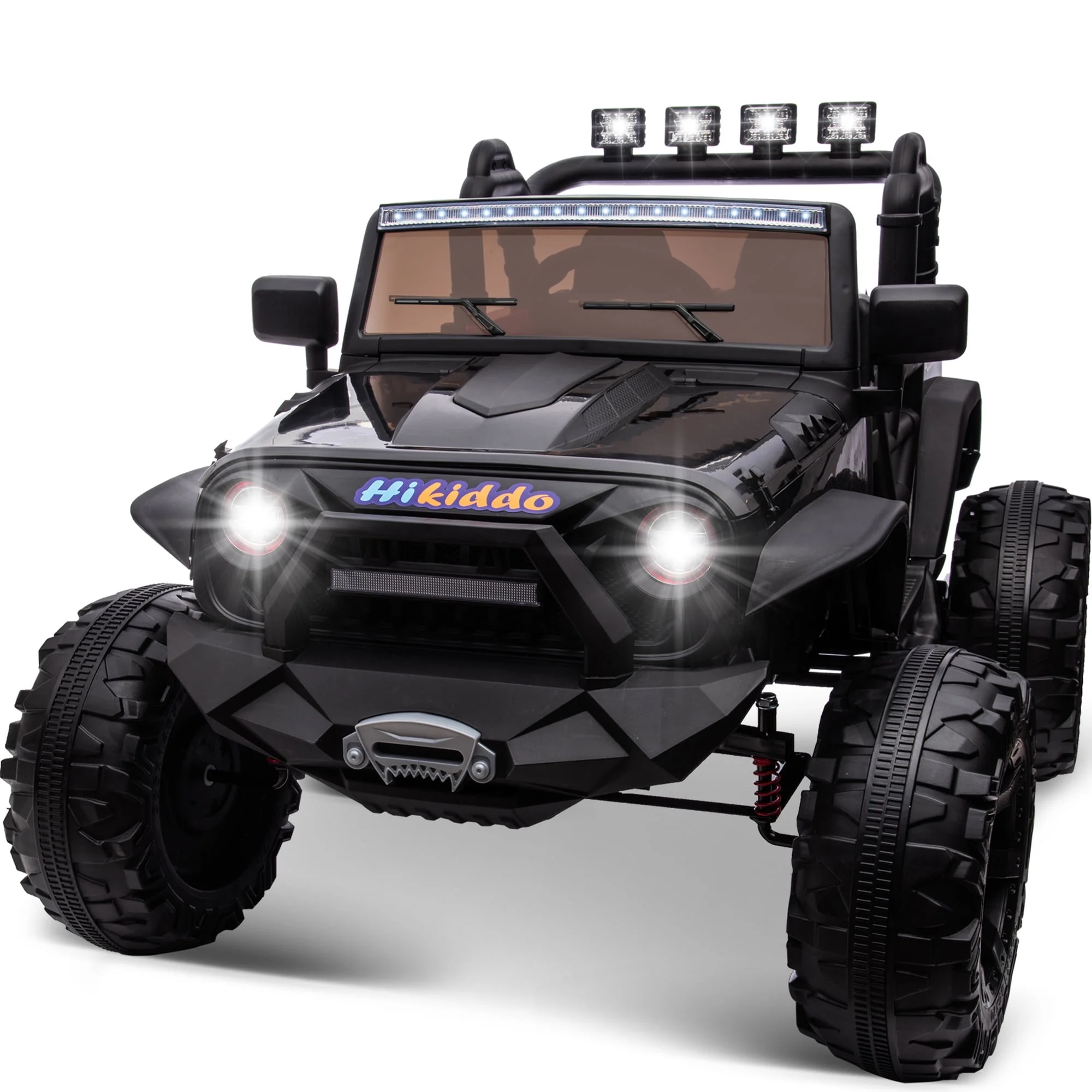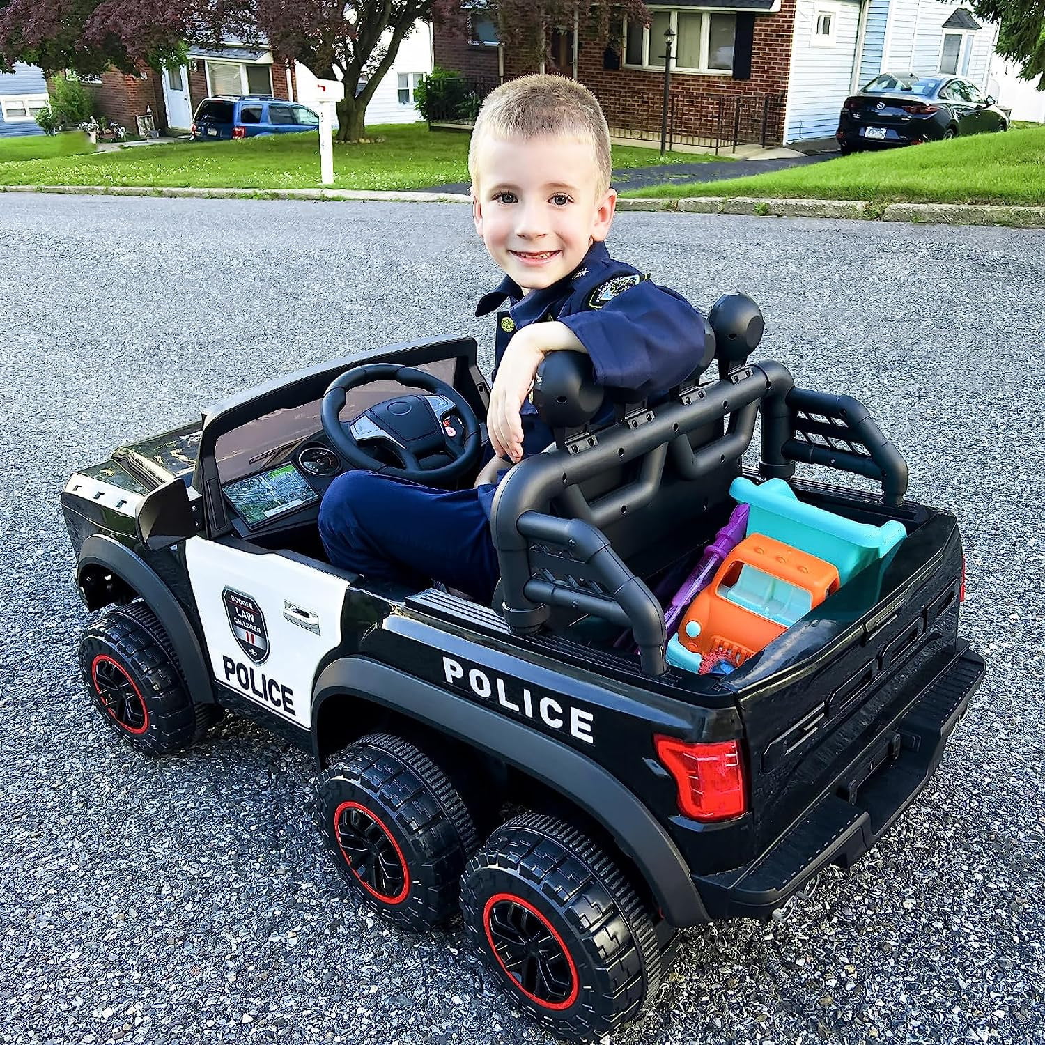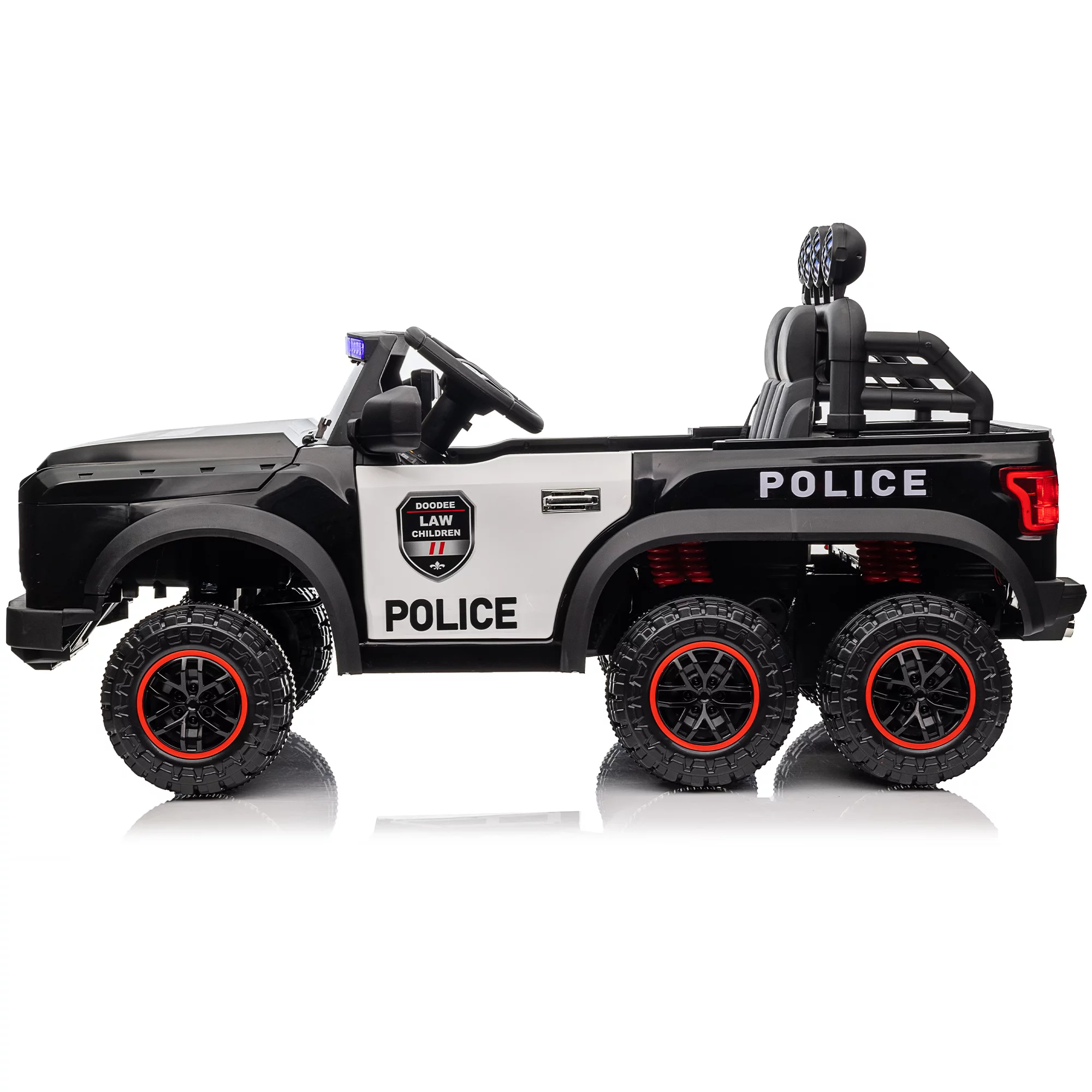 Hikiddo 24V Kids Electric Police Car, 4WD 2 Seater Powered Ride on Toy Truck with Remote, Megaphone
