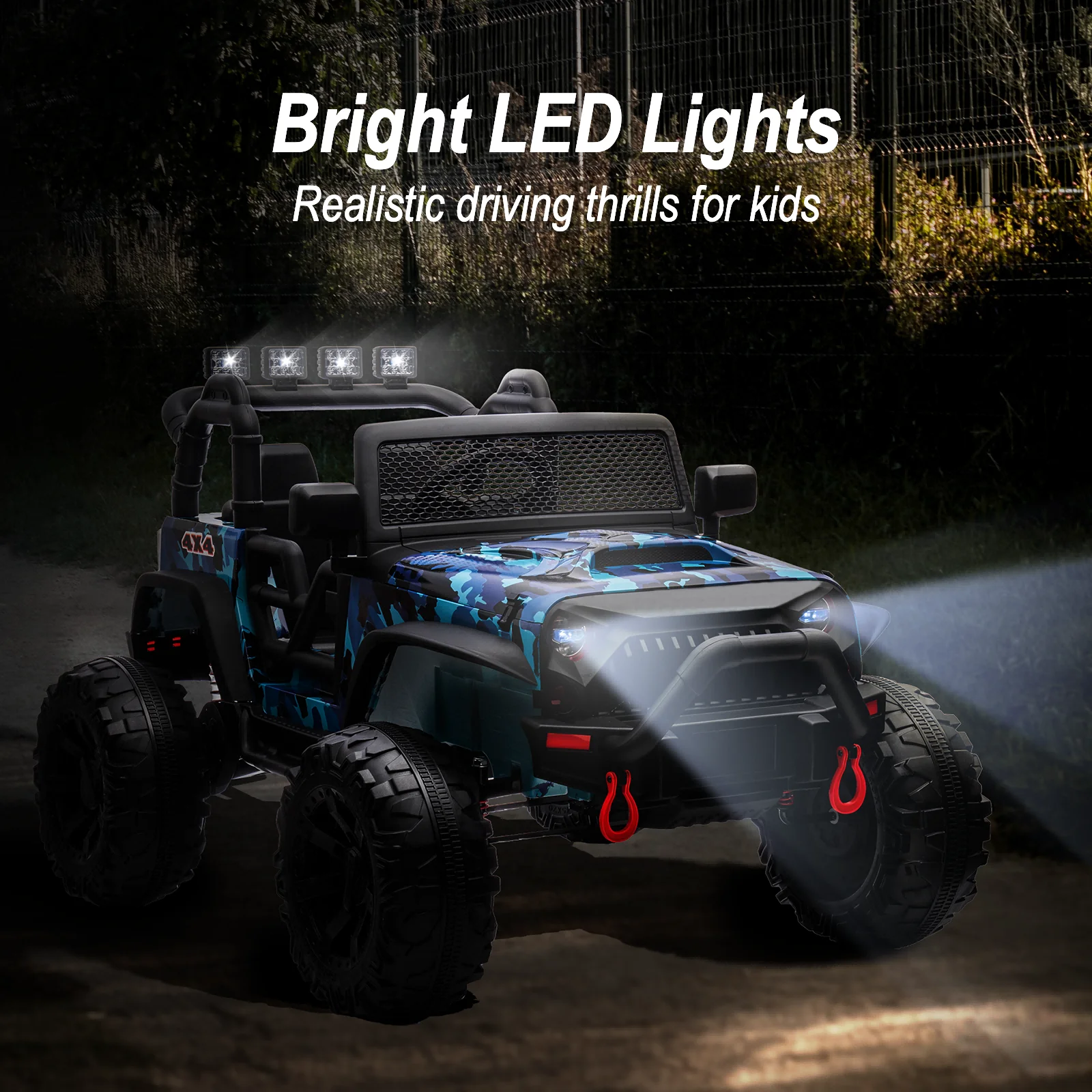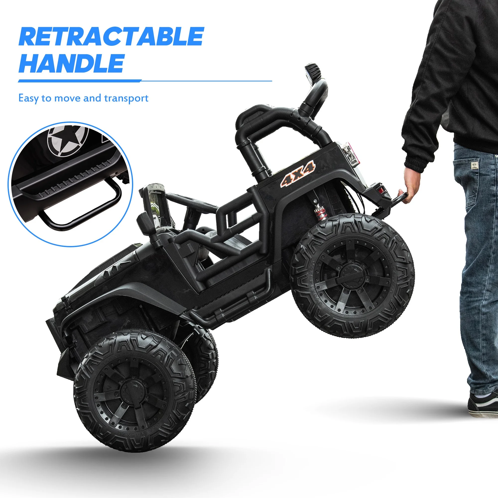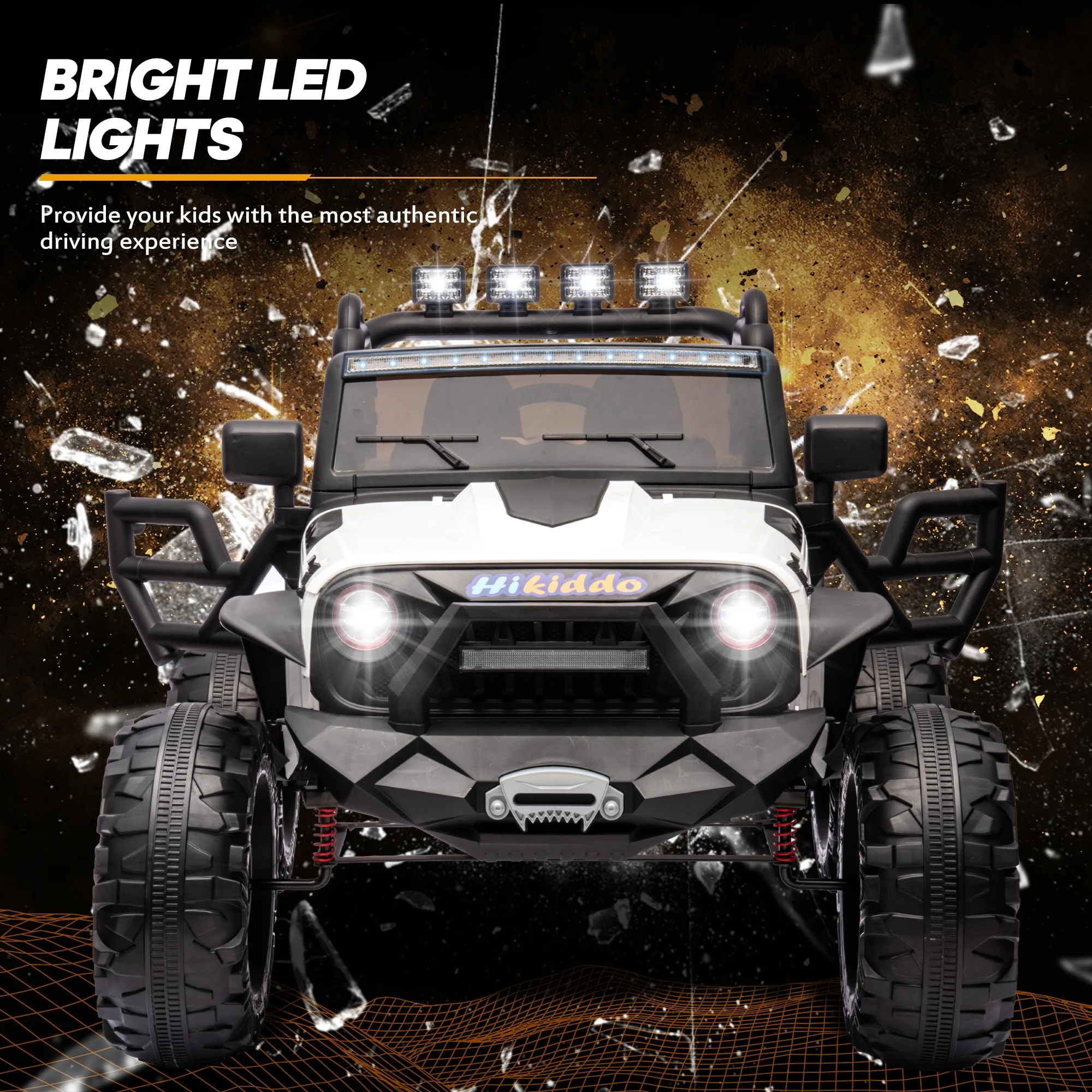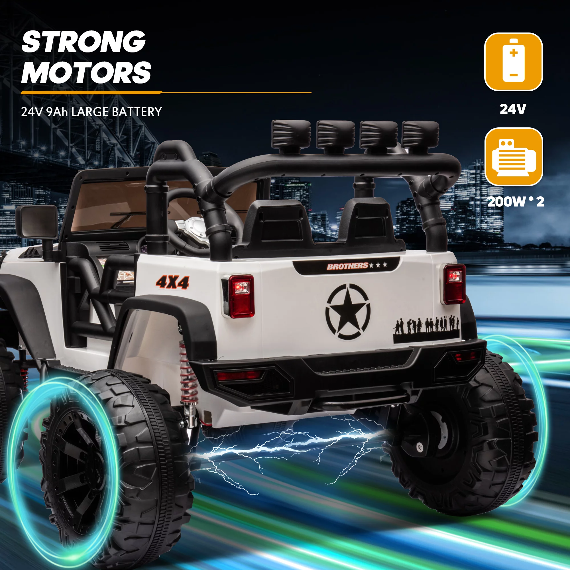 Hikiddo 24V Kids Electric Police Car, 4WD 2 Seater Powered Ride on Toy Truck with Remote, Megaphone