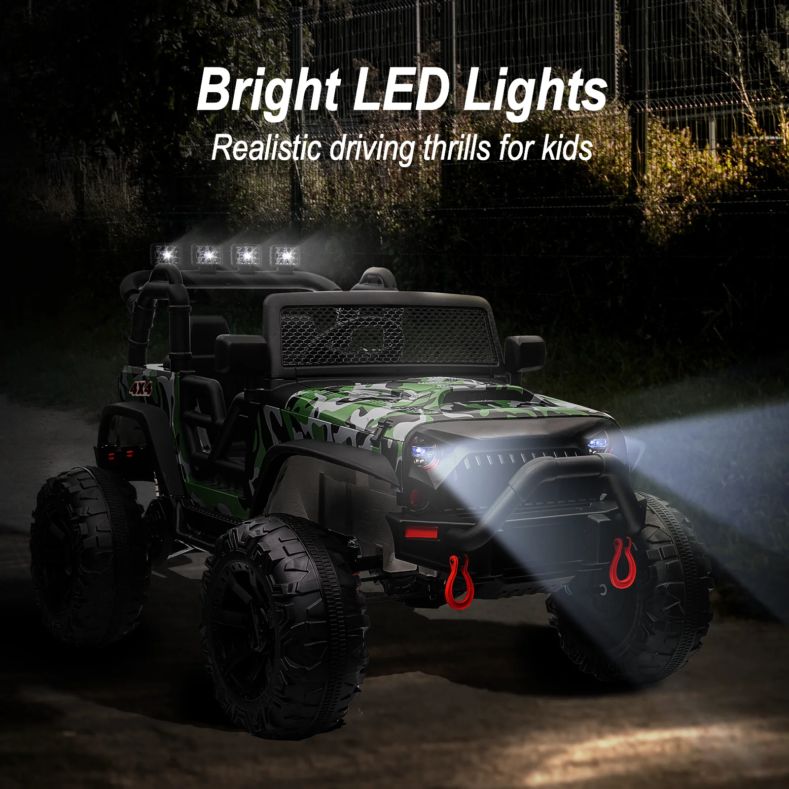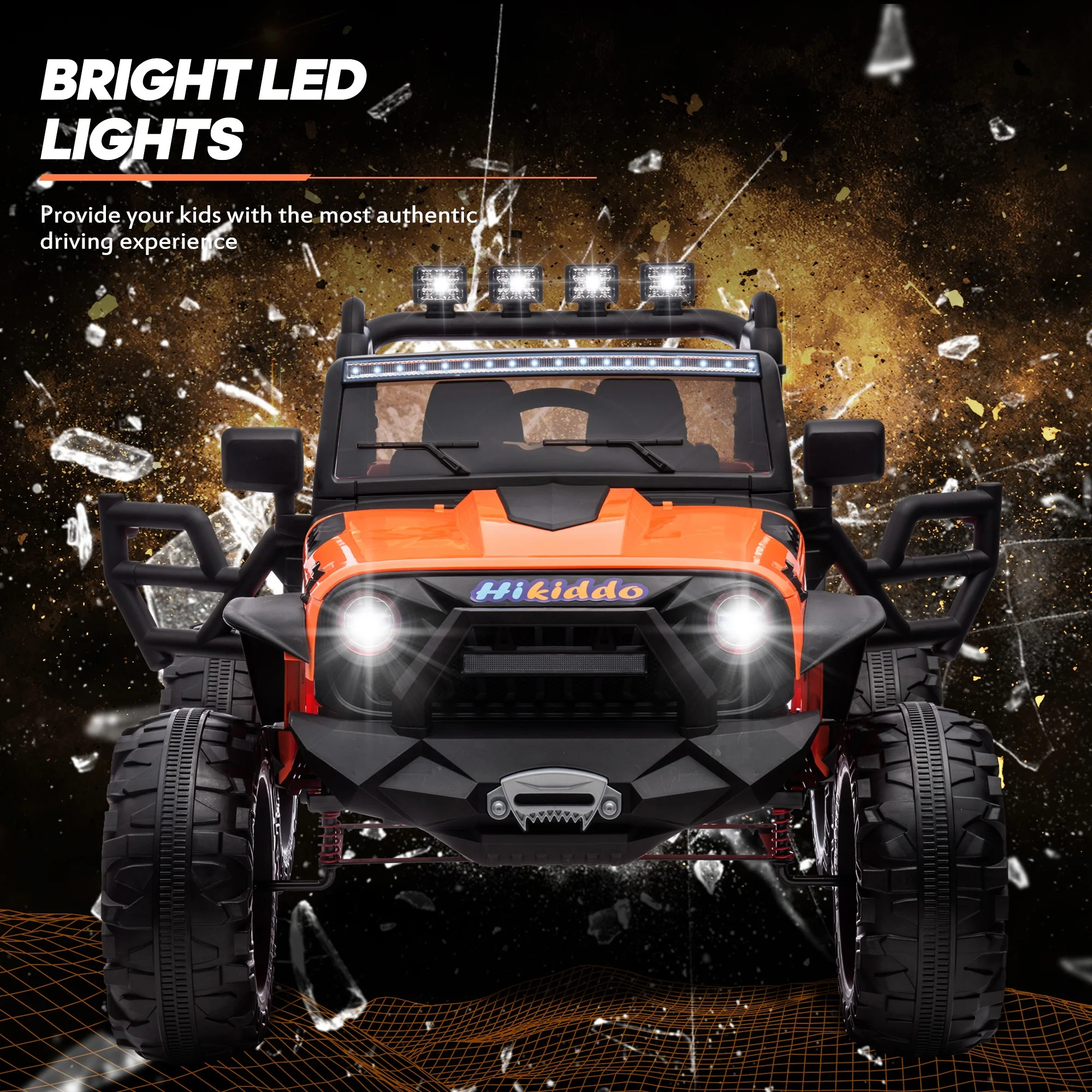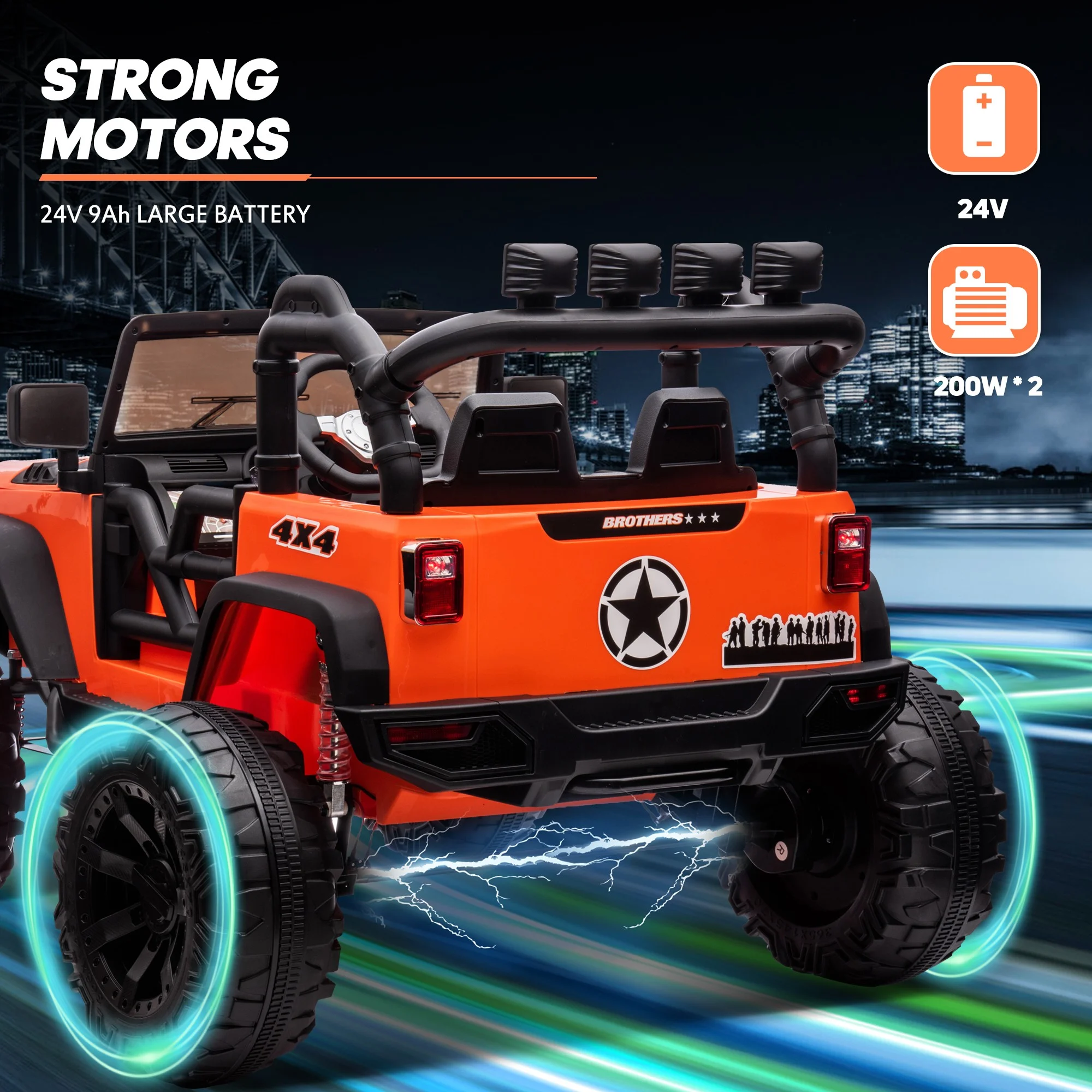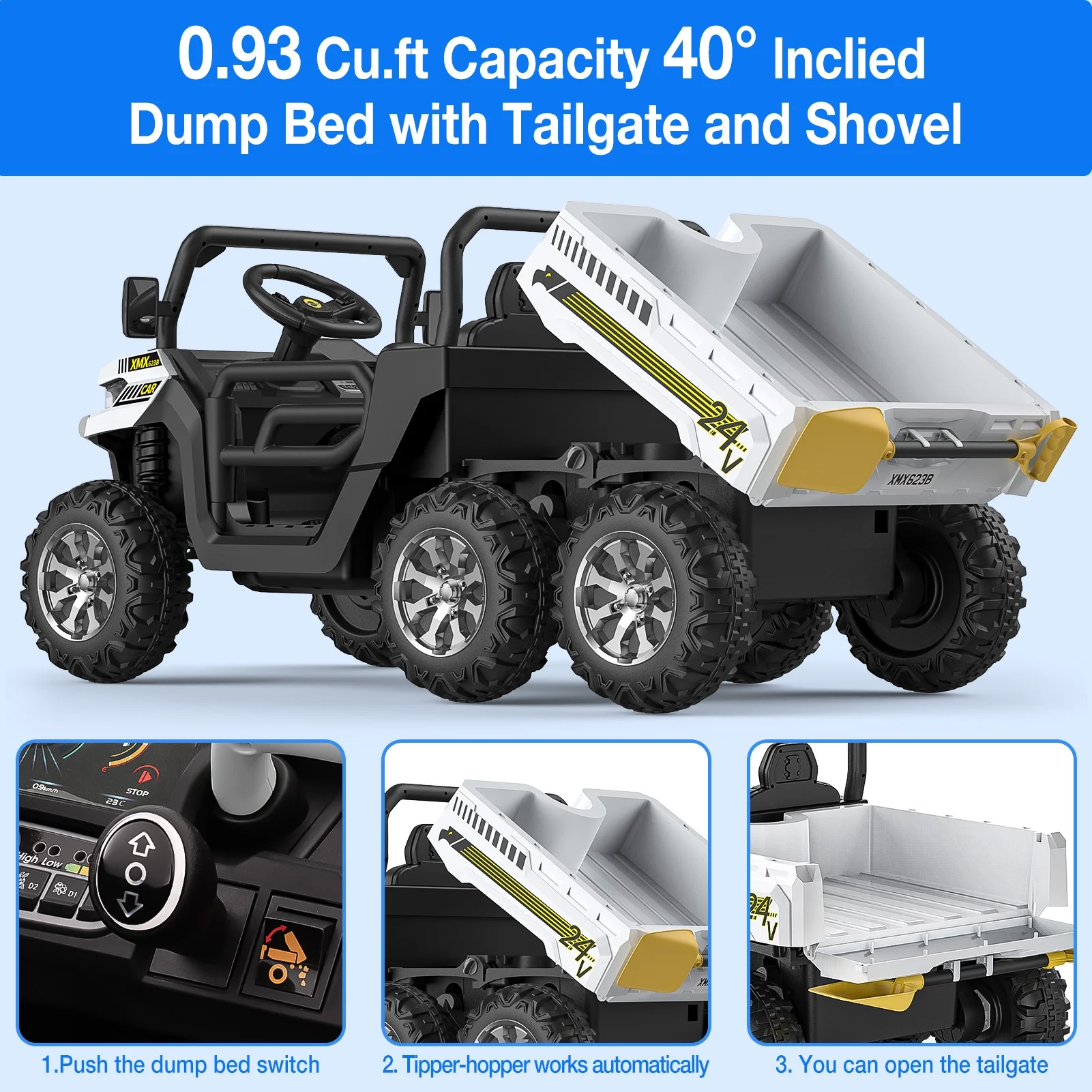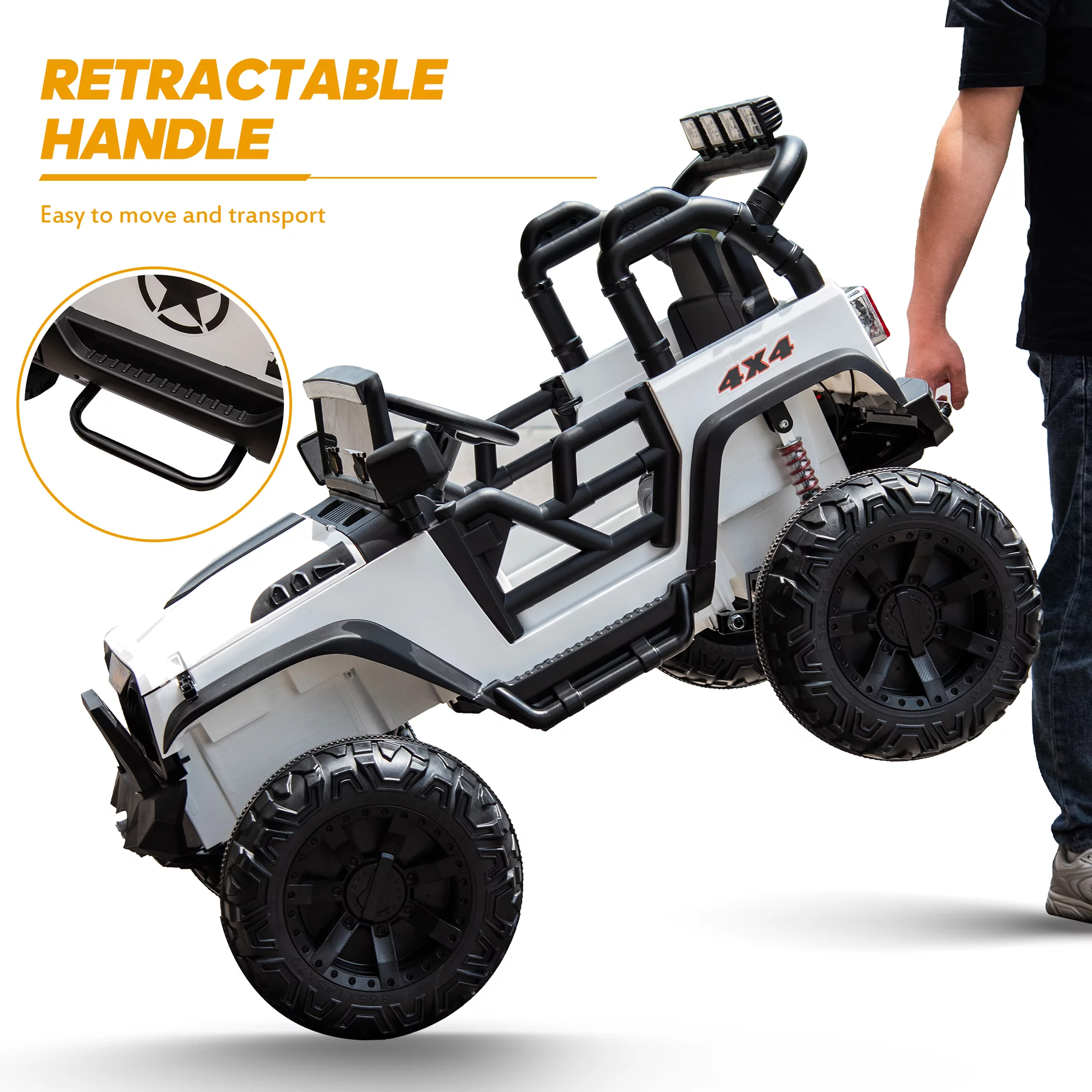 Hikiddo 24V Kids Electric Police Car, 4WD 2 Seater Powered Ride on Toy Truck with Remote, Megaphone