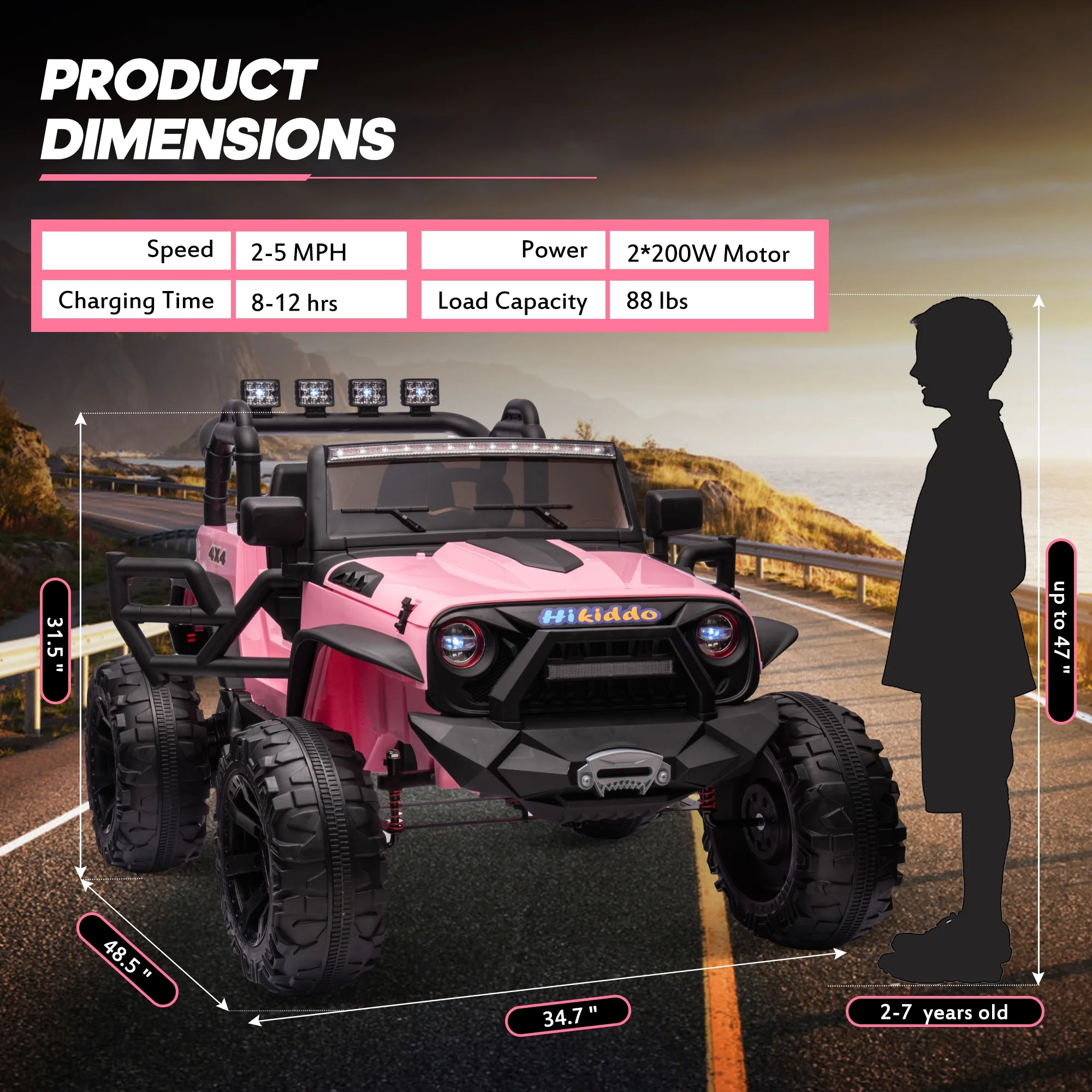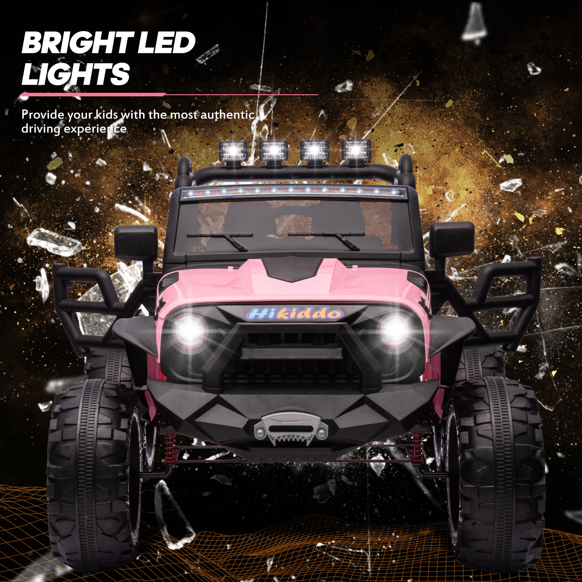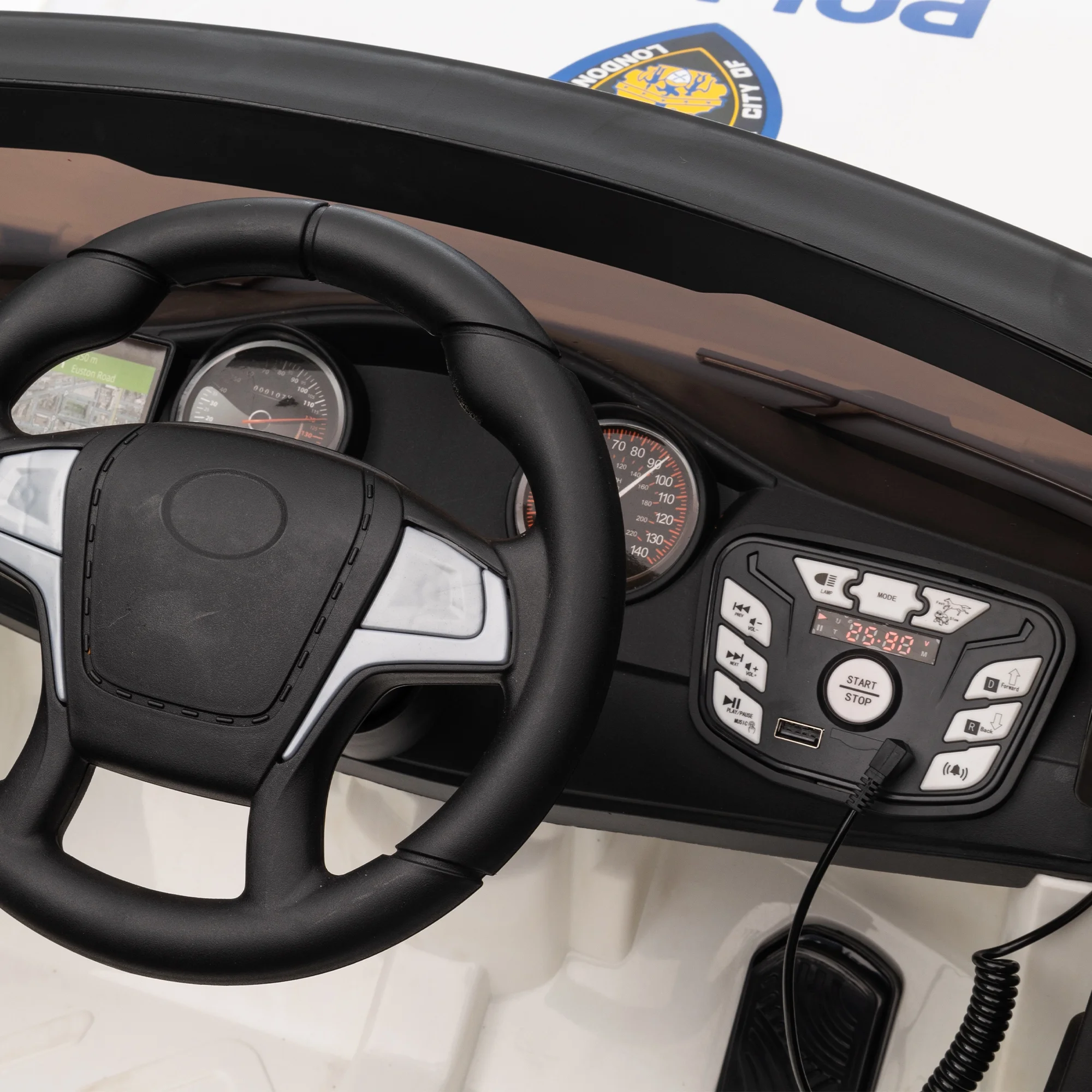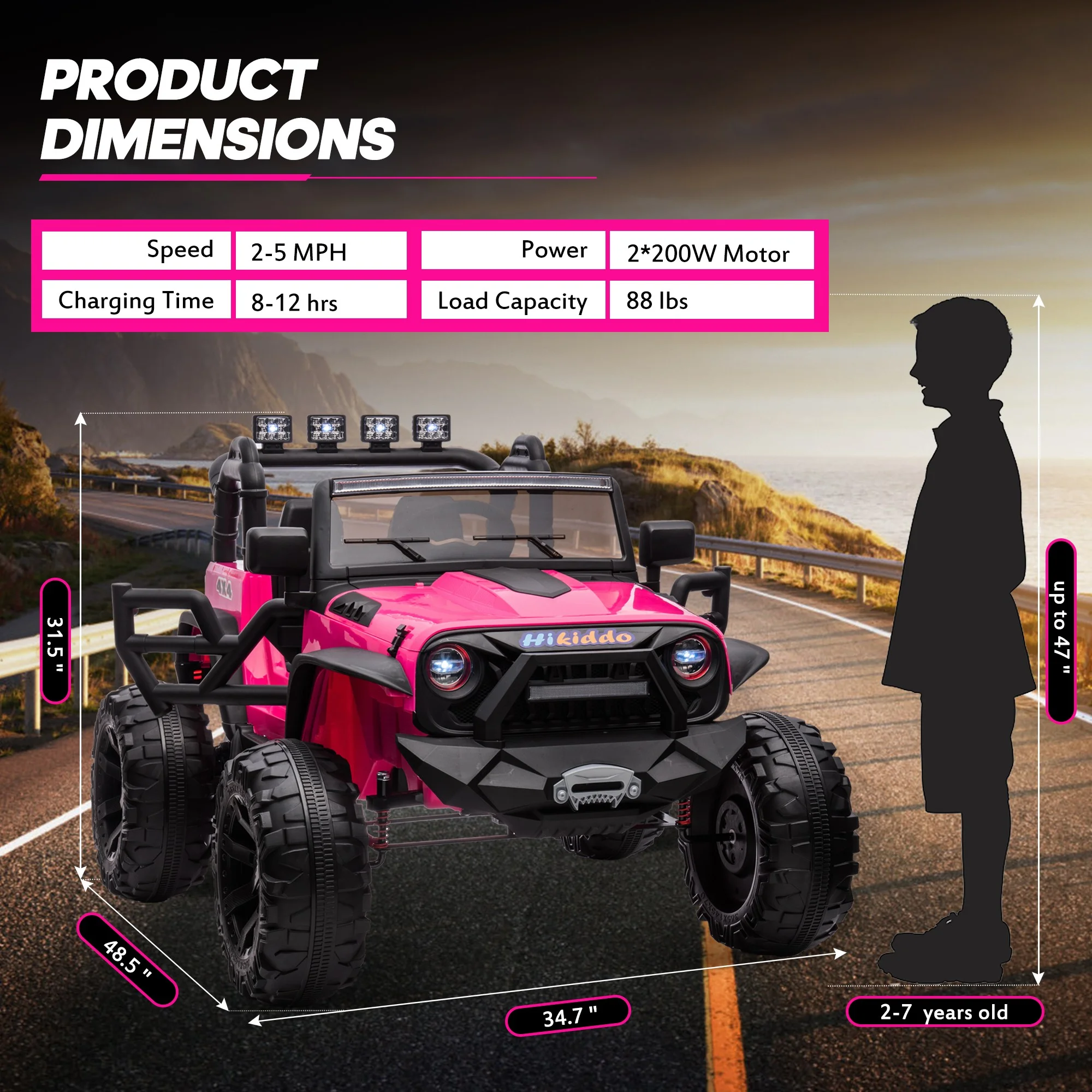 Hikiddo 24V Kids Electric Police Car, 4WD 2 Seater Powered Ride on Toy Truck with Remote, Megaphone