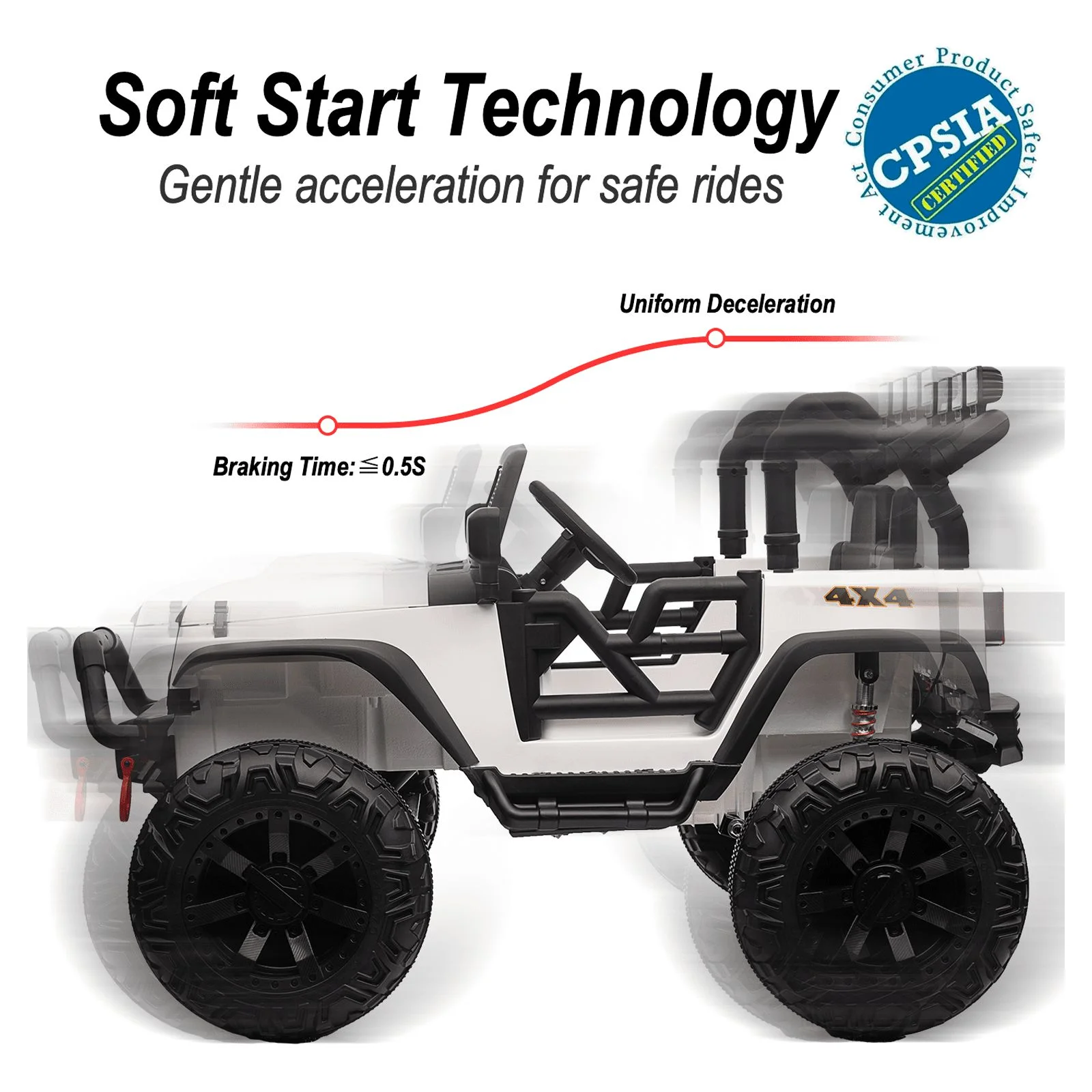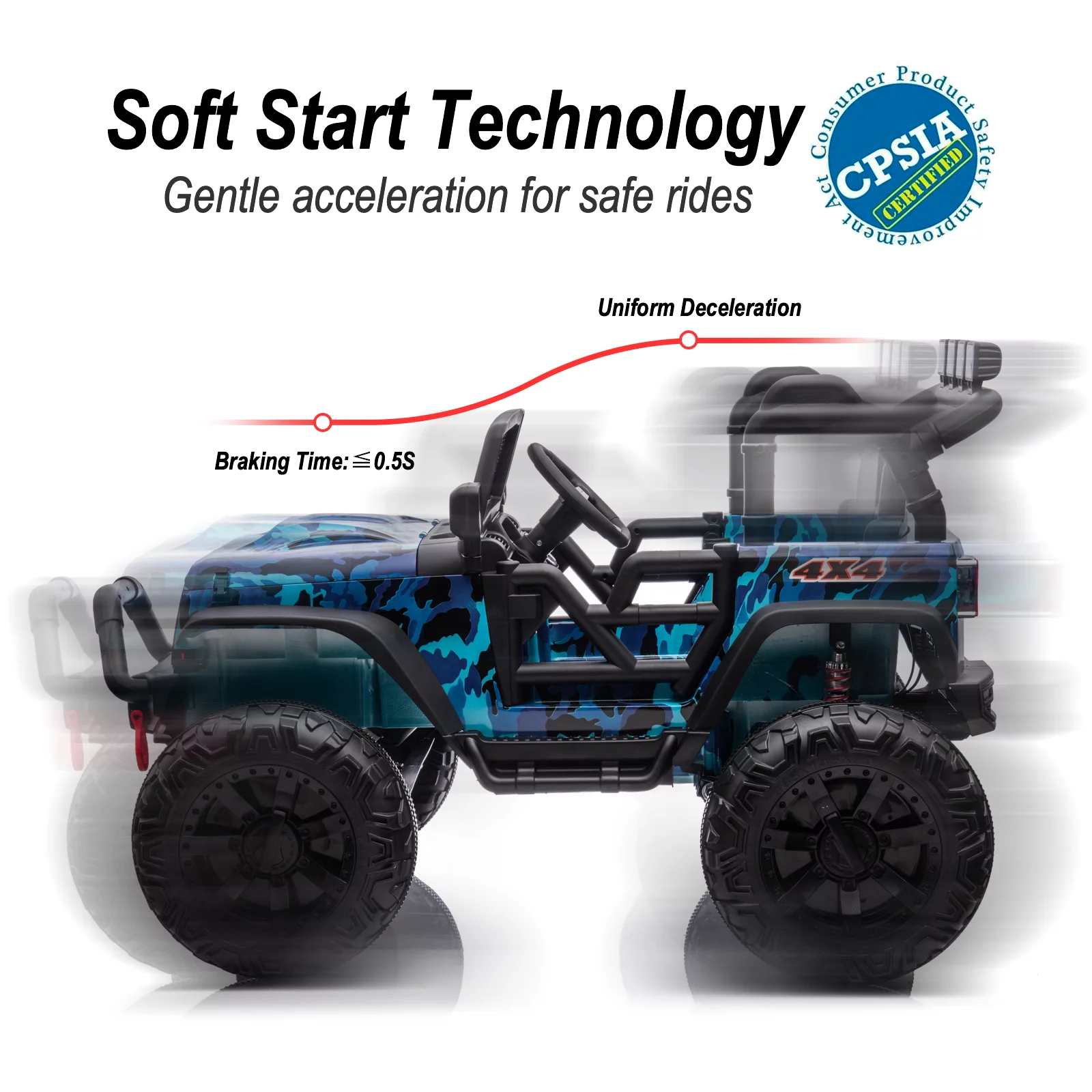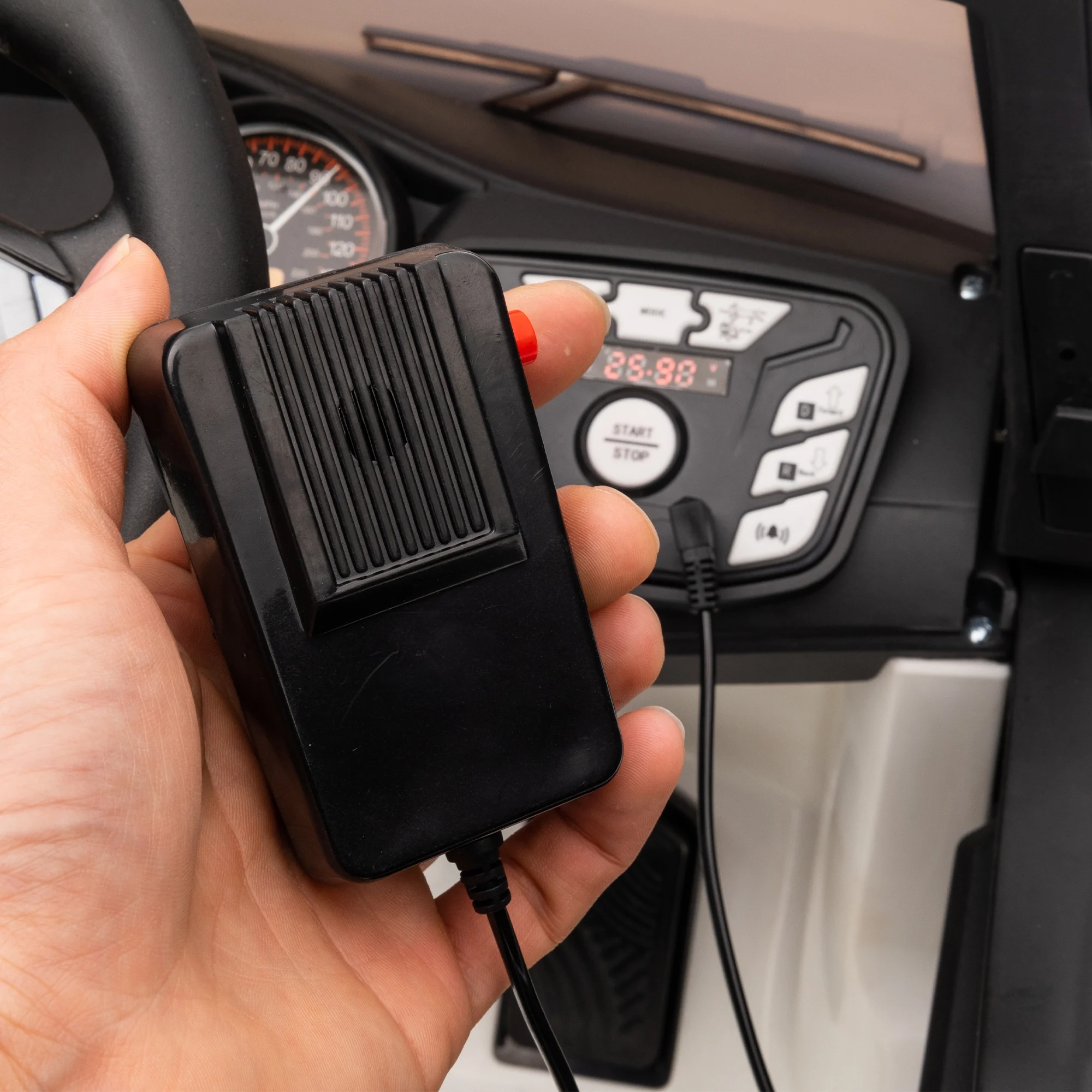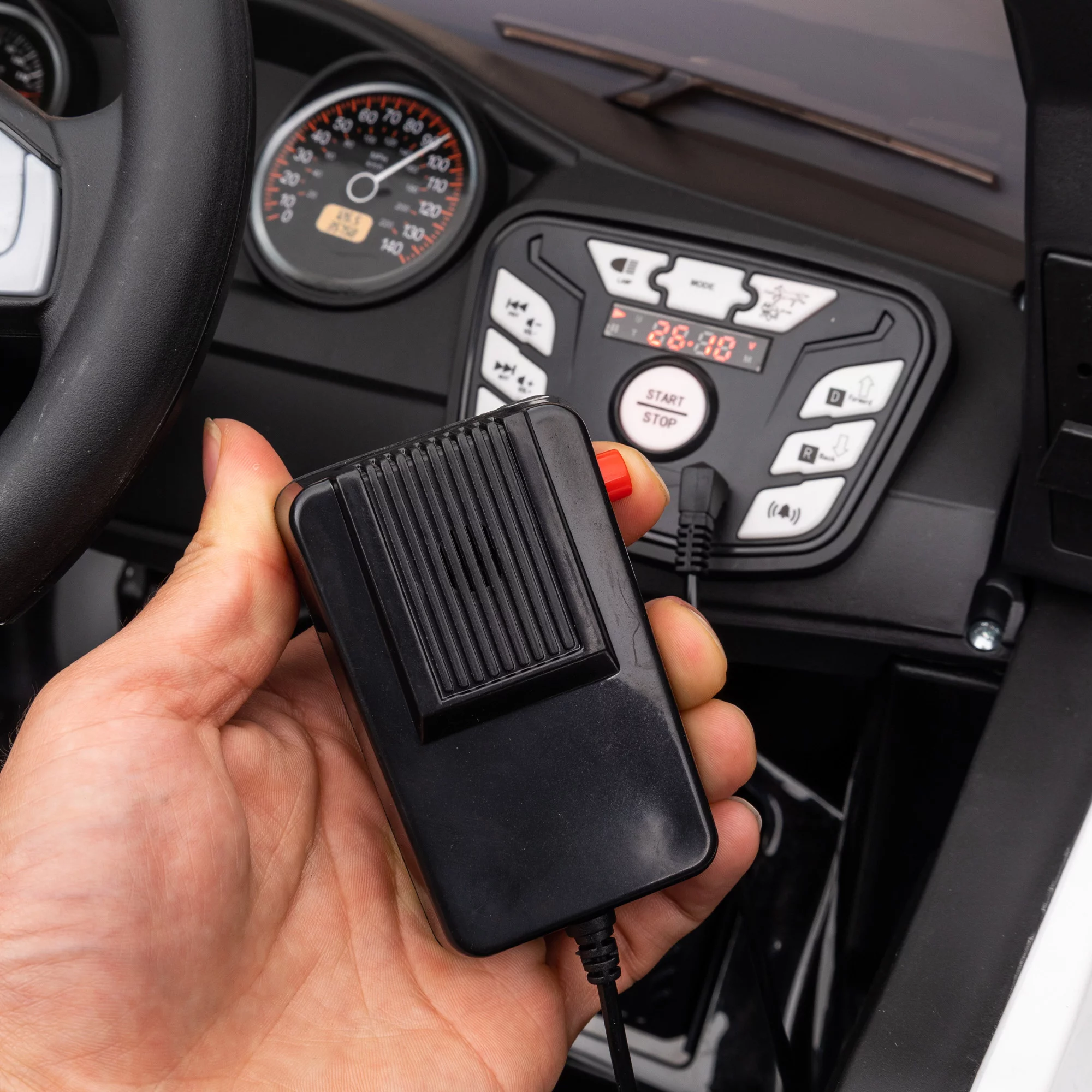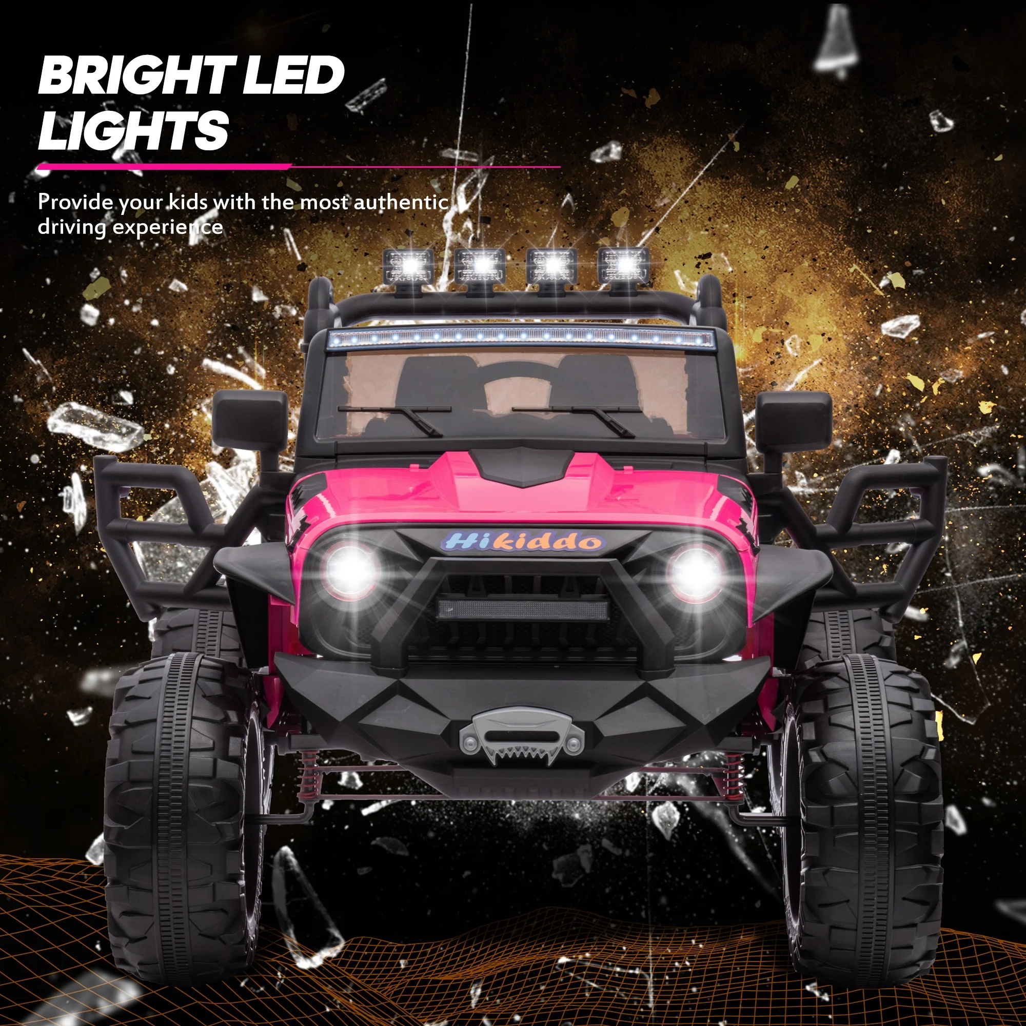 Hikiddo 24V Kids Electric Police Car, 4WD 2 Seater Powered Ride on Toy Truck with Remote, Megaphone