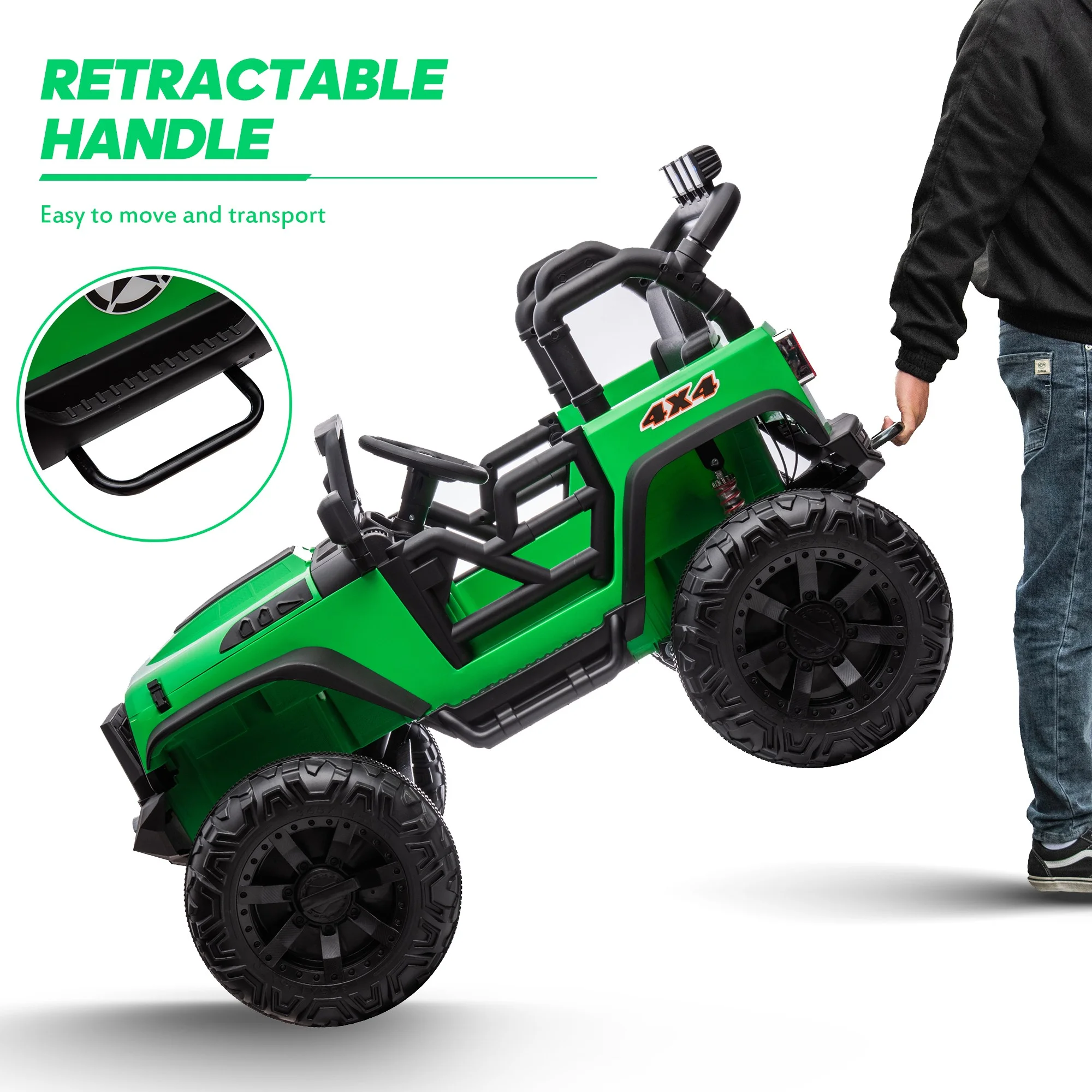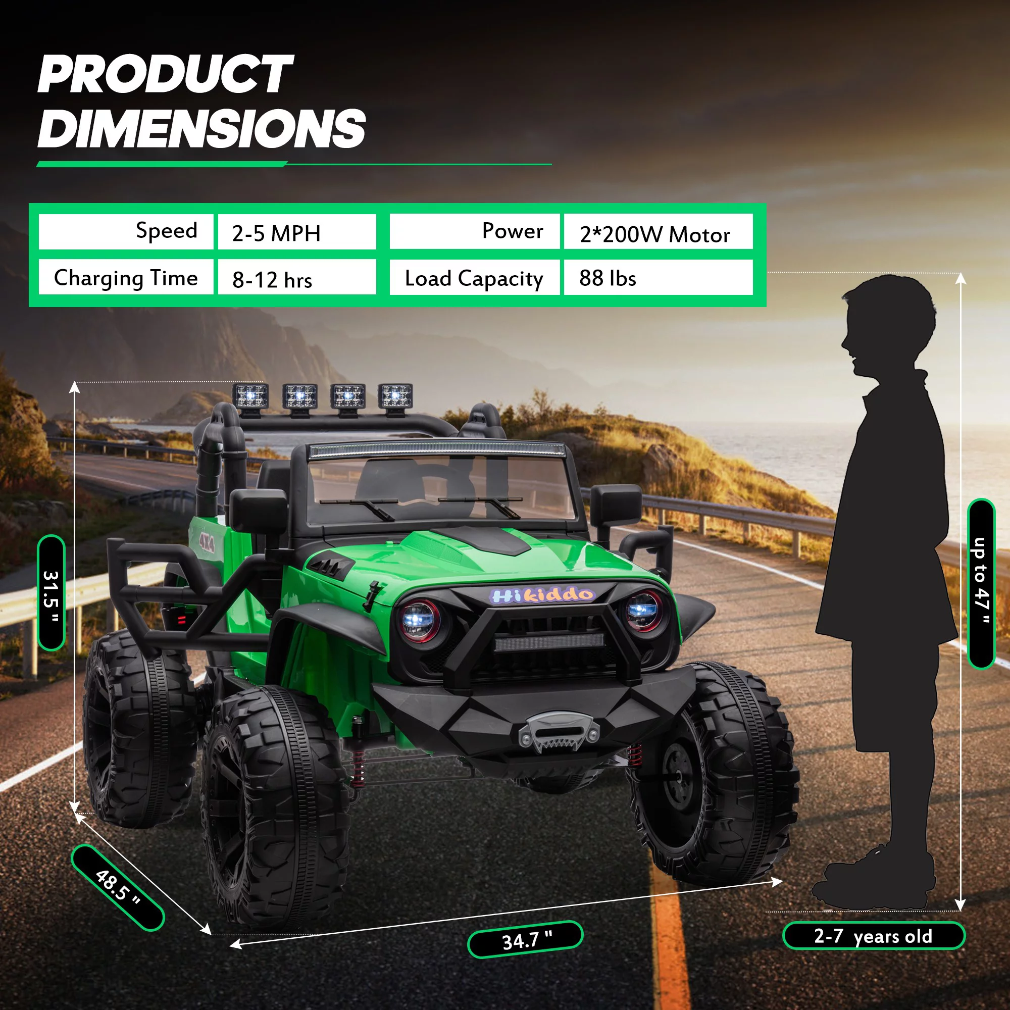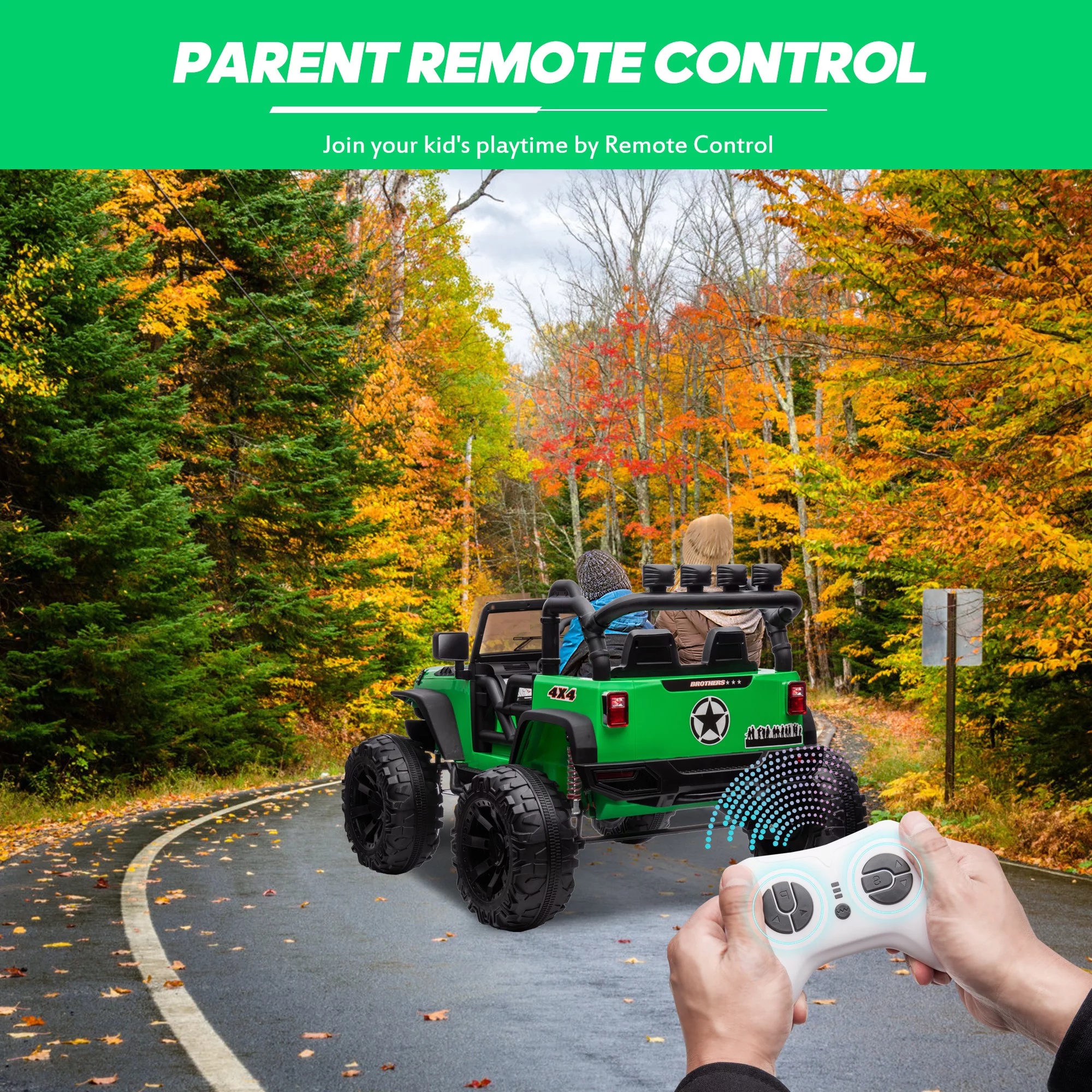 Hikiddo JC555 24V Ride on Toy for Big Kids, 2 Seater Powered Ride-on Truck Car with Remote - Green