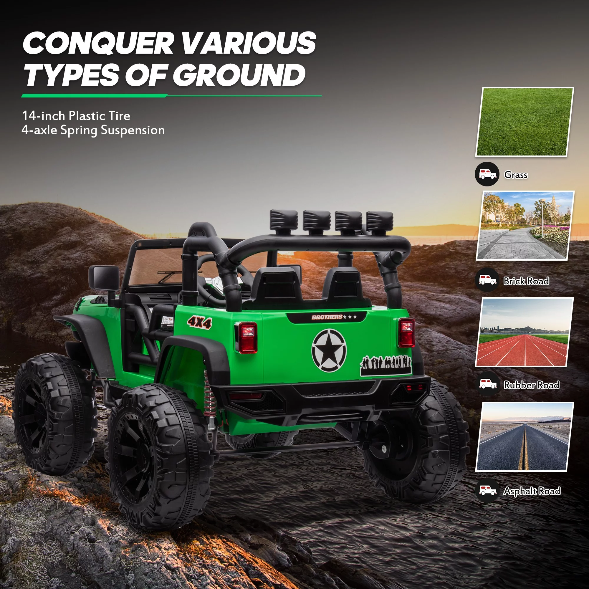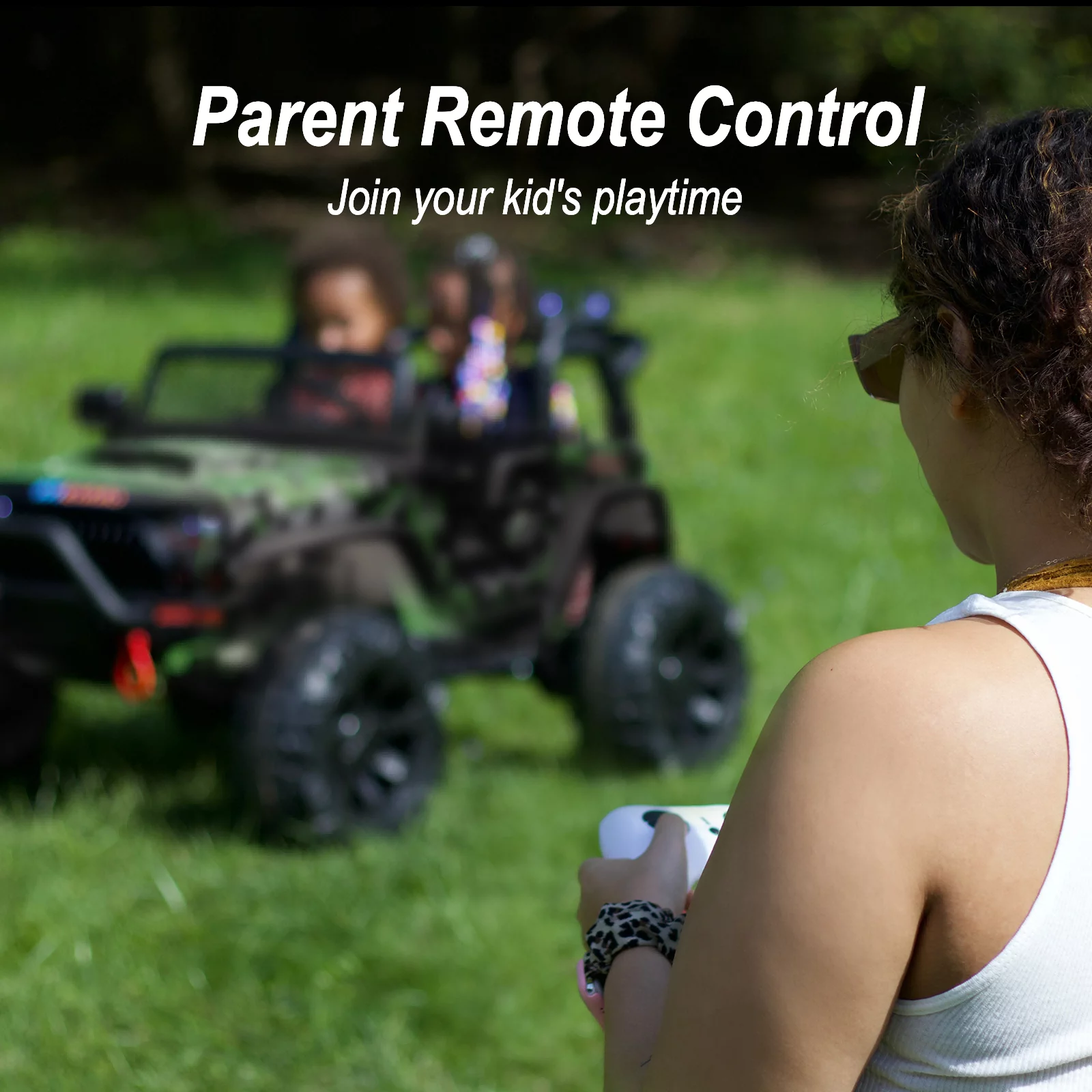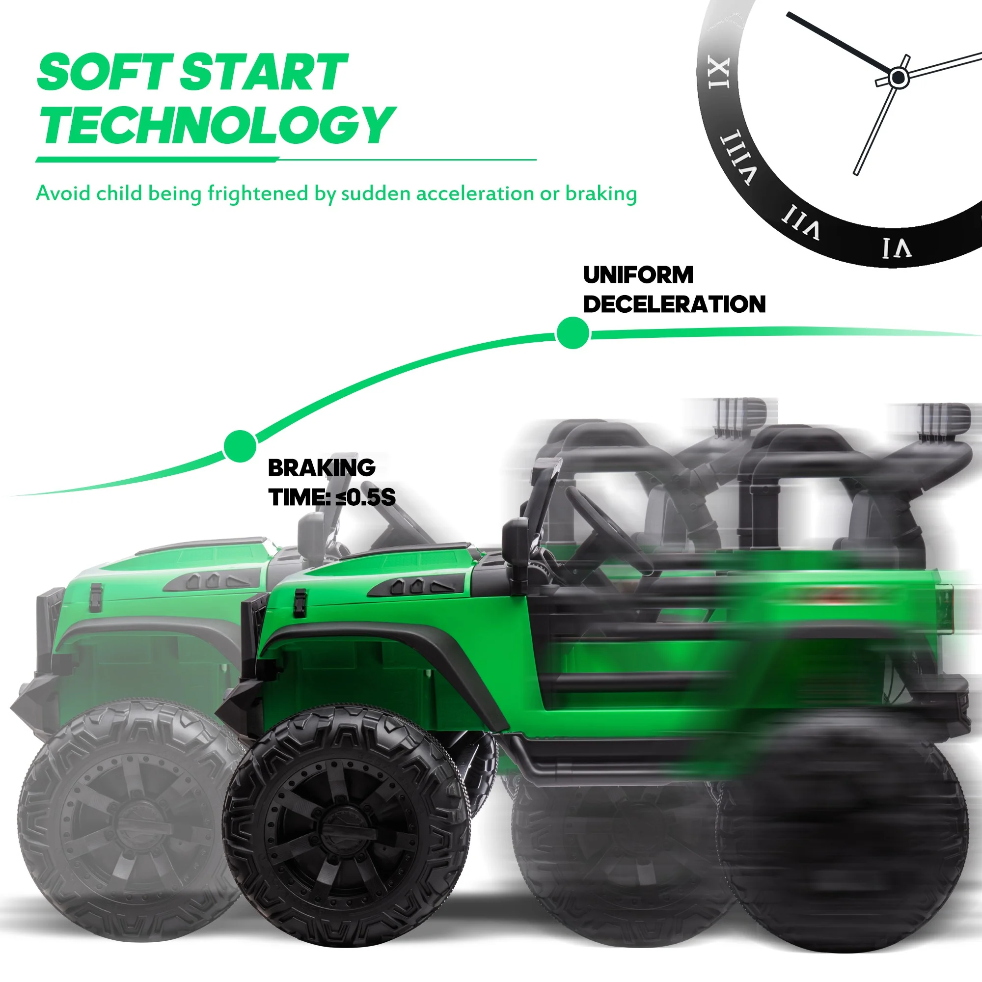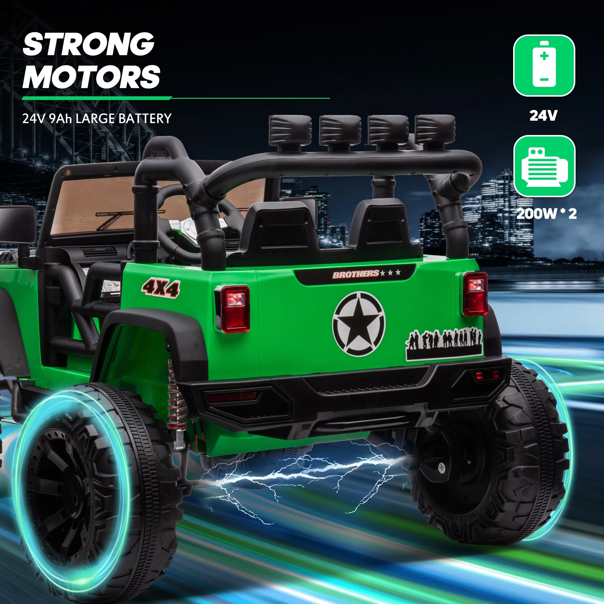 Hikiddo JC555 24V Ride on Toy for Big Kids, 2 Seater Powered Ride-on Truck Car with Remote - Green