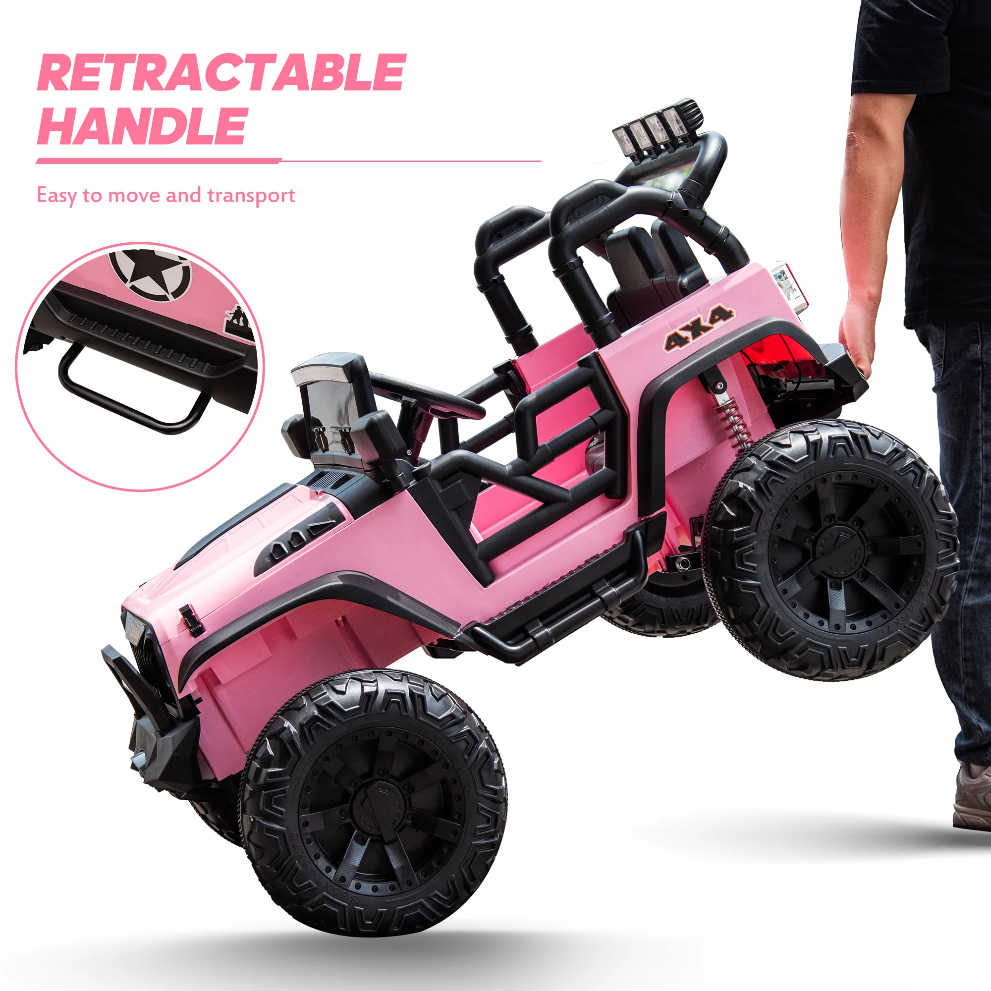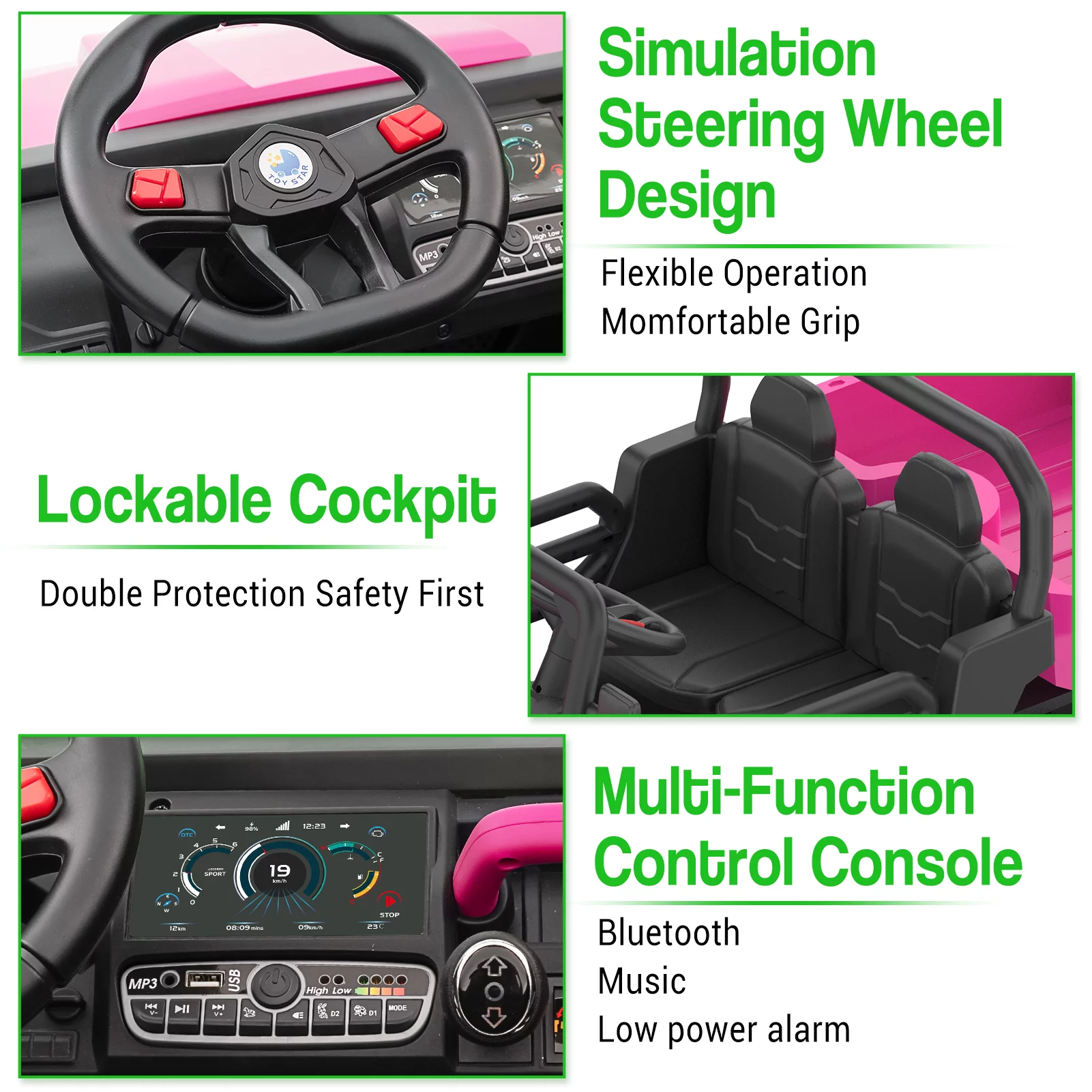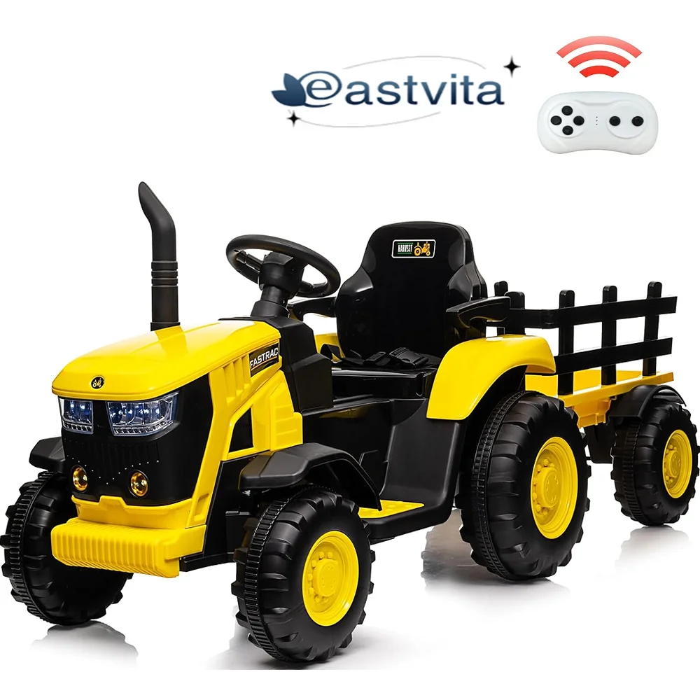 EastVita 3 in 1 Ride on Tractor, 24V Ride on Car Toy Electric Truck Vehicle ,Six-wheeled UTV Car, w/Trailer,Remote Control, LED Lights, Music, USB ,Pink