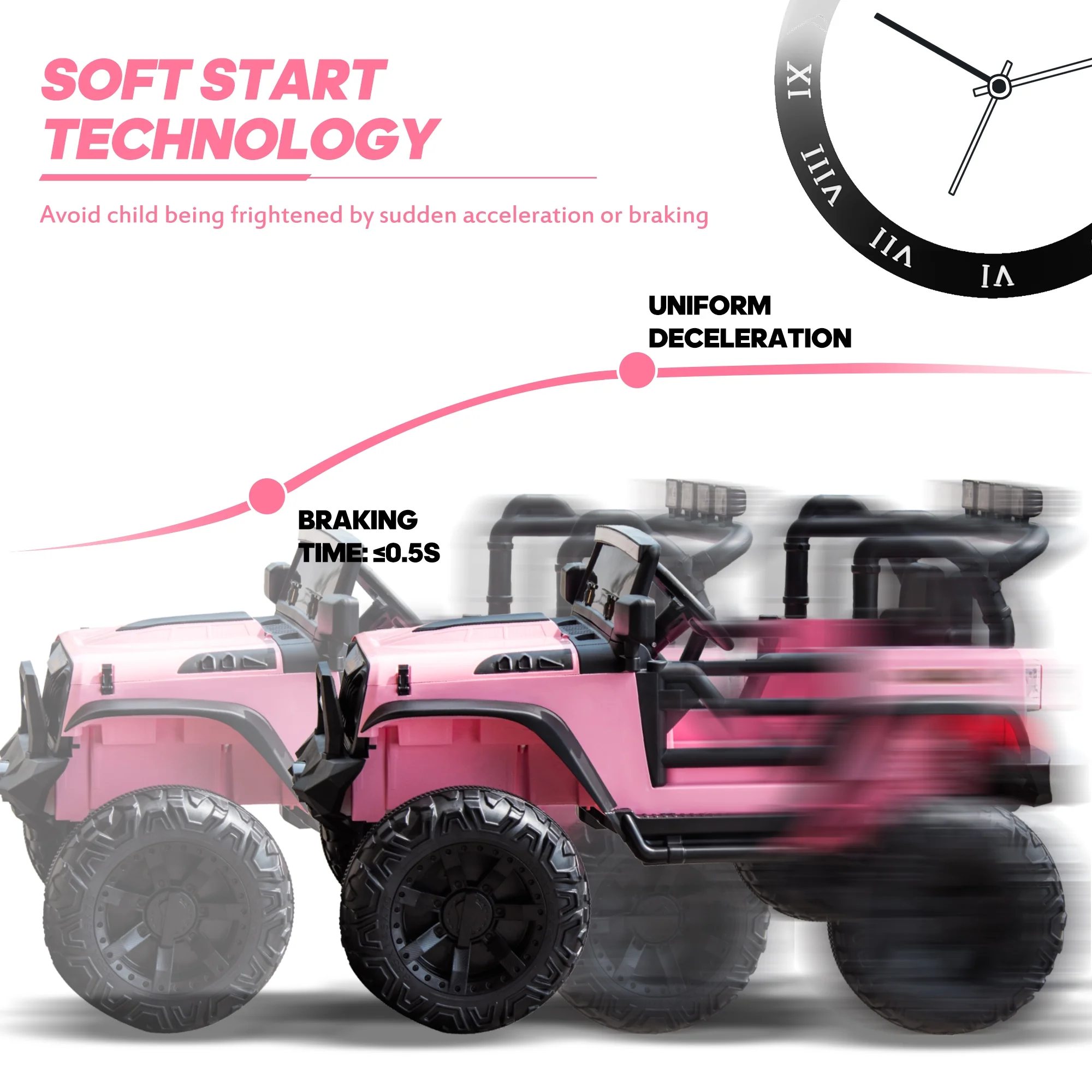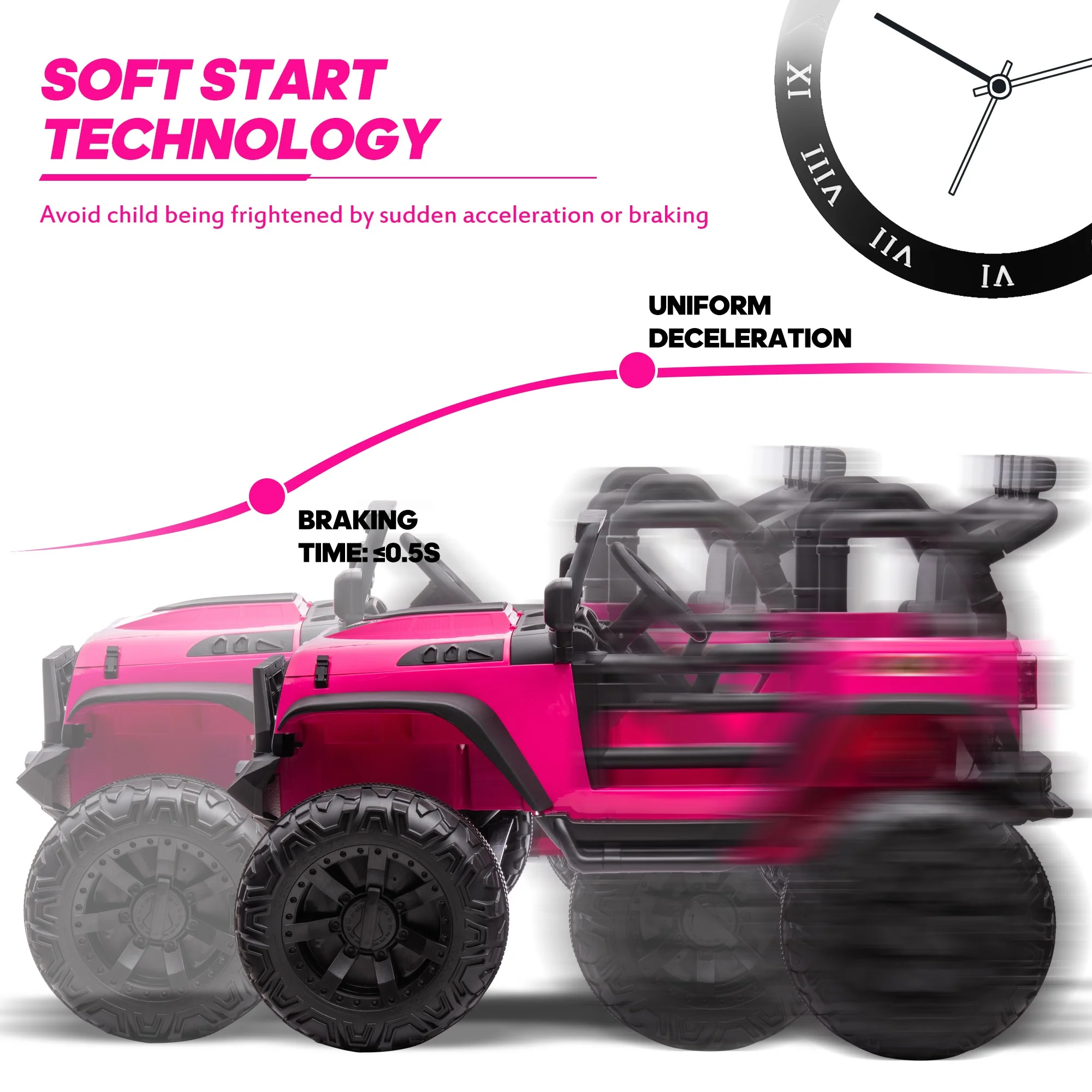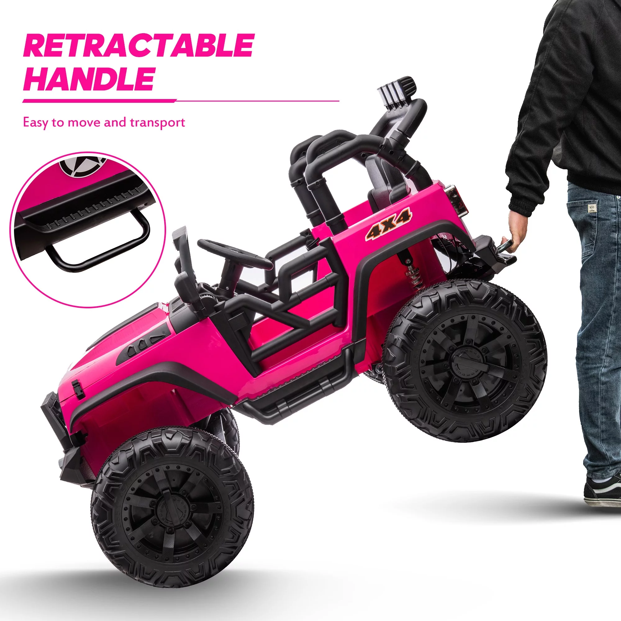 EastVita 3 in 1 Ride on Tractor, 24V Ride on Car Toy Electric Truck Vehicle ,Six-wheeled UTV Car, w/Trailer,Remote Control, LED Lights, Music, USB ,Pink