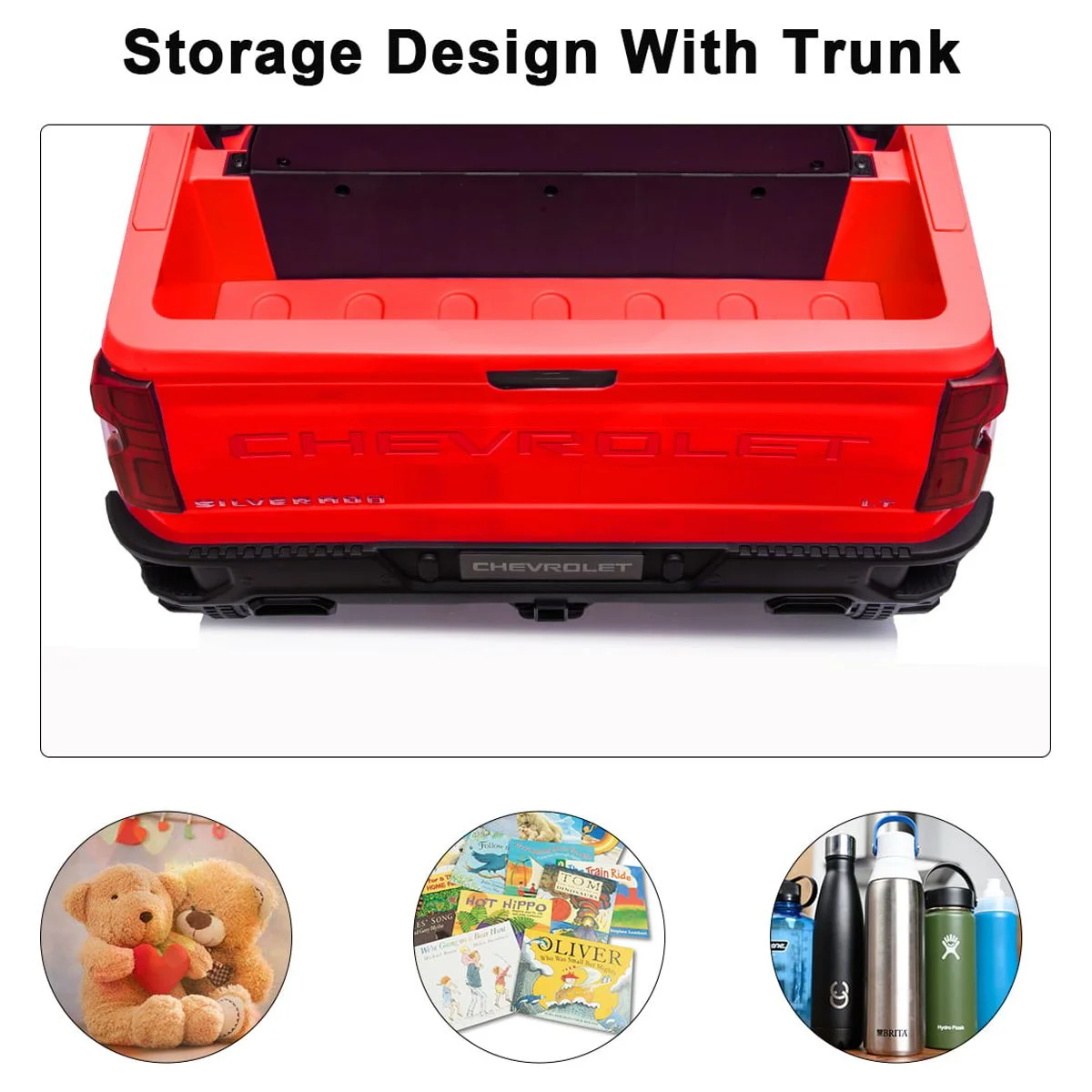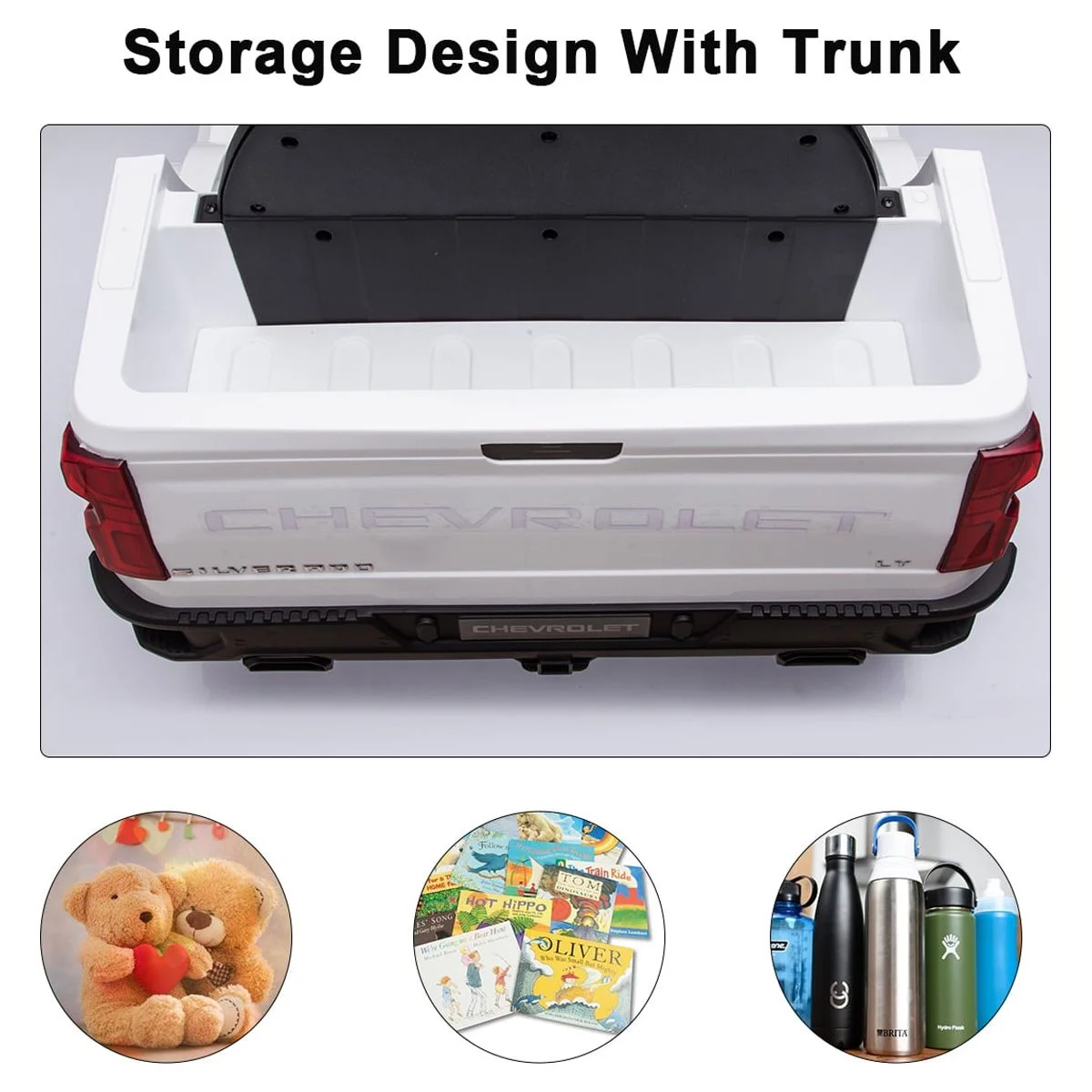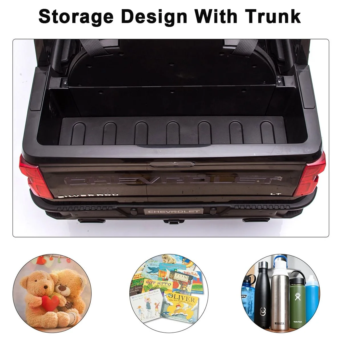 FUNTOK Licensed Chevrolet Silverado 12V Kids Electric Powered Ride on Toy Car with Remote Control & Music Player, Black