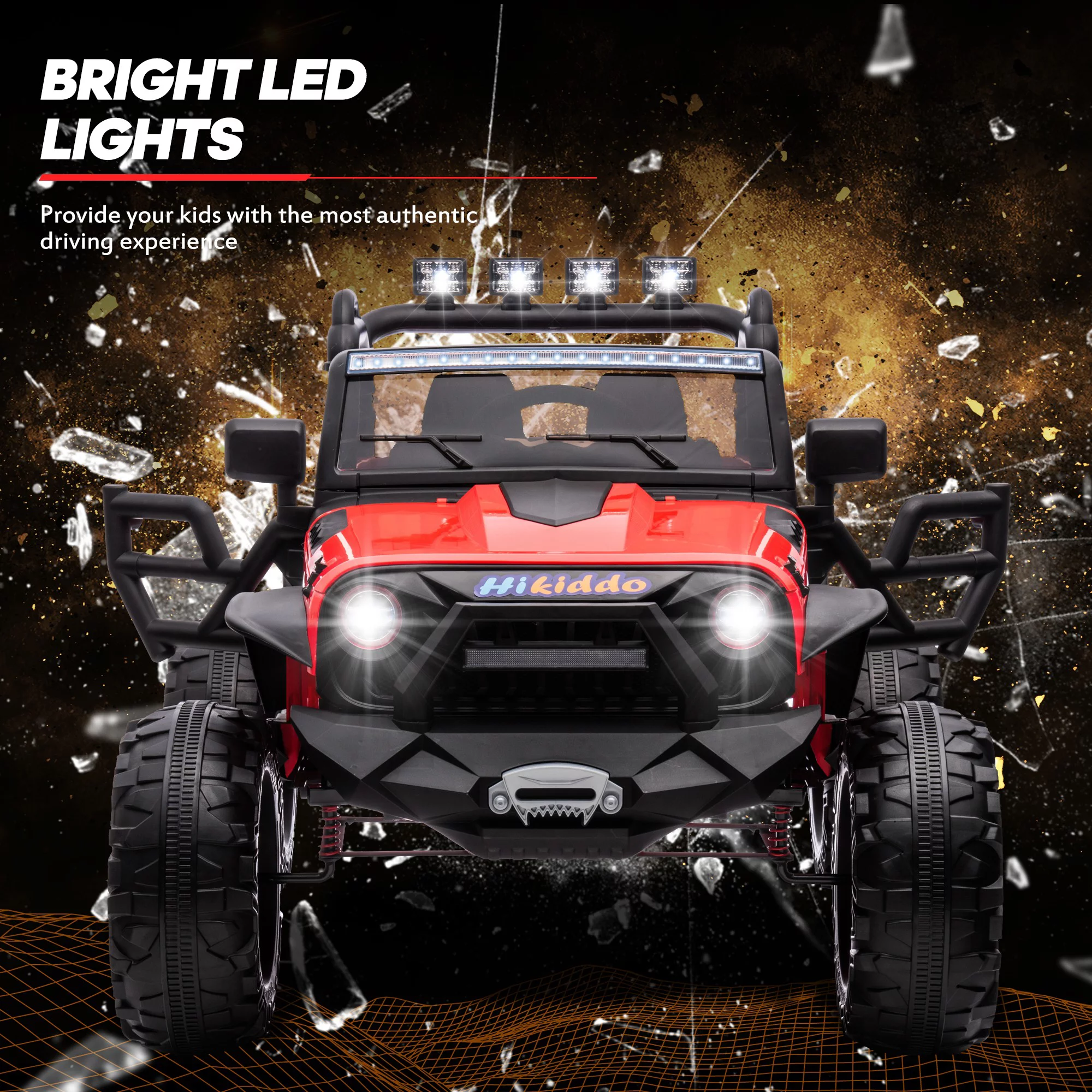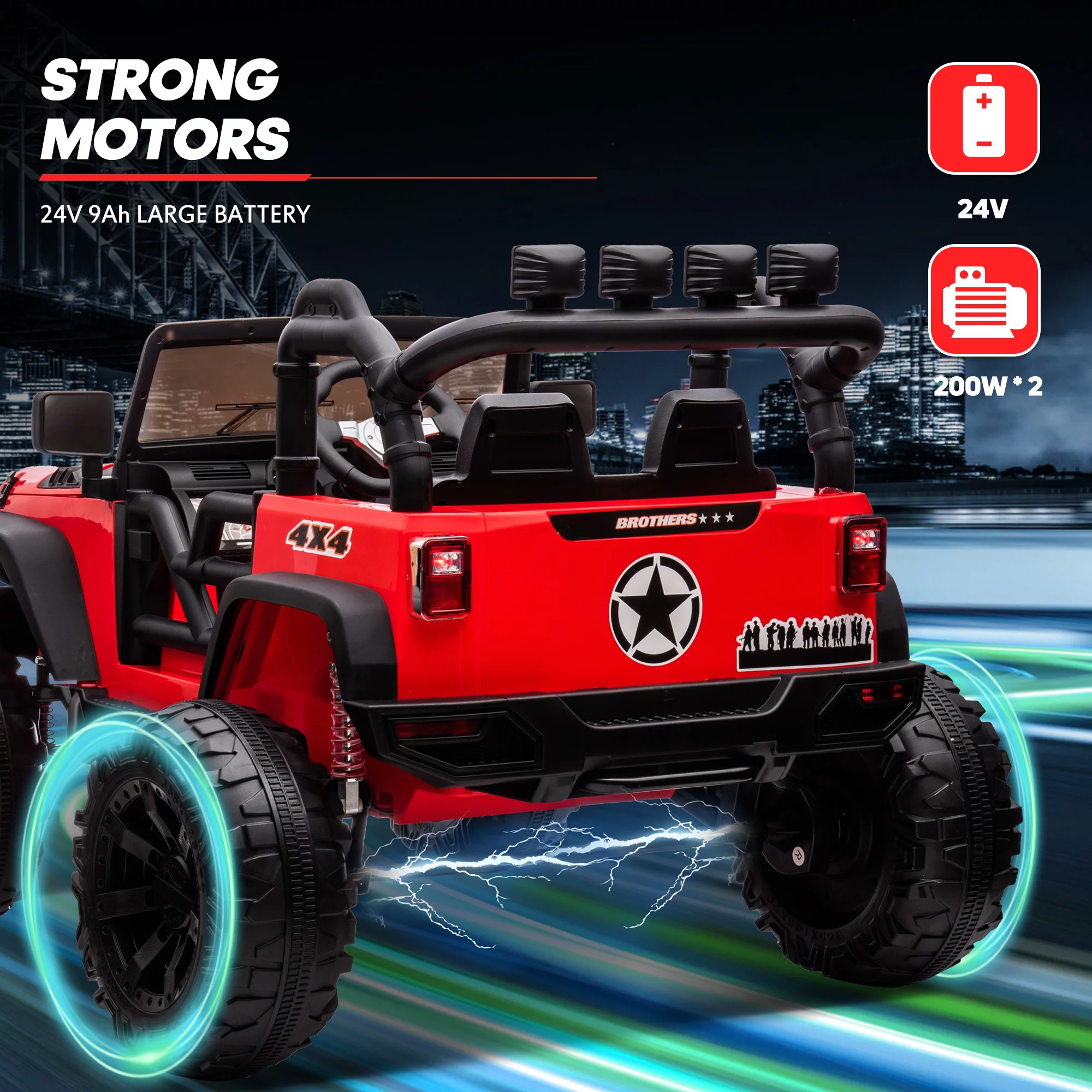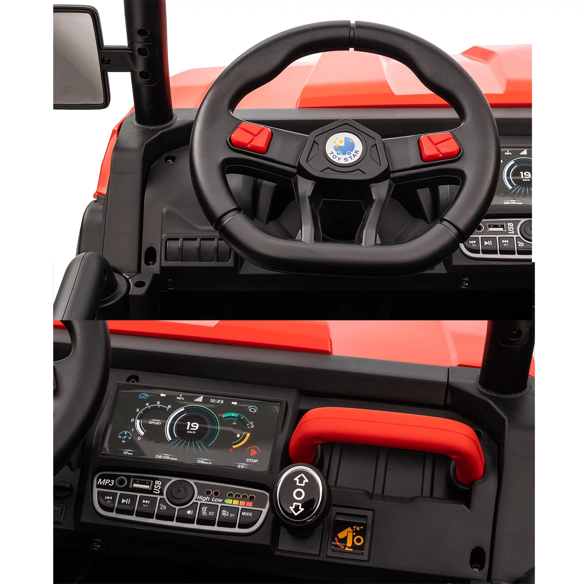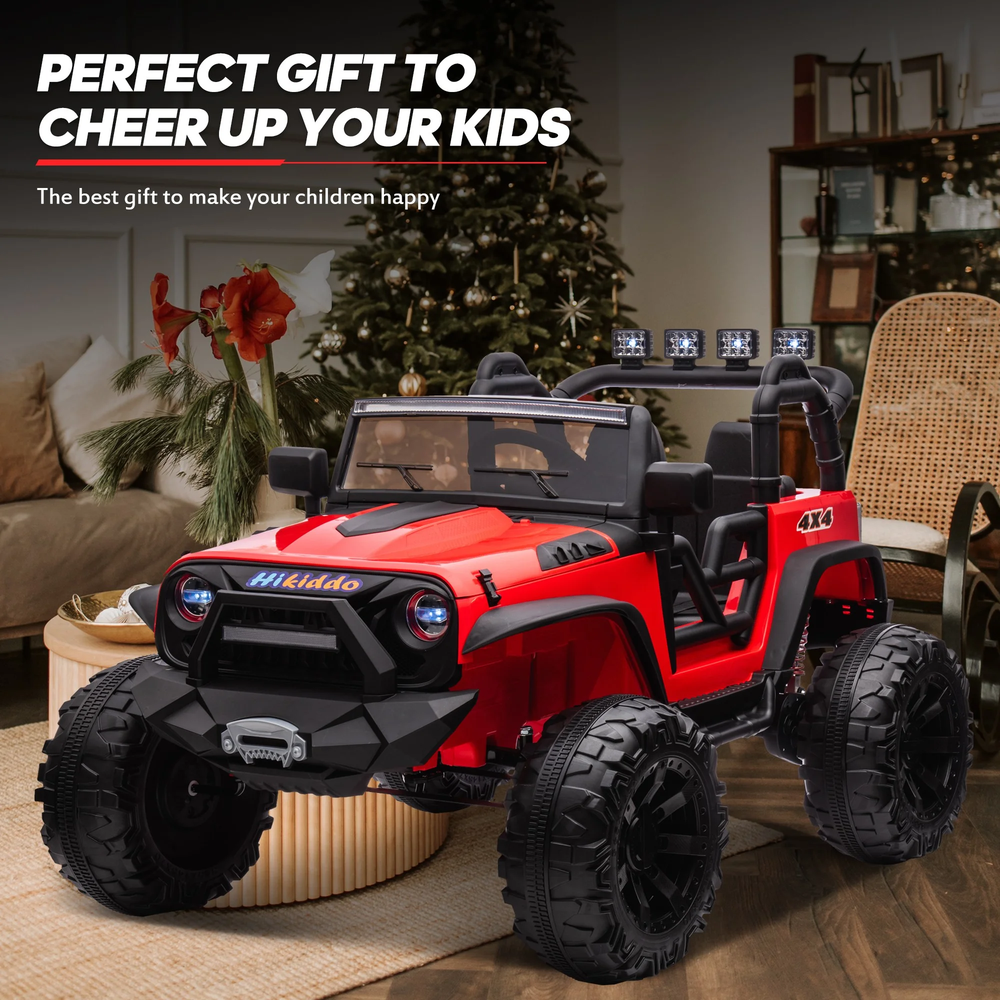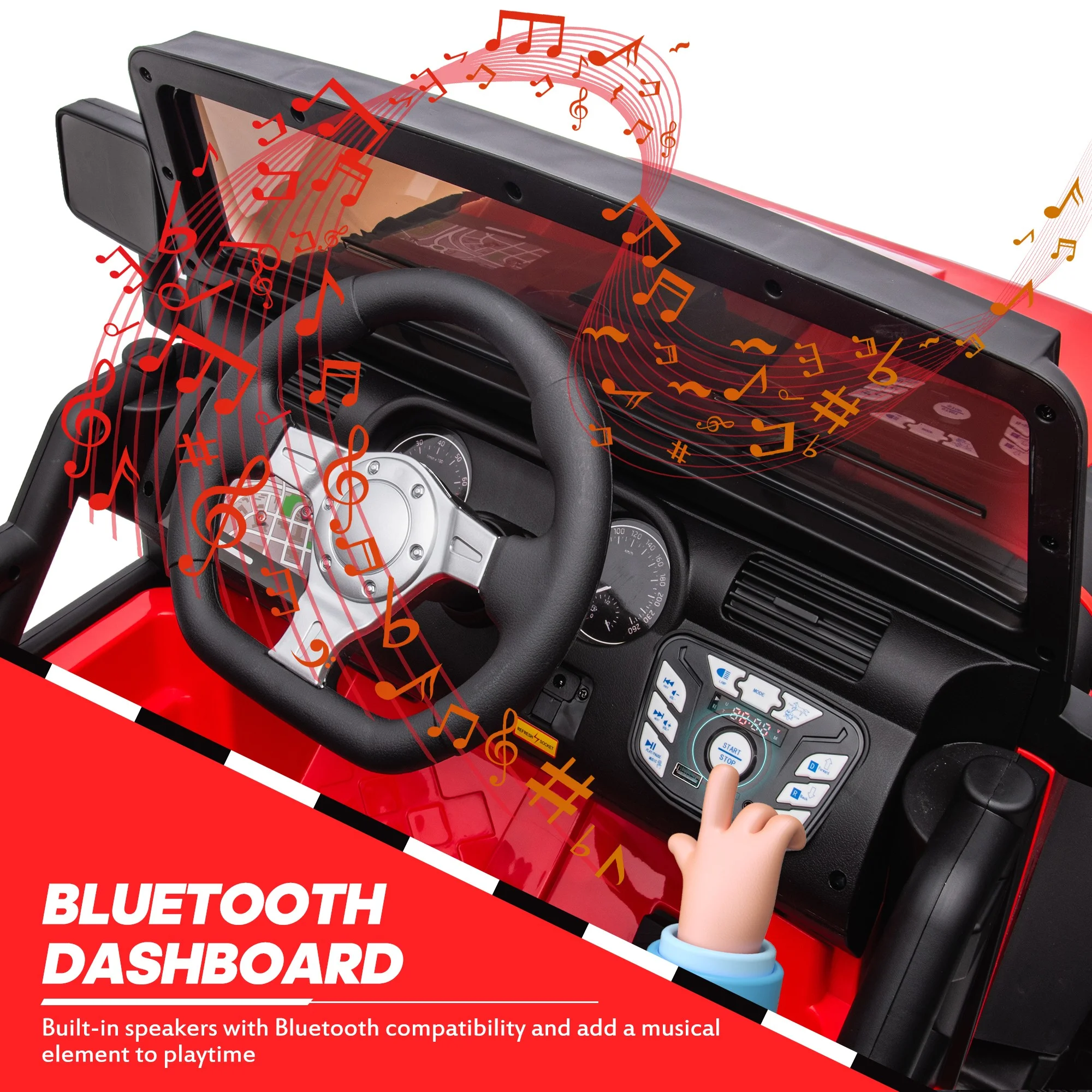 CIPACHO 24 V Double Drive Children Ride On Truck Car for Kids with Parent Remote Control, Electron Assisted Steering Wheel, Music Board, Bluetooth, MP3, Red