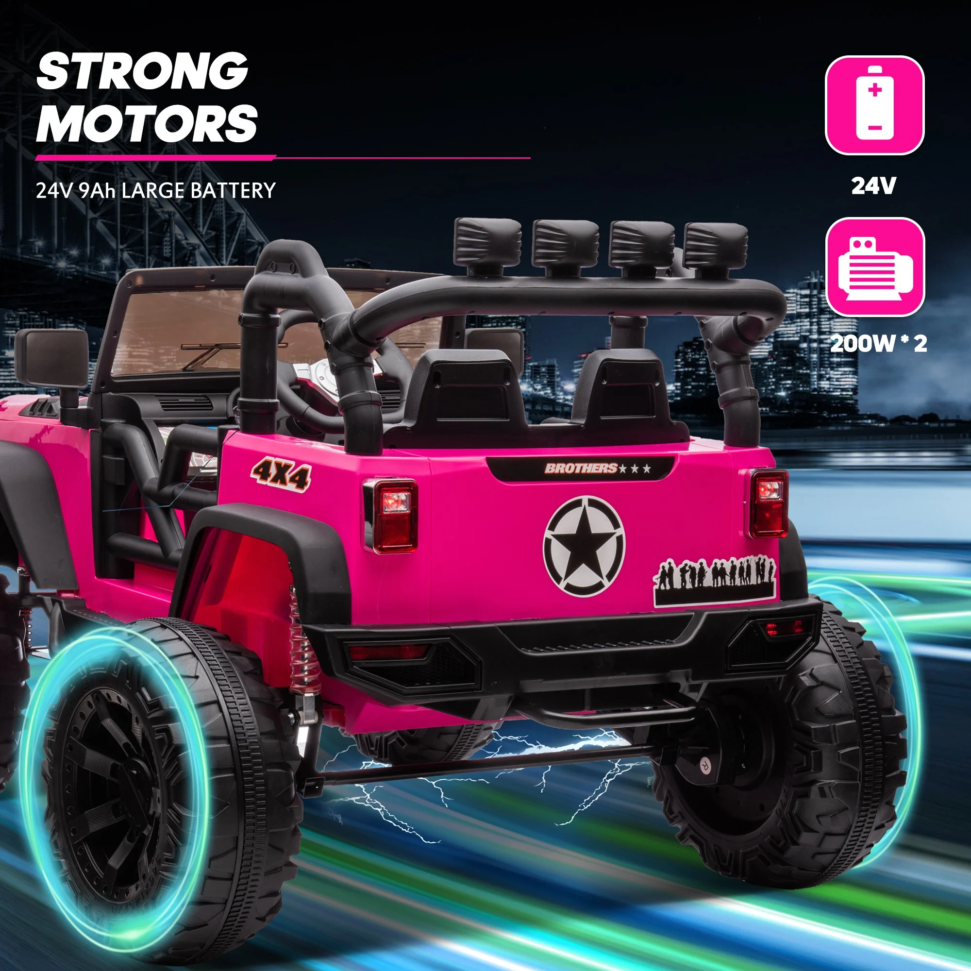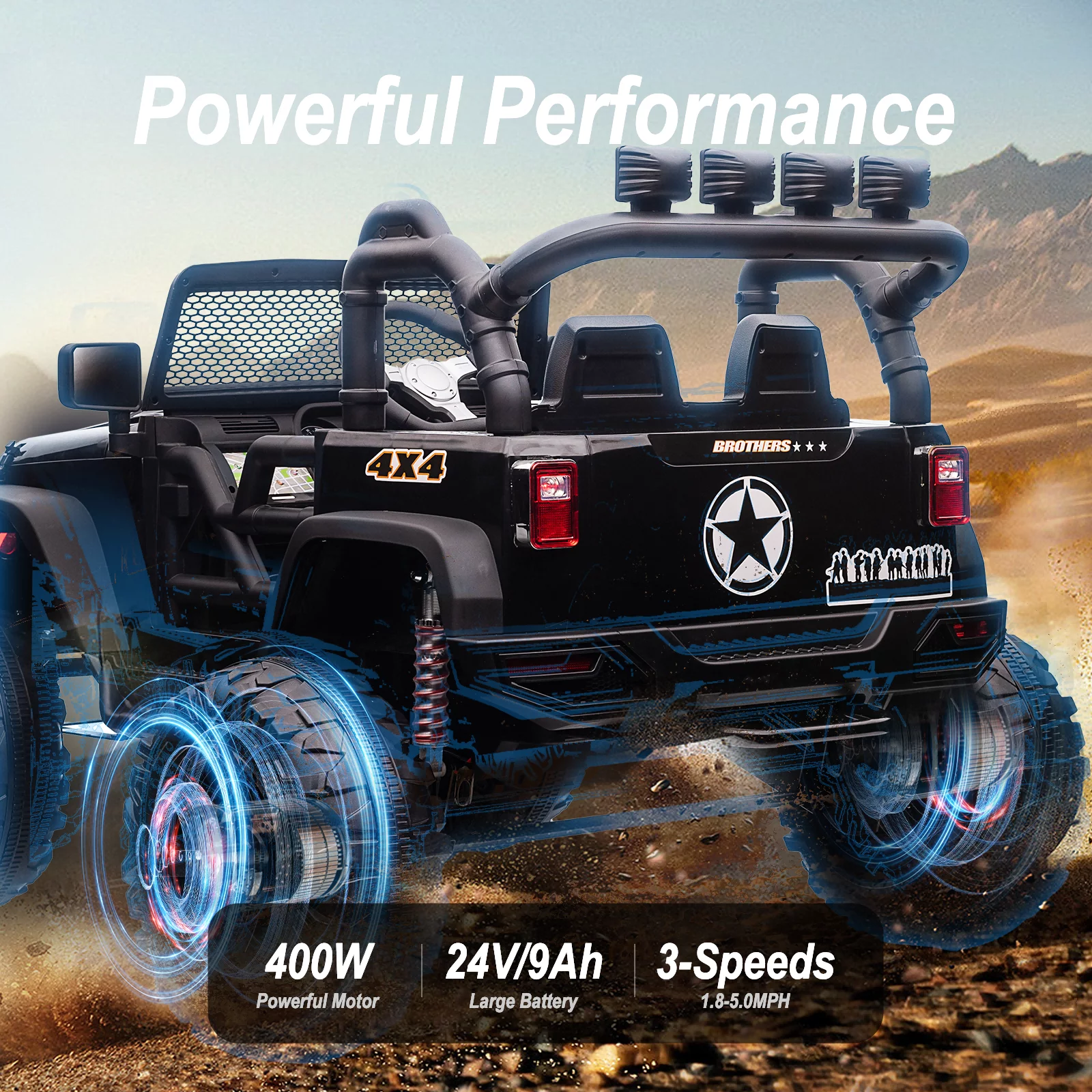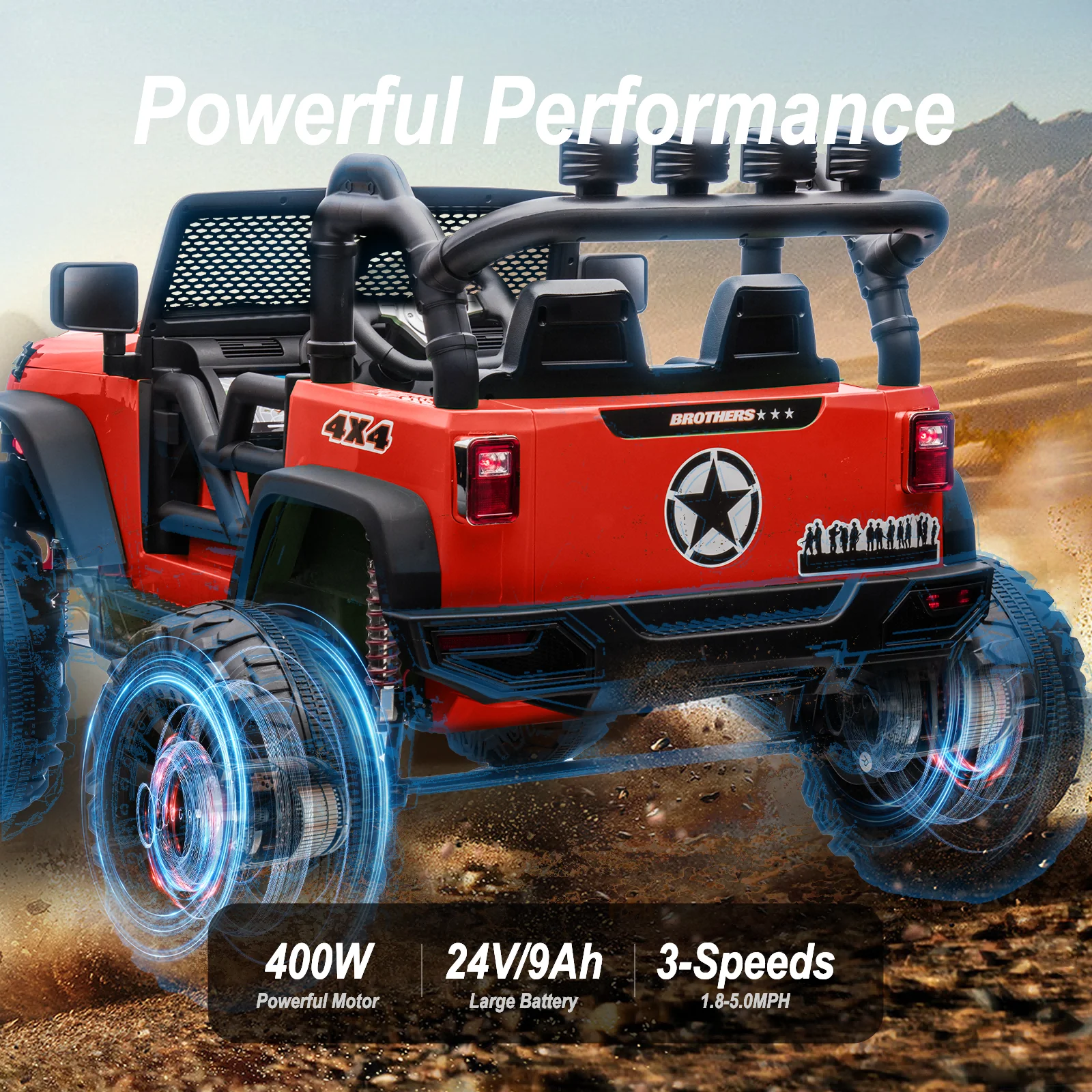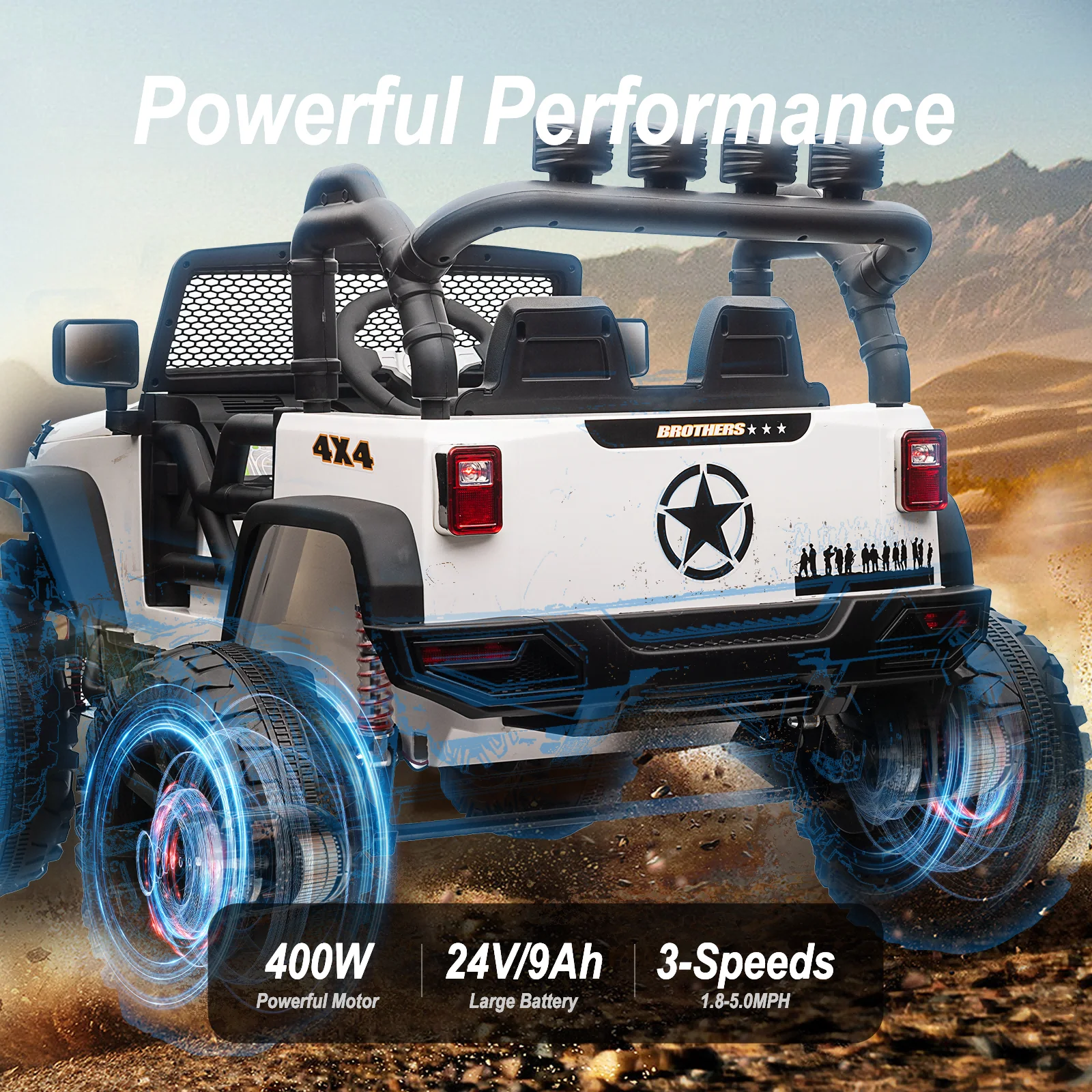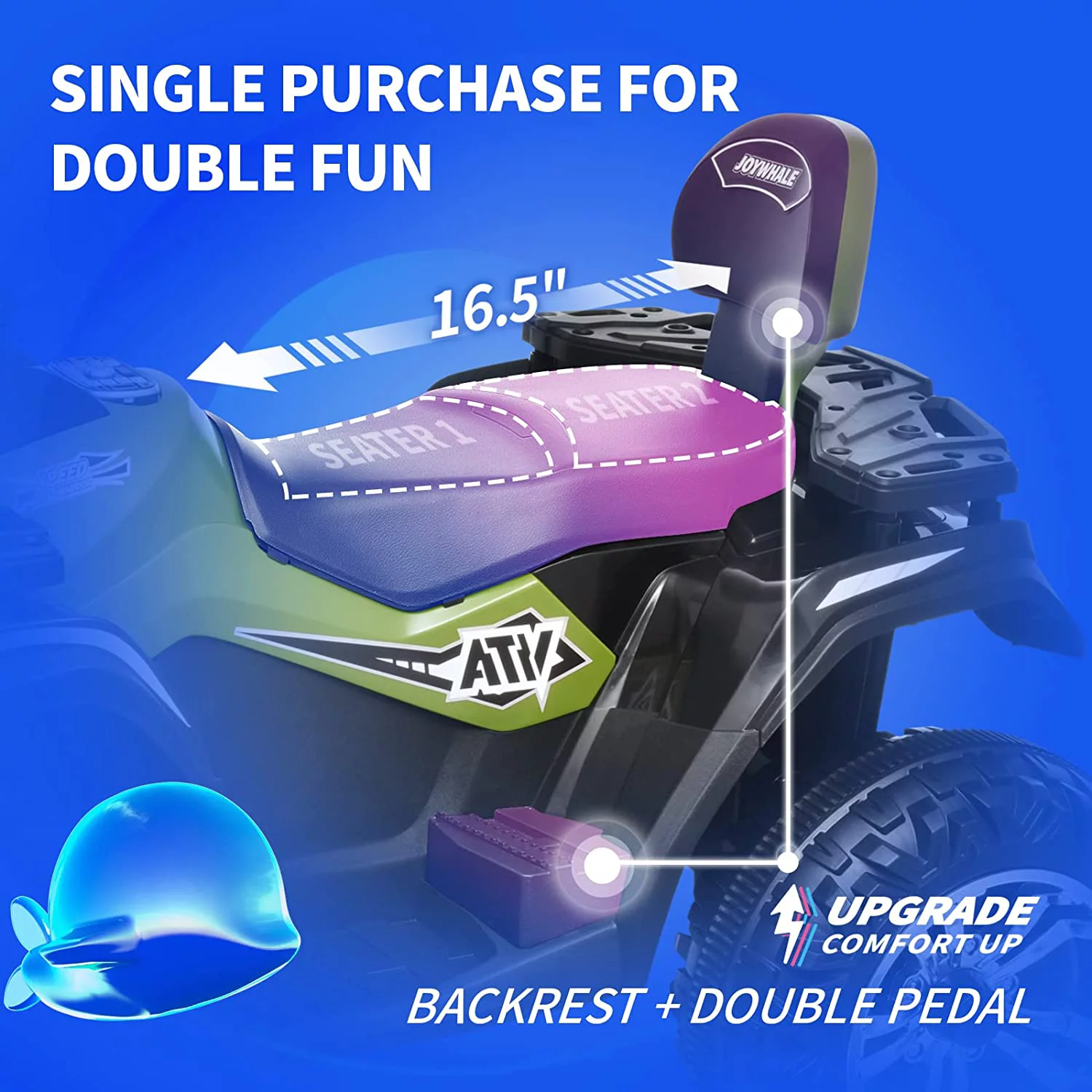 Joywhale 24V Kids Ride on ATV 4WD 2 Seater Quad Easy-Drag 4-Wheeler, with Big Battery, 4x75W Powerful Engine, Metal Suspension, BW-A20s